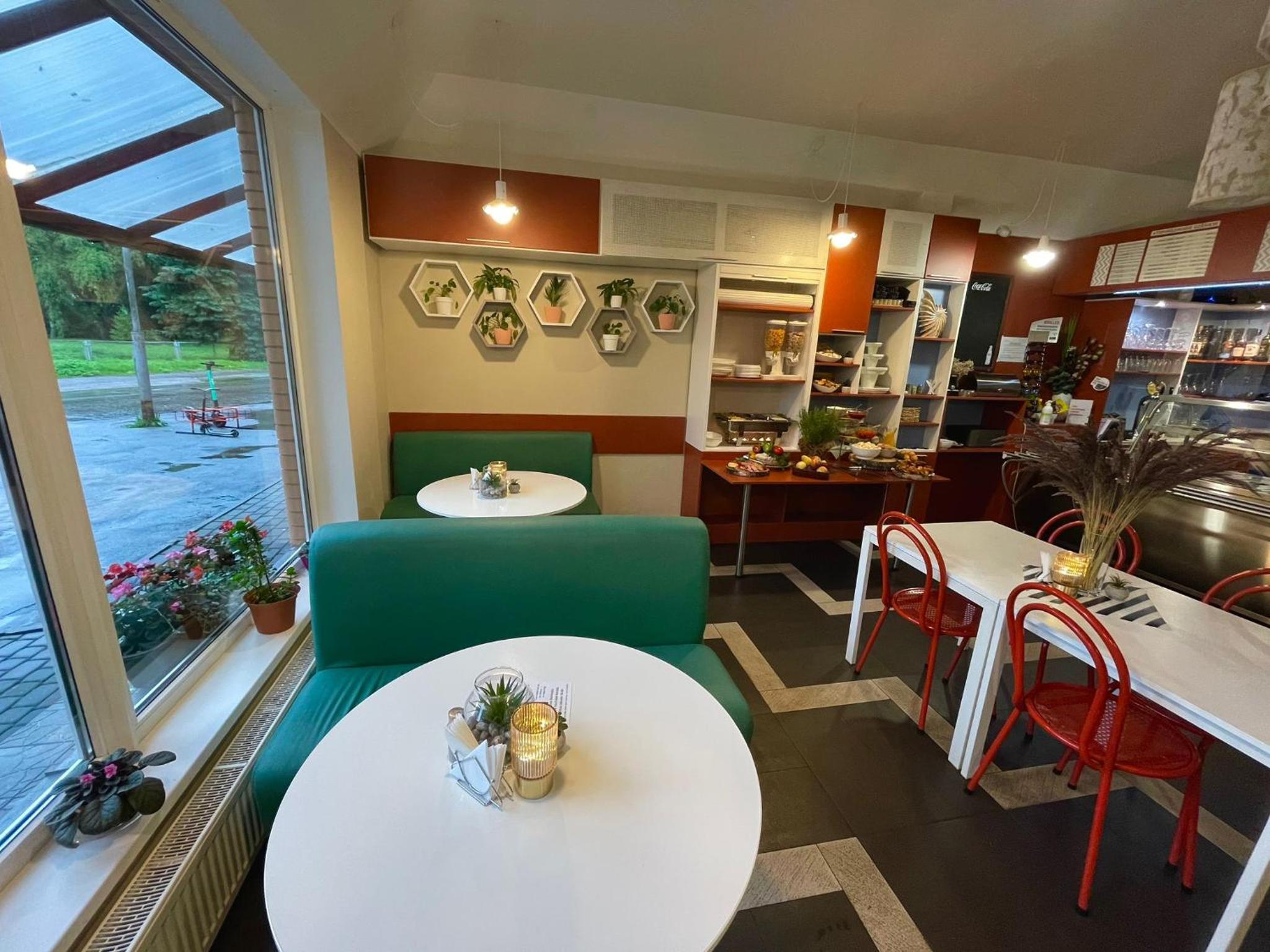 Pusryčiai sotūs,skanūs. Teko ir vakarieniauti nu labai skanu,kainos tikrai nėra didelės,aptarnavimas puikus. Viežbutis tikrai geroj vietoj, jūra arti. Parduotuvėlė yra,kavinė yra. Iki centro su mašina tai visai netoli o jei geras oras galima ir nueiti pasivaikčiojant ir apžiūrint visa aplinka :) rekomenduoju tikrai.
