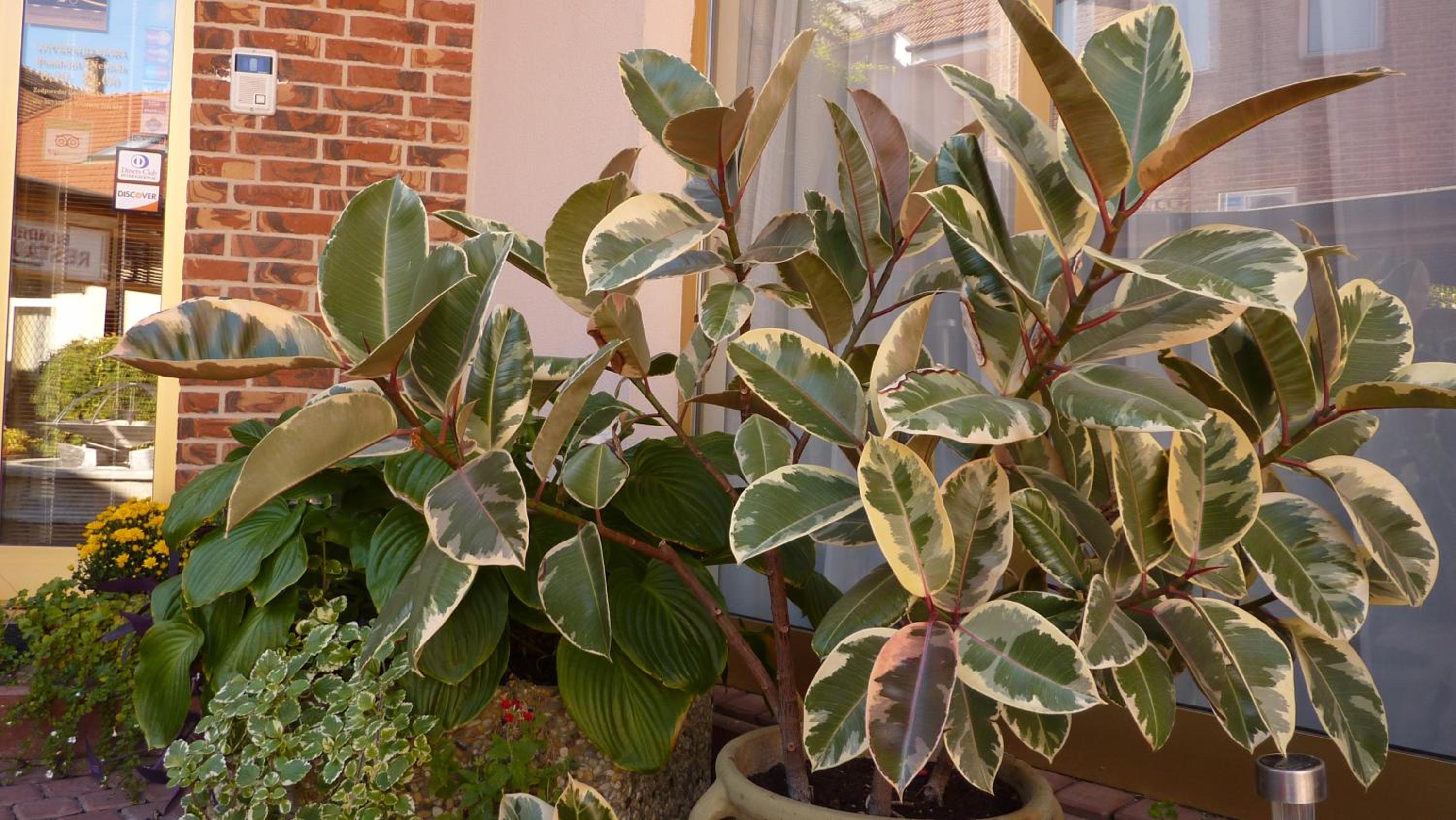 Zeleň pri hoteli a príjemné recepčné.
