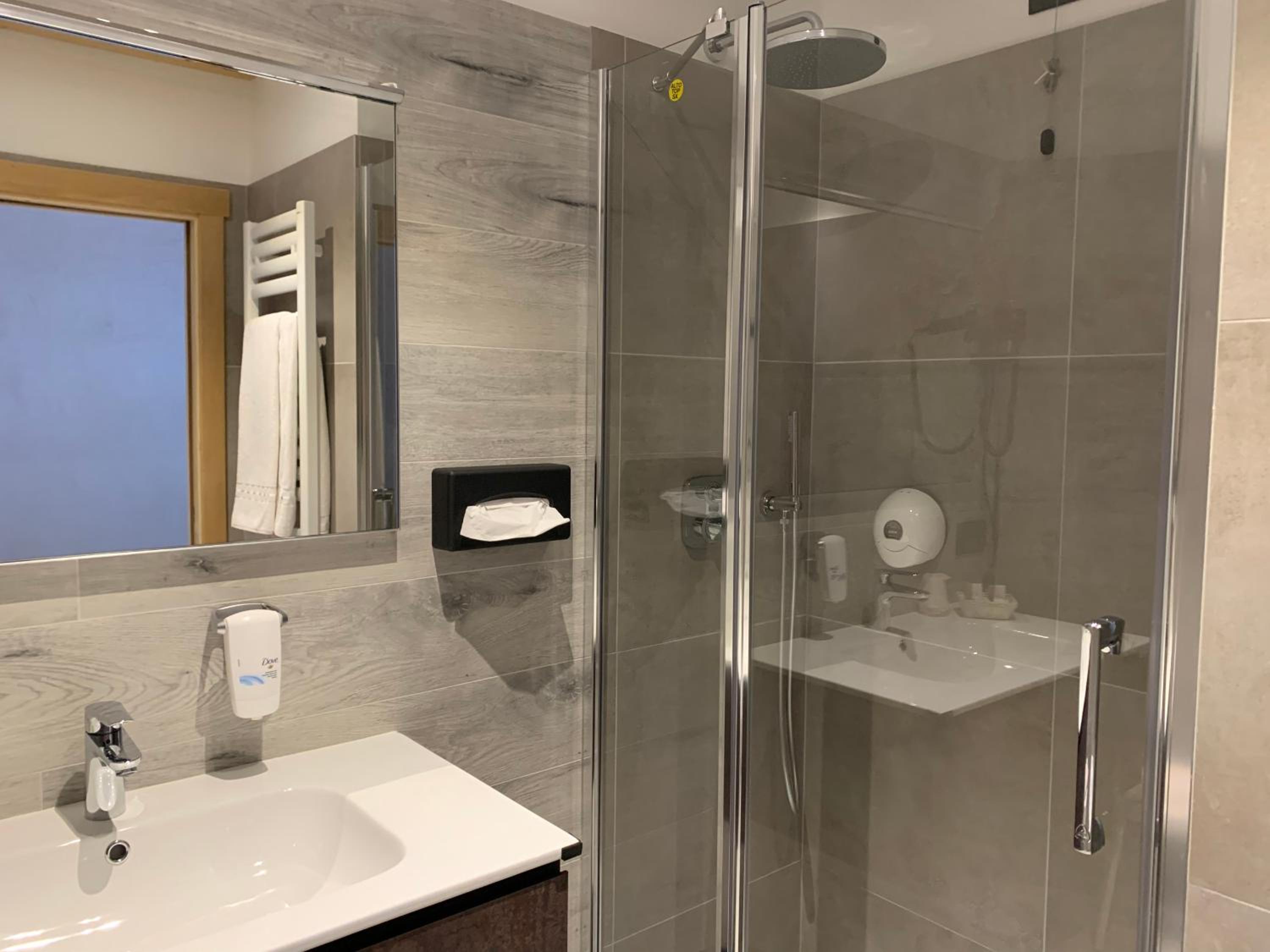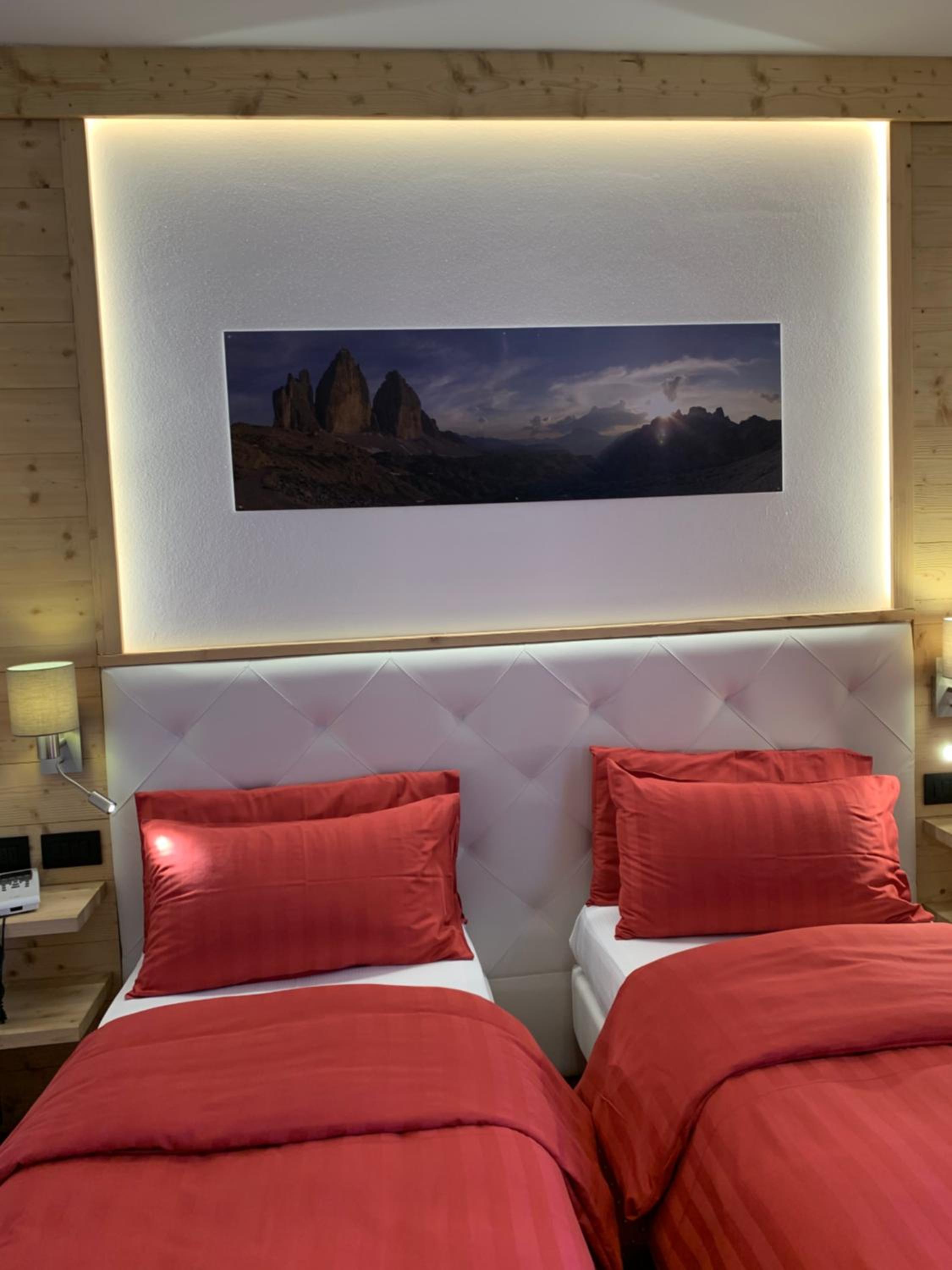 The hotel itself is beautifully located, right in what feels like the heart of the mountains. The views are simply breathtaking, and it’s the perfect base camp for Tre Cime. Our room was clean and nicely decorated. The bed was exceptionally comfortable and it was actually hard to get out of it so early in the morning. The parking area is spacious and easily fits larger cars.