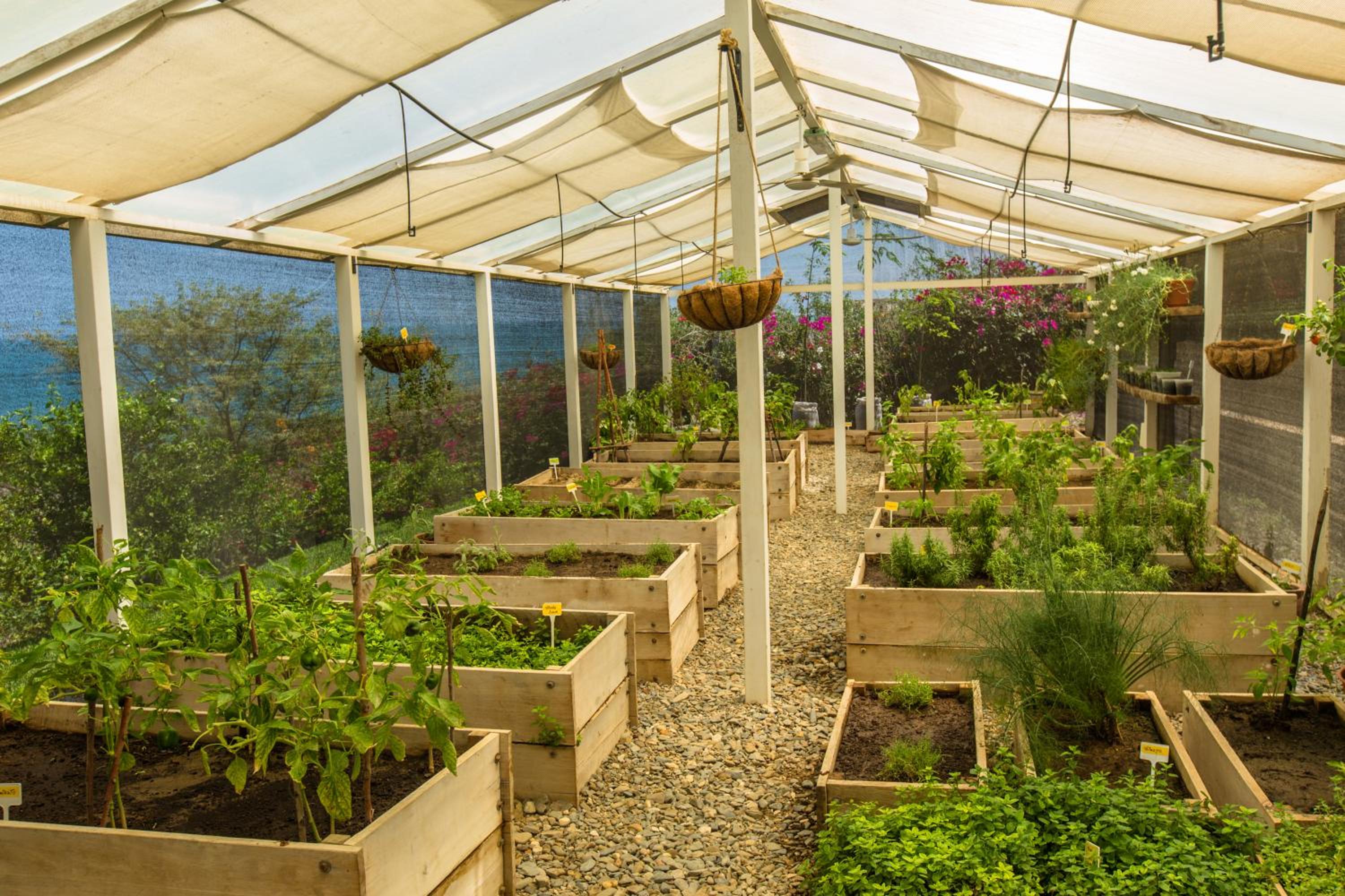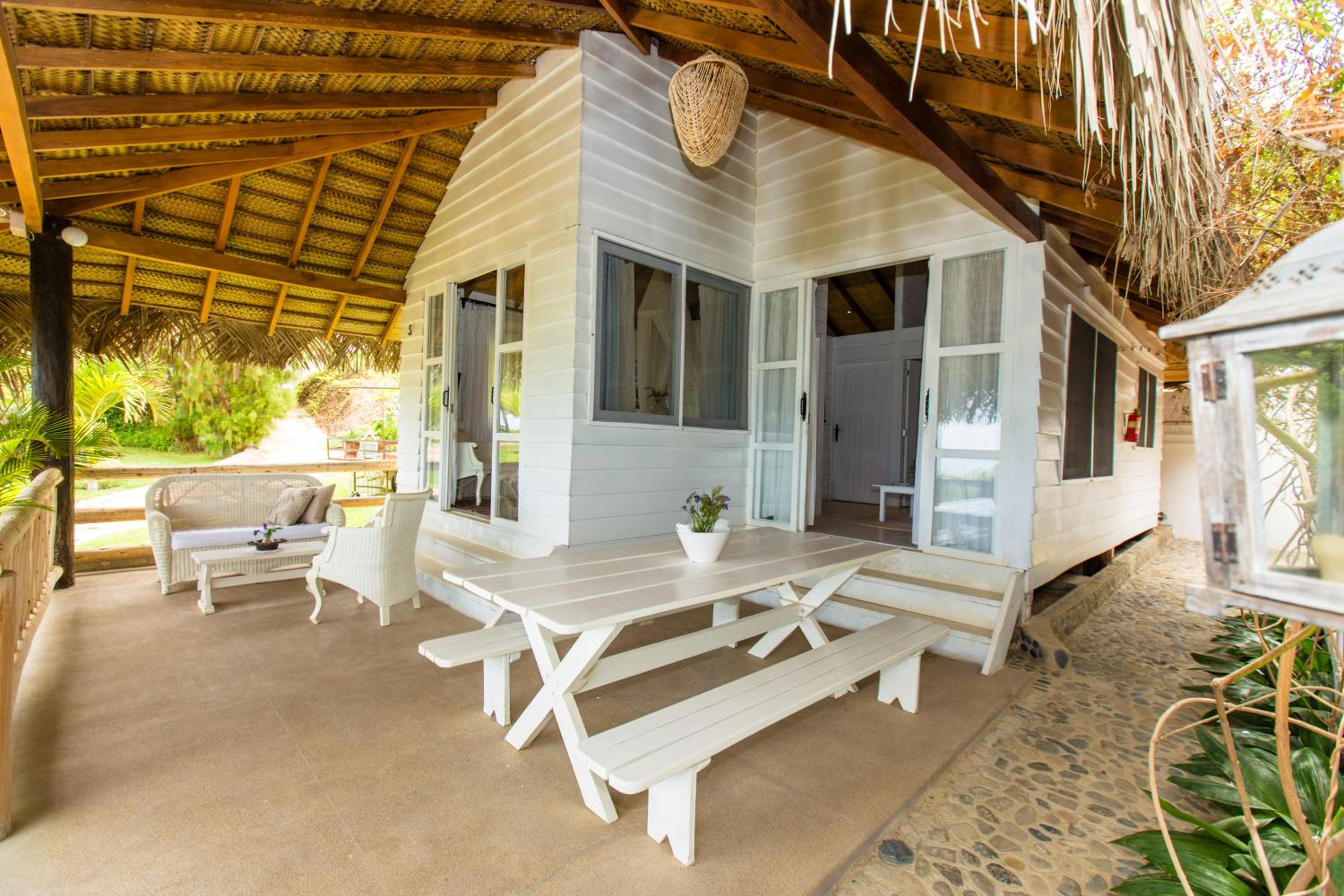 We stayed in the three bed villa which has a stunning outdoor bench area as well as seating, next to the plantation of locally produced herbs and spices!