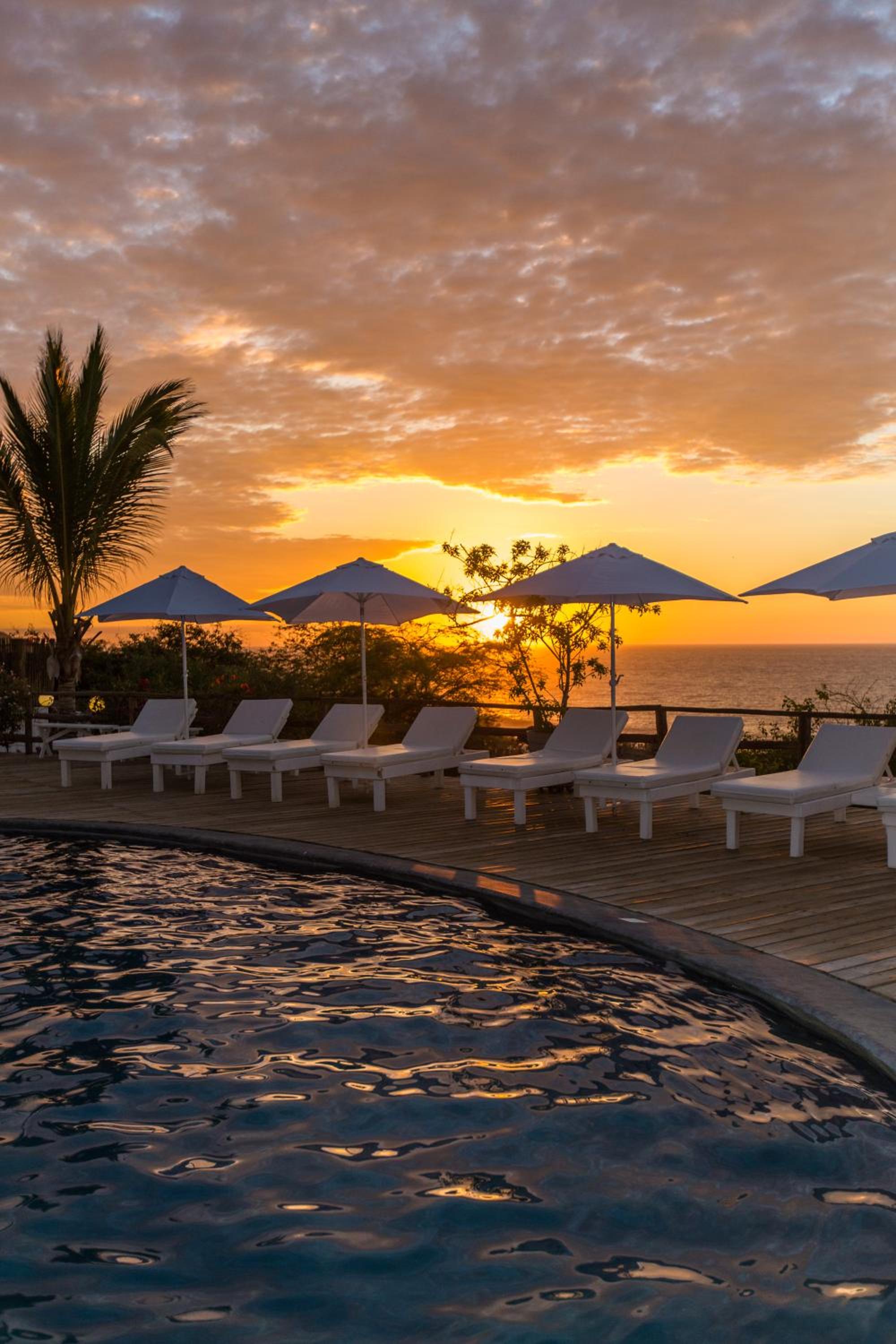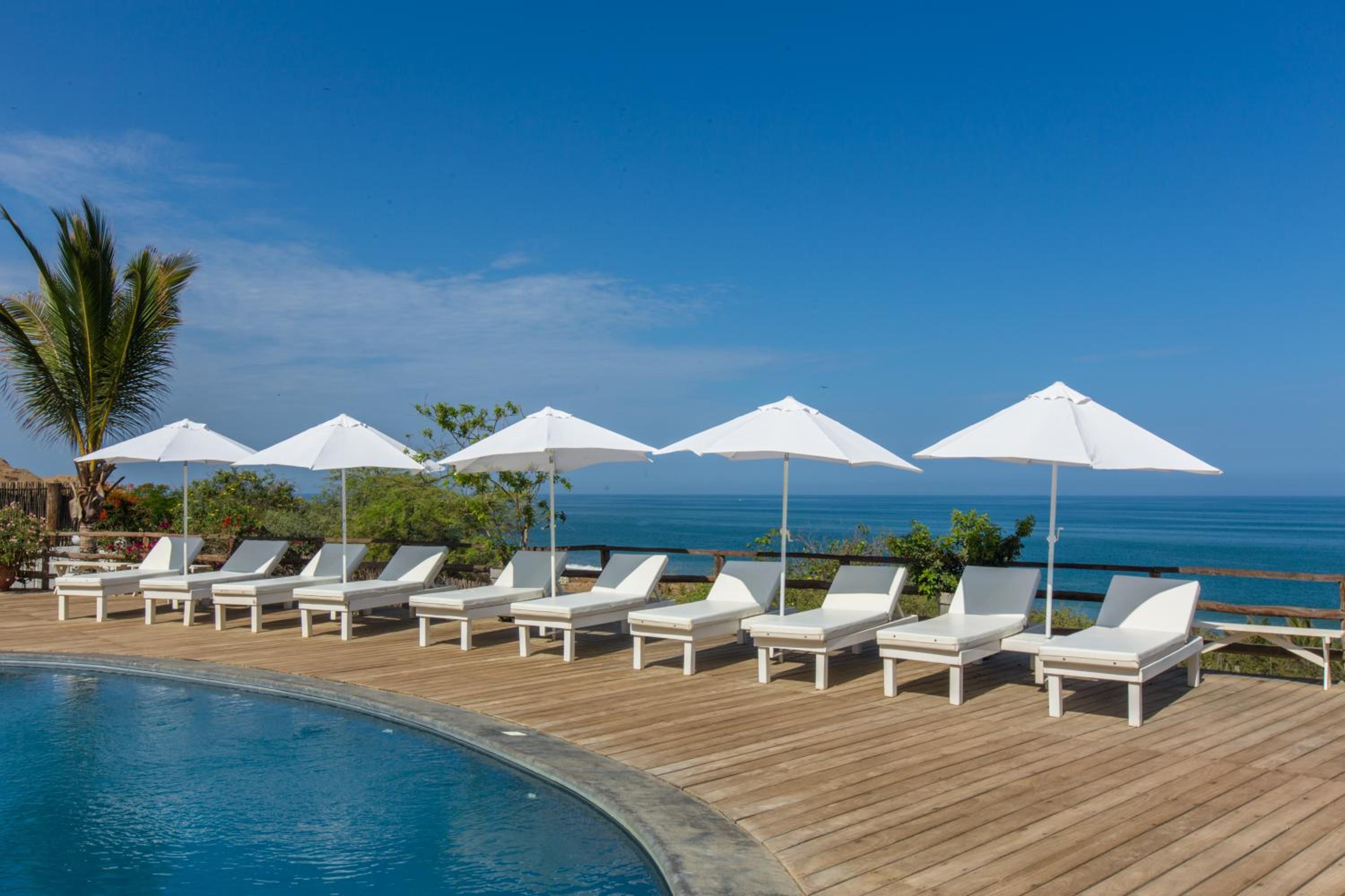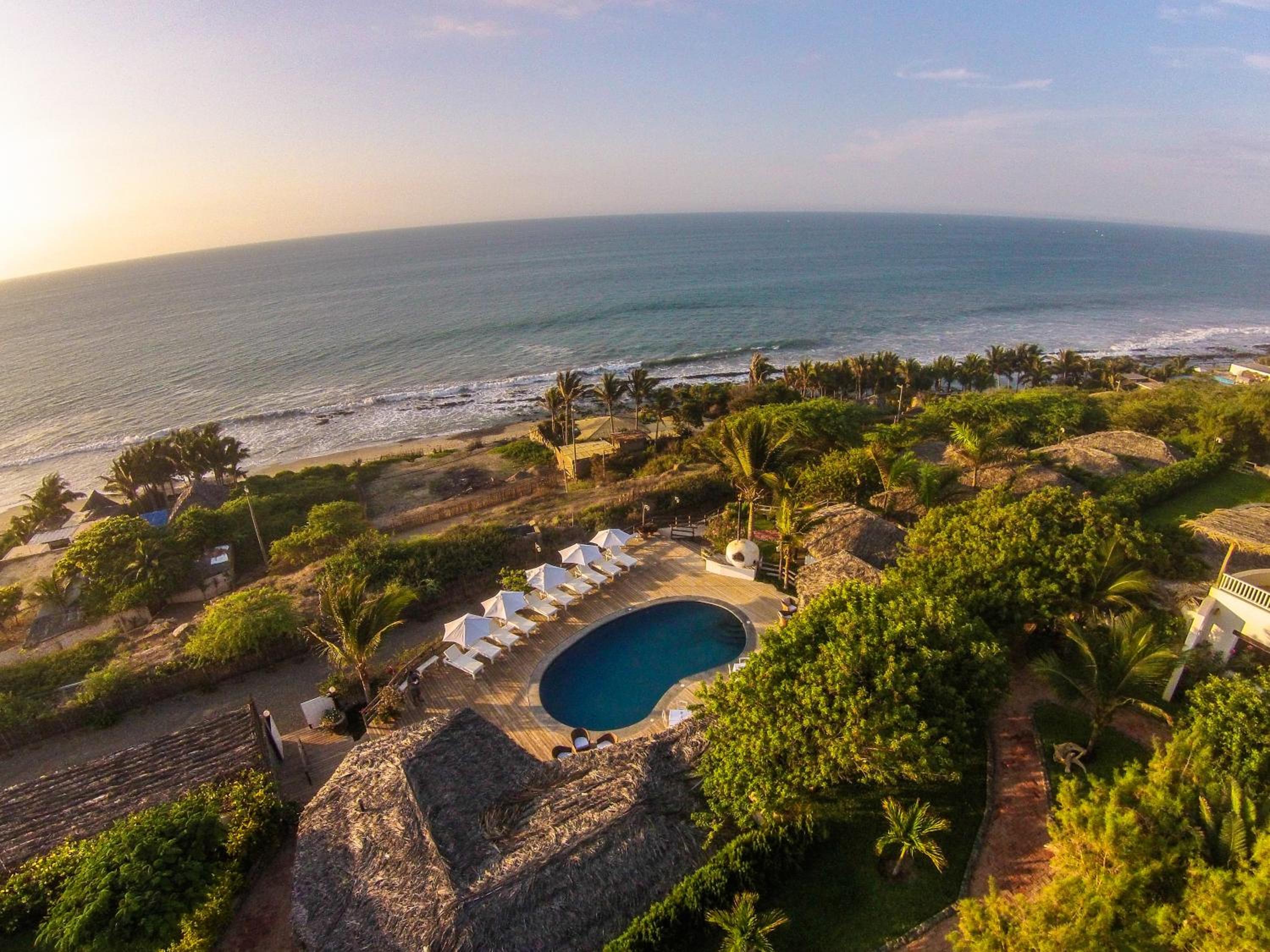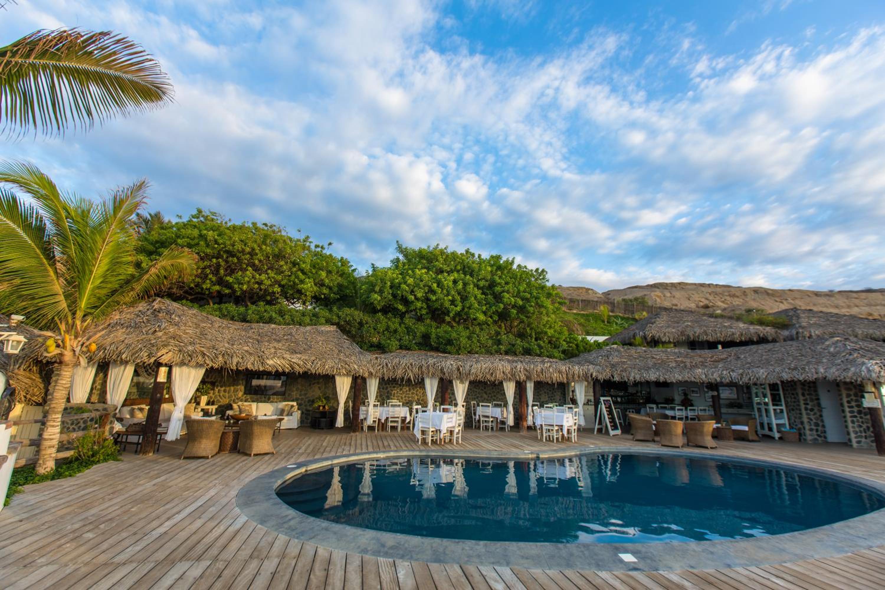 This is a nice hotel. Clean, nice staff, lovely facilities and nice rooms ( each is a separate bungalow). The quality of all the fittings is very high. The bar and restaurant are thr providers of beautiful food and the Happy Hour ( two hours!!!) is great before dinner. Long views over the ocean (we didn't see Australia !!!) with fabulous sunsets were a highlight. We could also sea whales and sea lions. Mancora town is not far, about 15 minutes by motor taxi ( ie. tuk- tuk) and at the weekend is vibrant. Lots of restaurants there but no real reason to leave the hotel and pool ! All in all, a wonderful stay to relax after an hectic travelling round the Peruvian sights! One final word, the road from Piura airport is very bad and it is a 2.5 hour drive!
