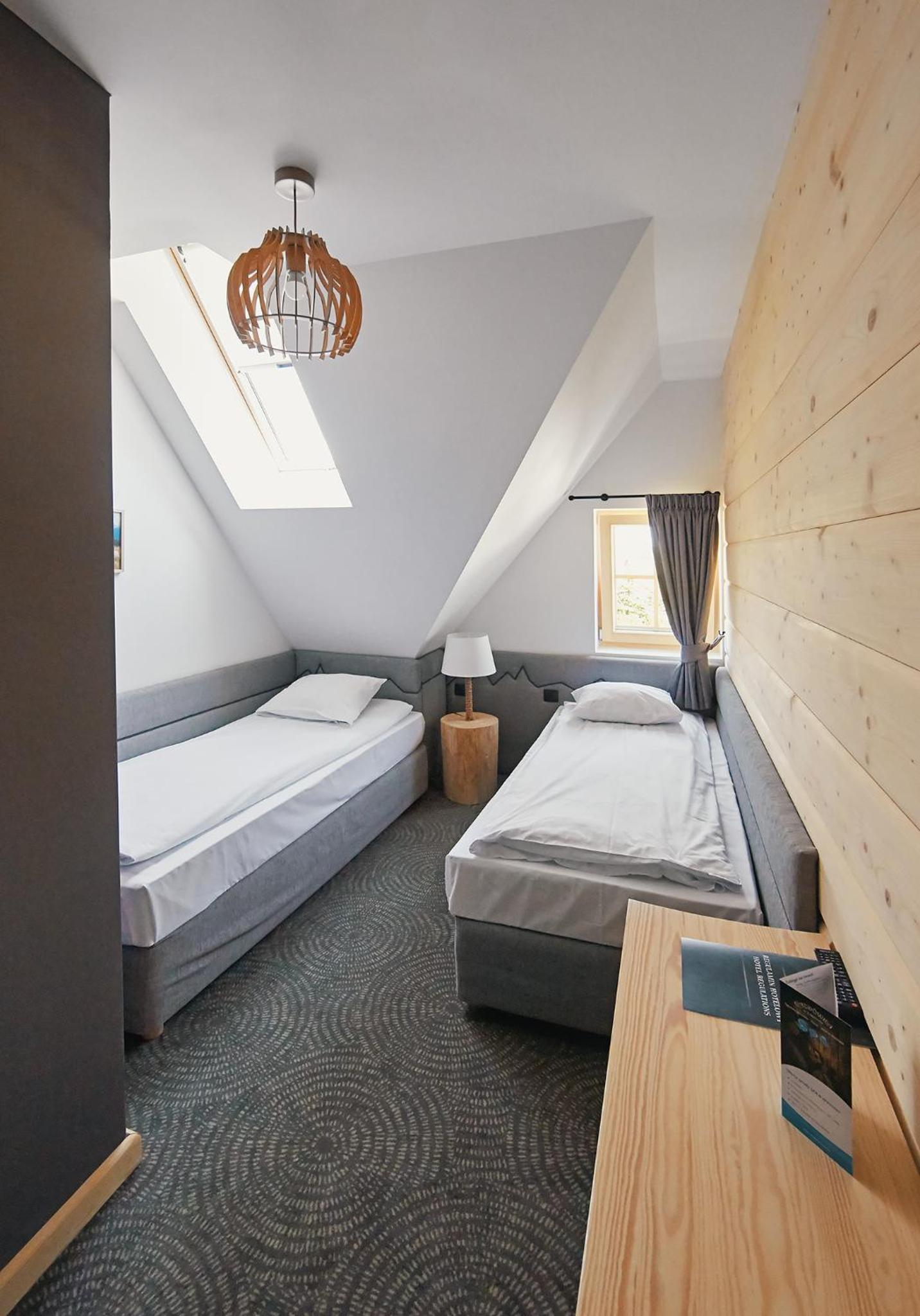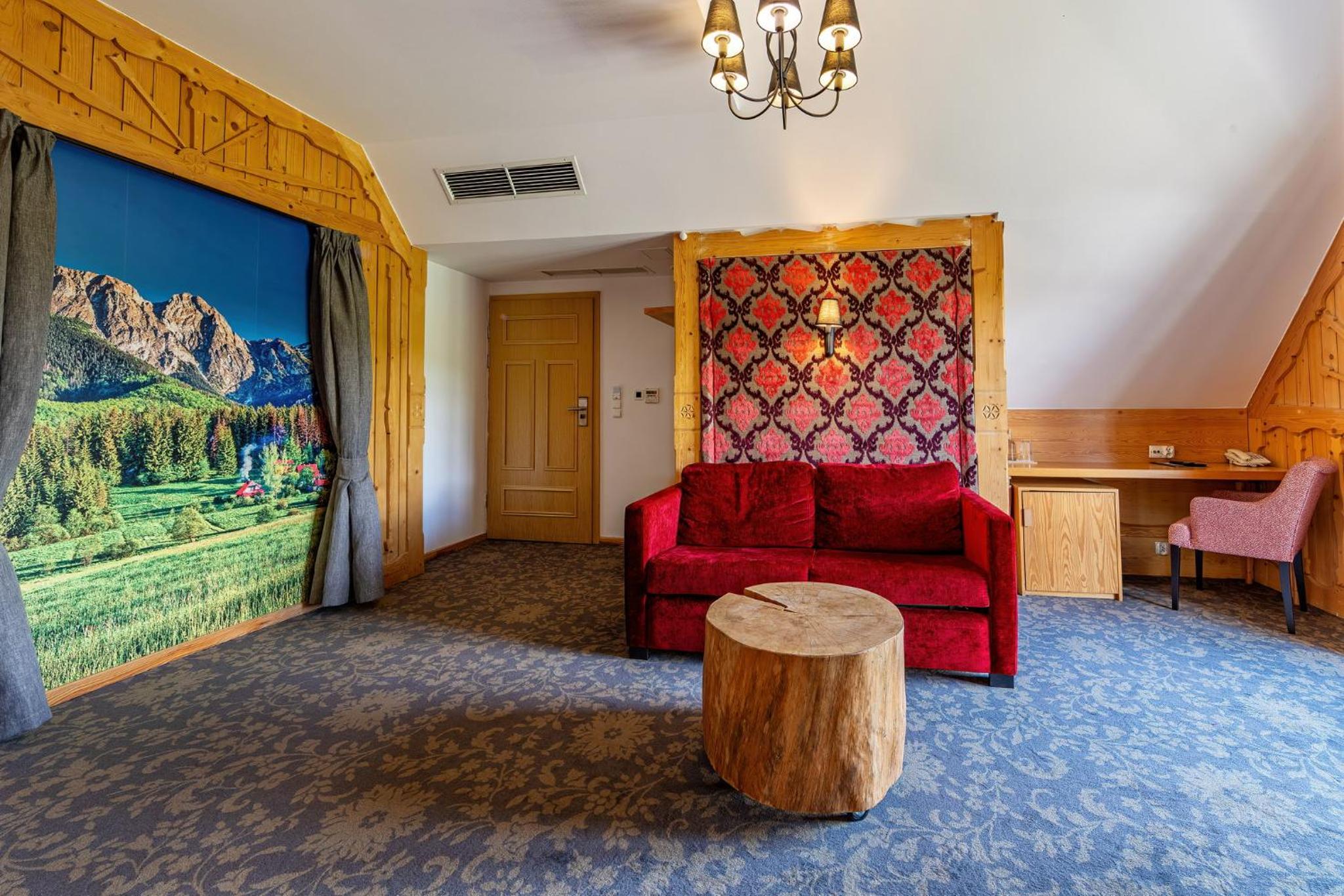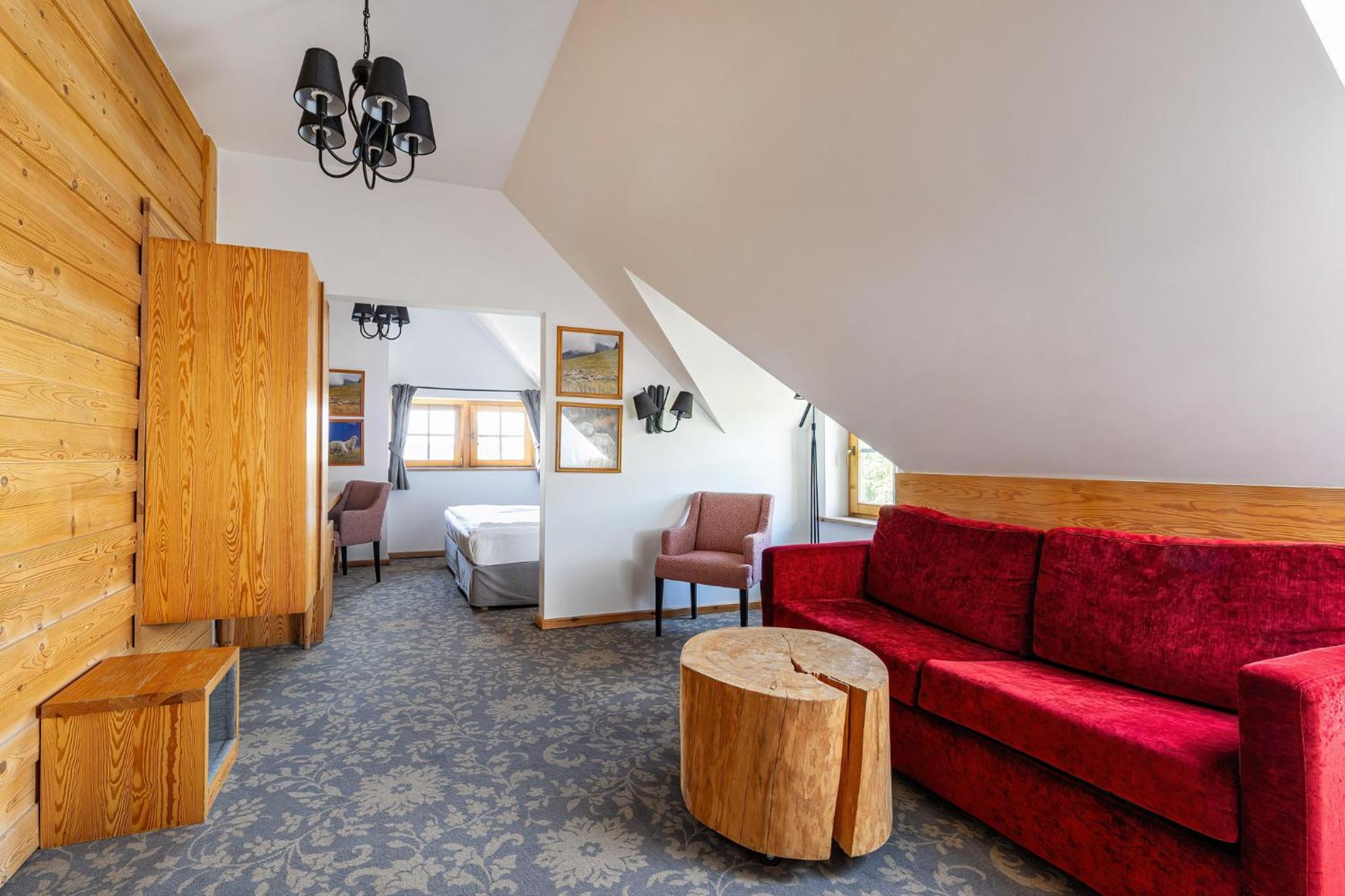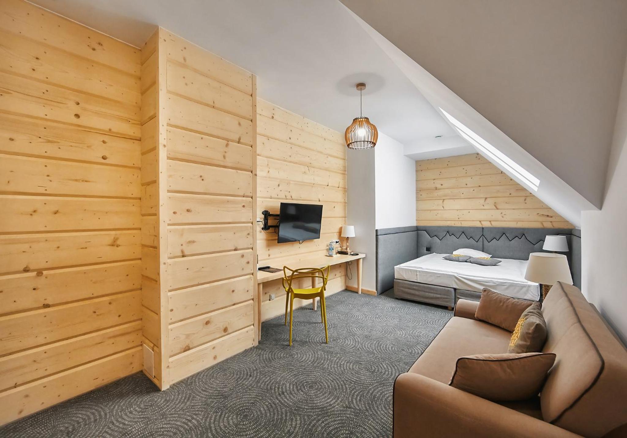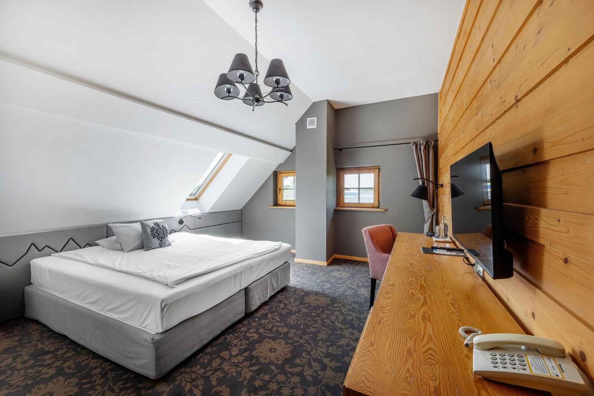 Hotel Gazdówka Spa offers modern rooms with highlander-style décor, ensuring a unique and cozy stay. Guests can unwind in the spa facilities, including a sauna and indoor swimming pool, all complimentary.