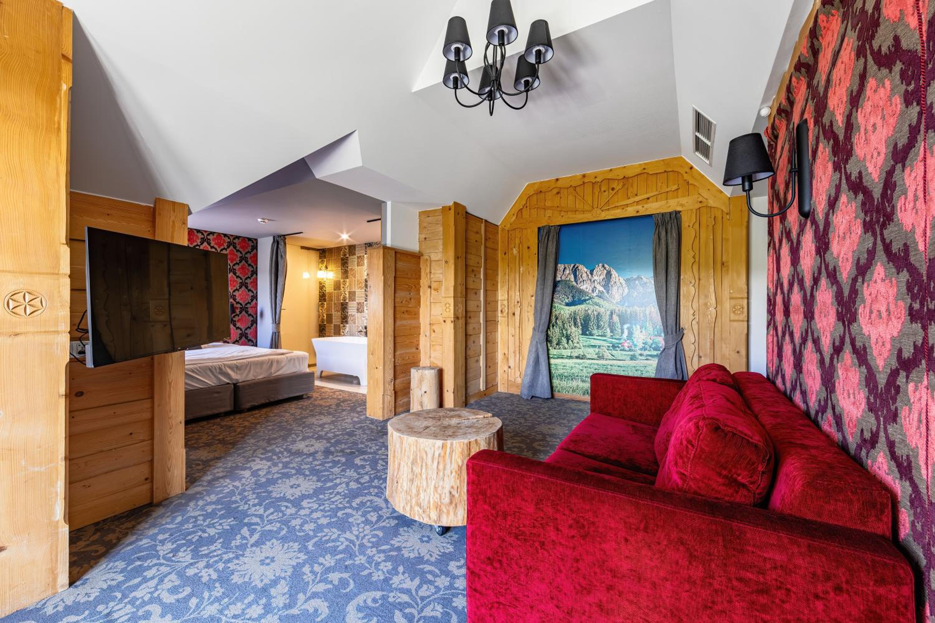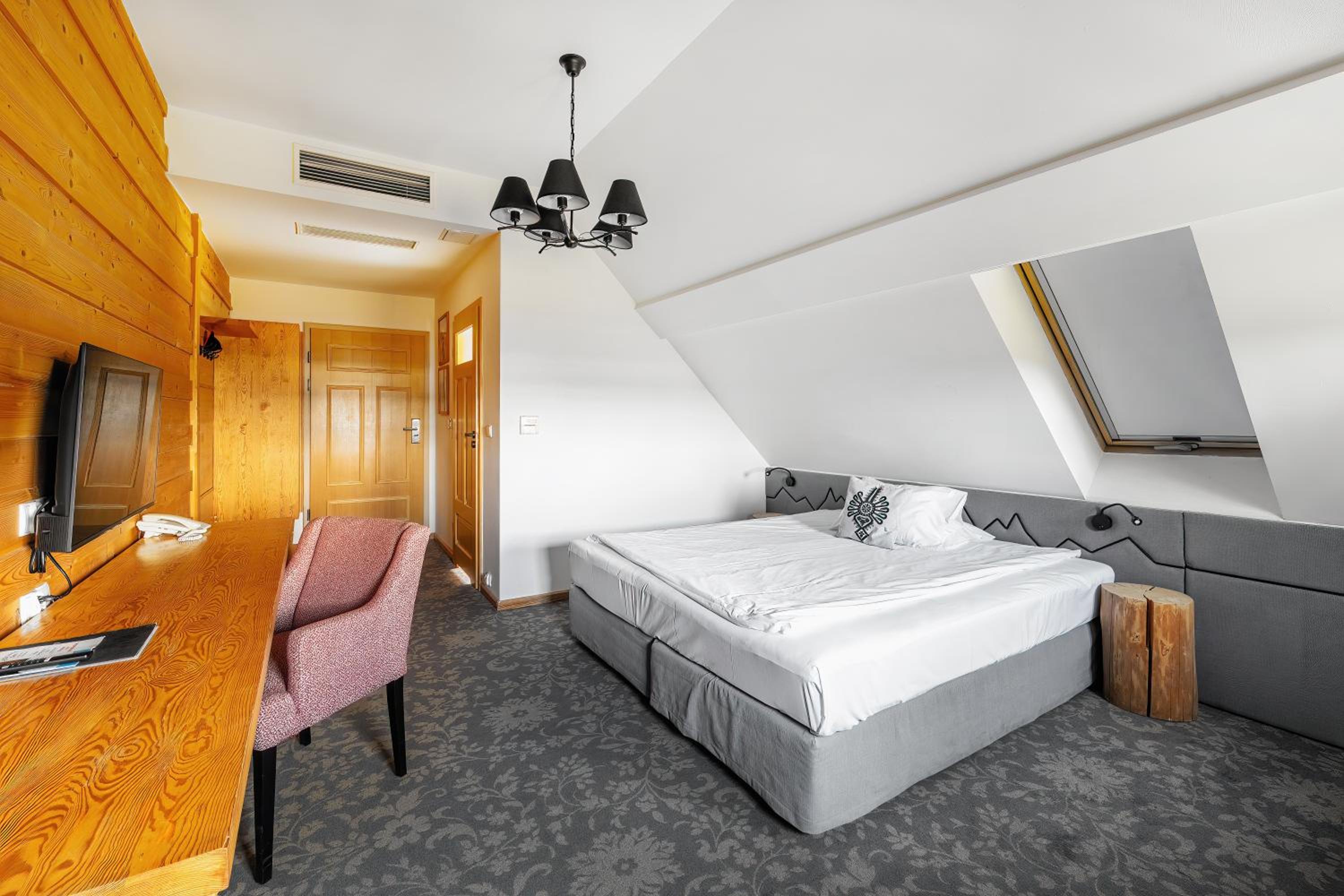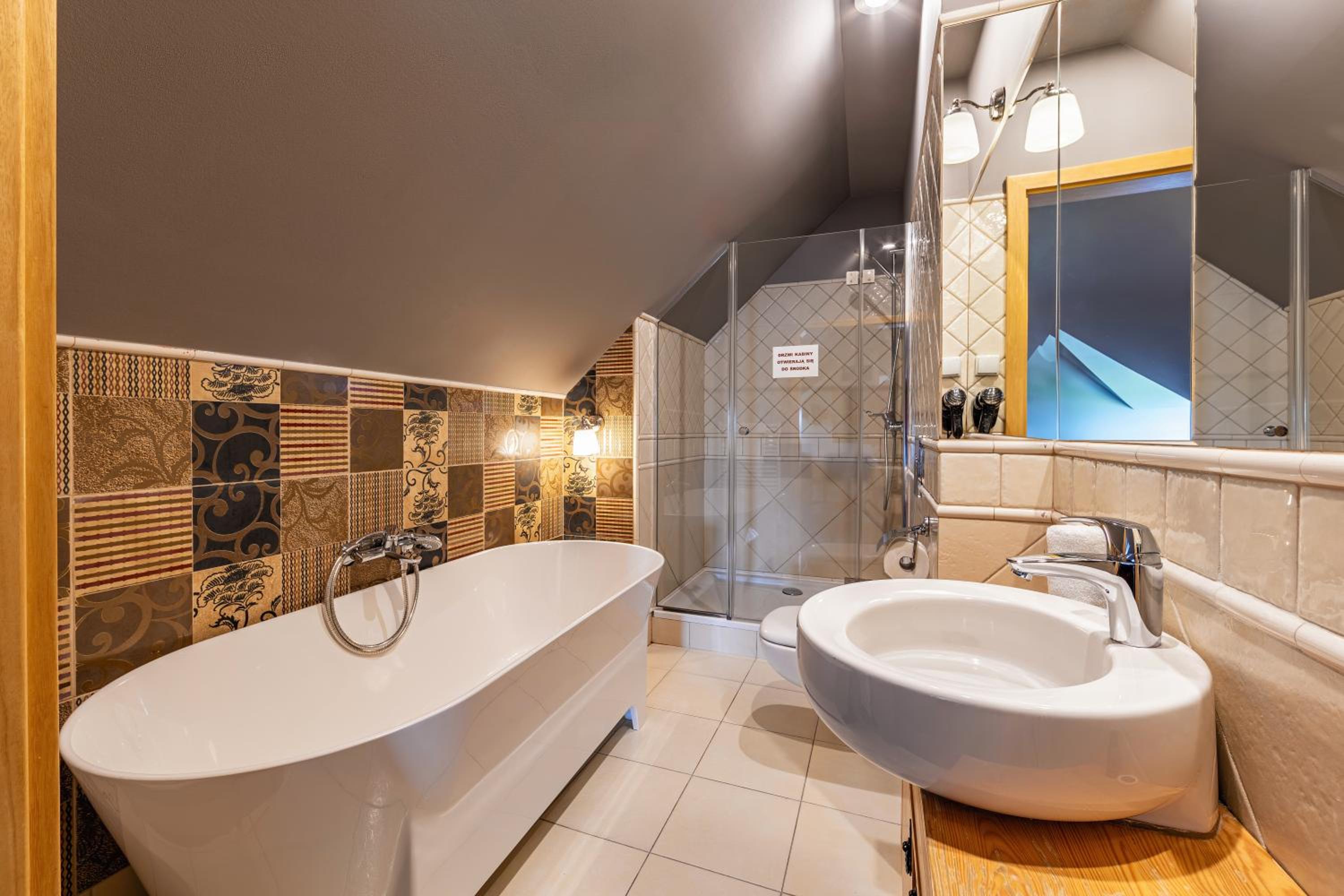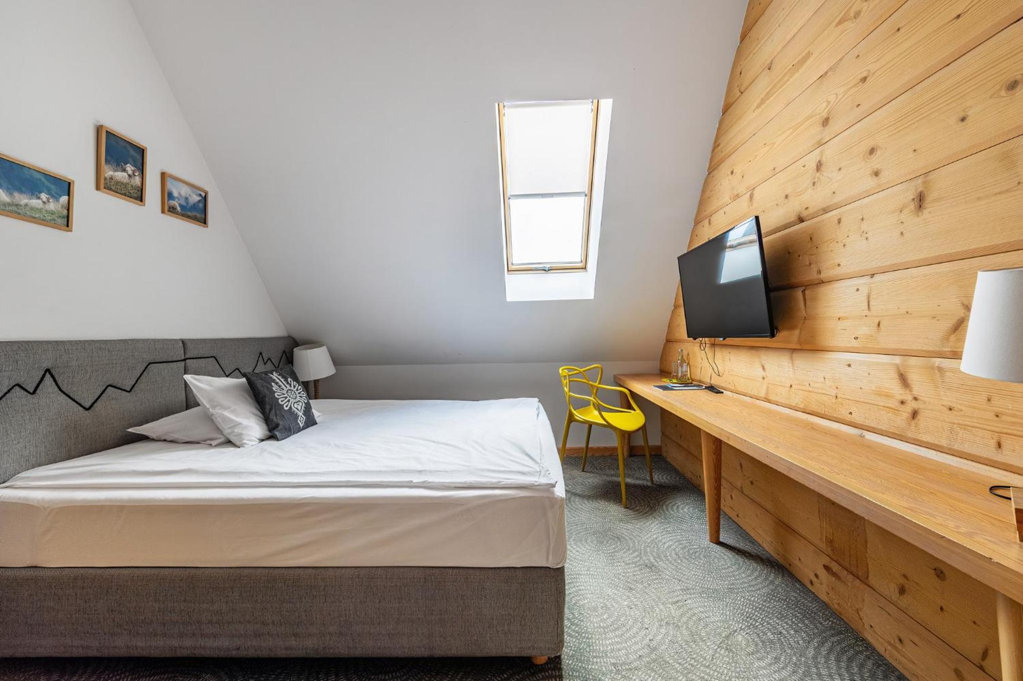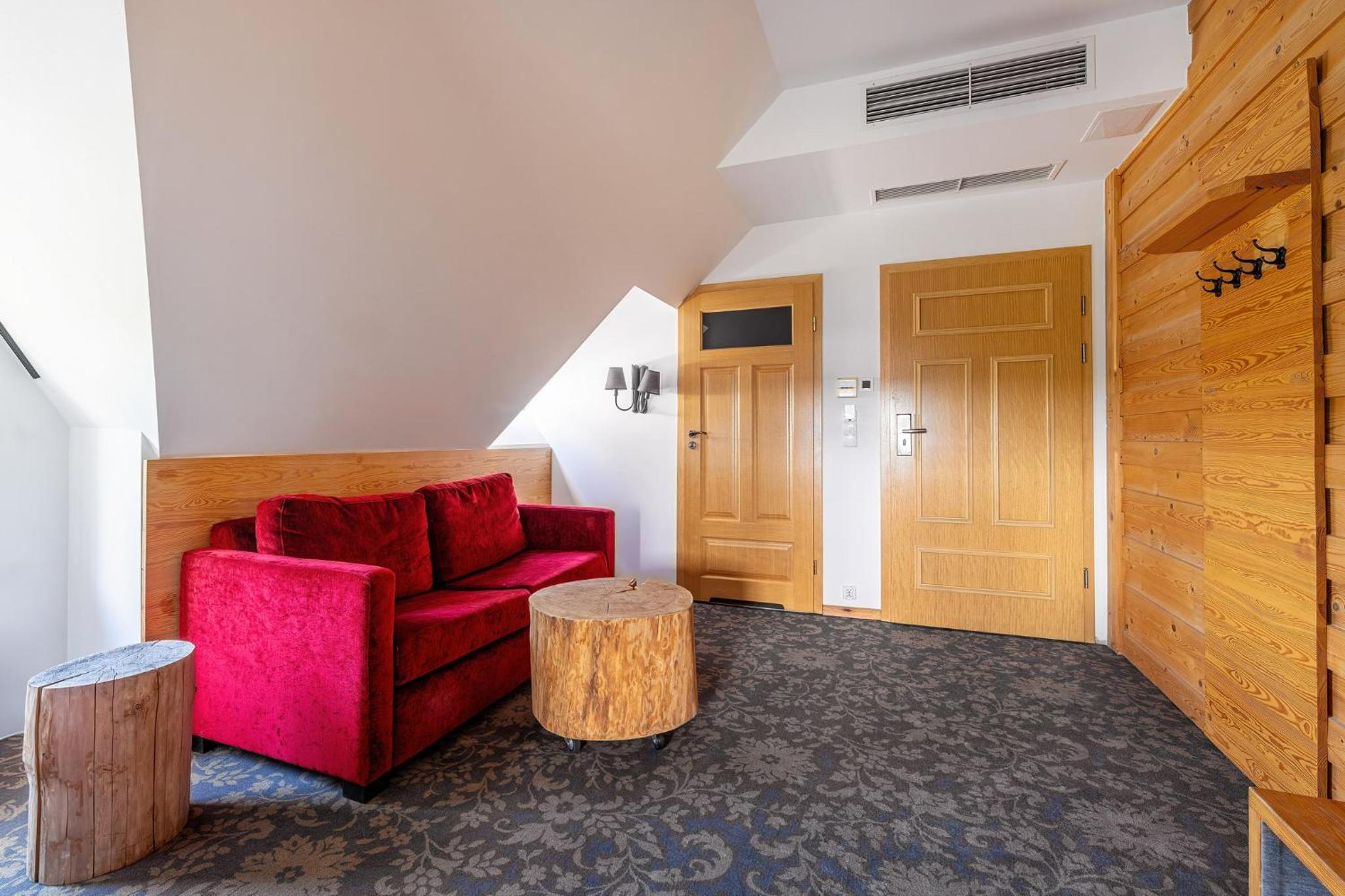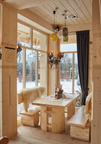 Hotel Gazdówka Spa offers modern rooms with highlander-style décor, ensuring a unique and cozy stay. Guests can unwind in the spa facilities, including a sauna and indoor swimming pool, all complimentary.