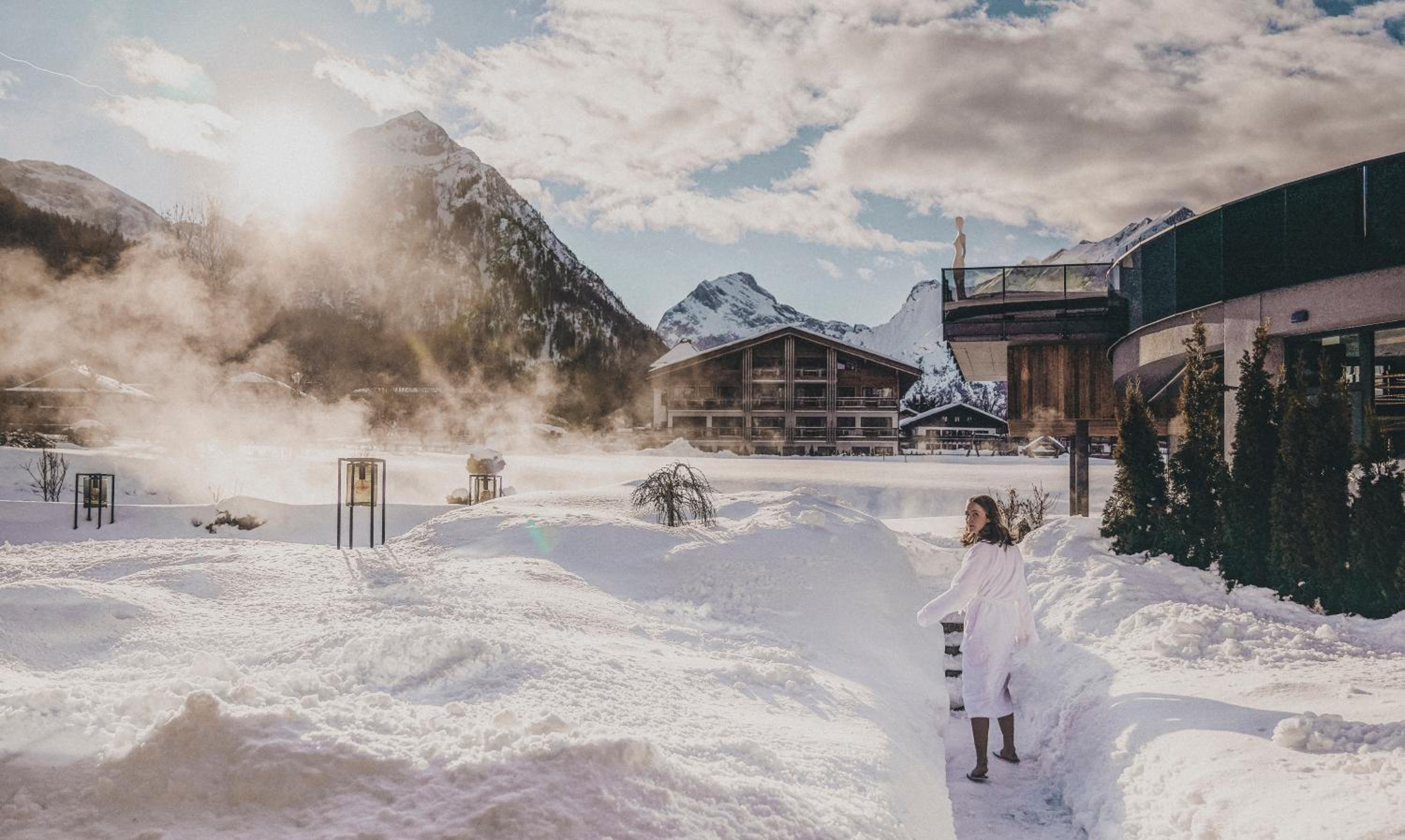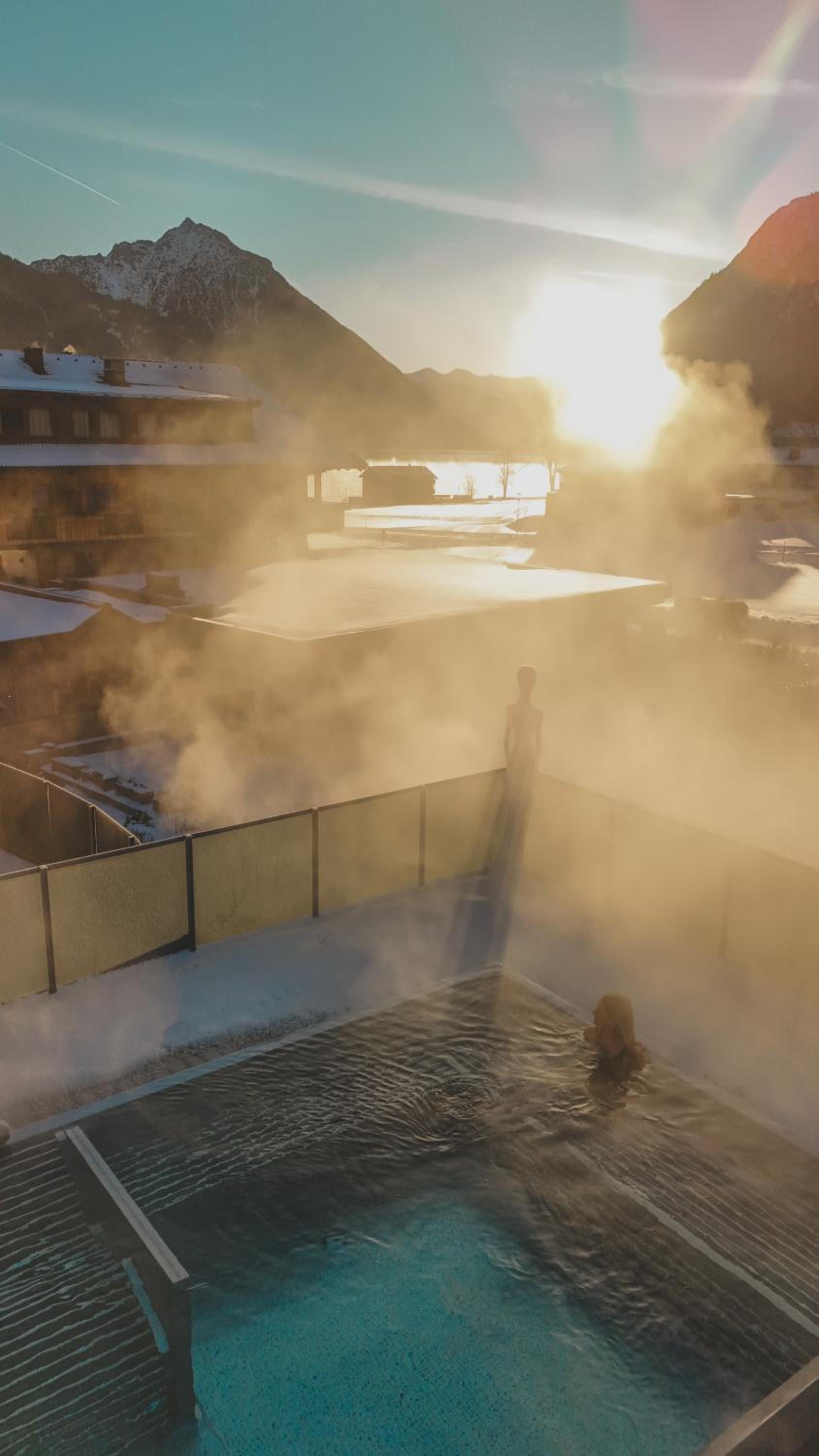Unwind in our sauna area with a panoramic relax room or explore the surrounding green meadows, cross-country track, and golf course.