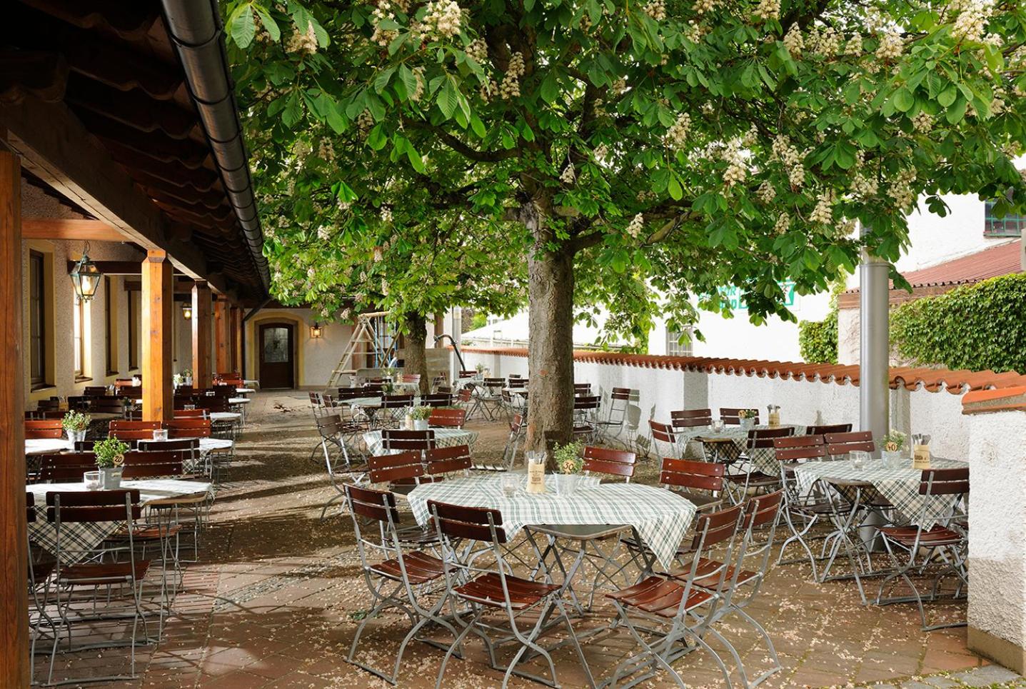 Summer Relaxation: Enjoy the serene beer garden shaded by chestnut trees, a perfect oasis to unwind. Kids can have a great time at the playground too.