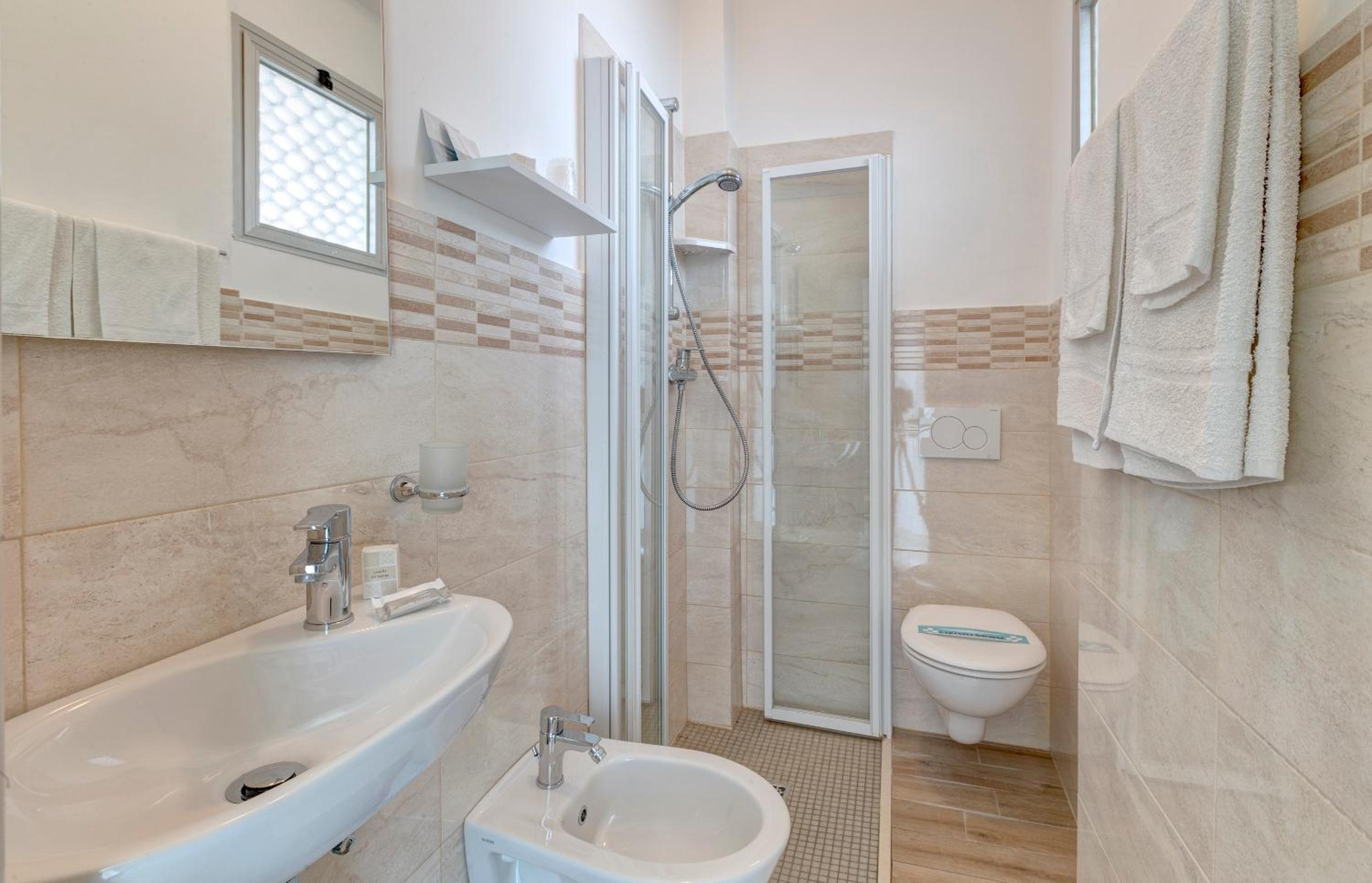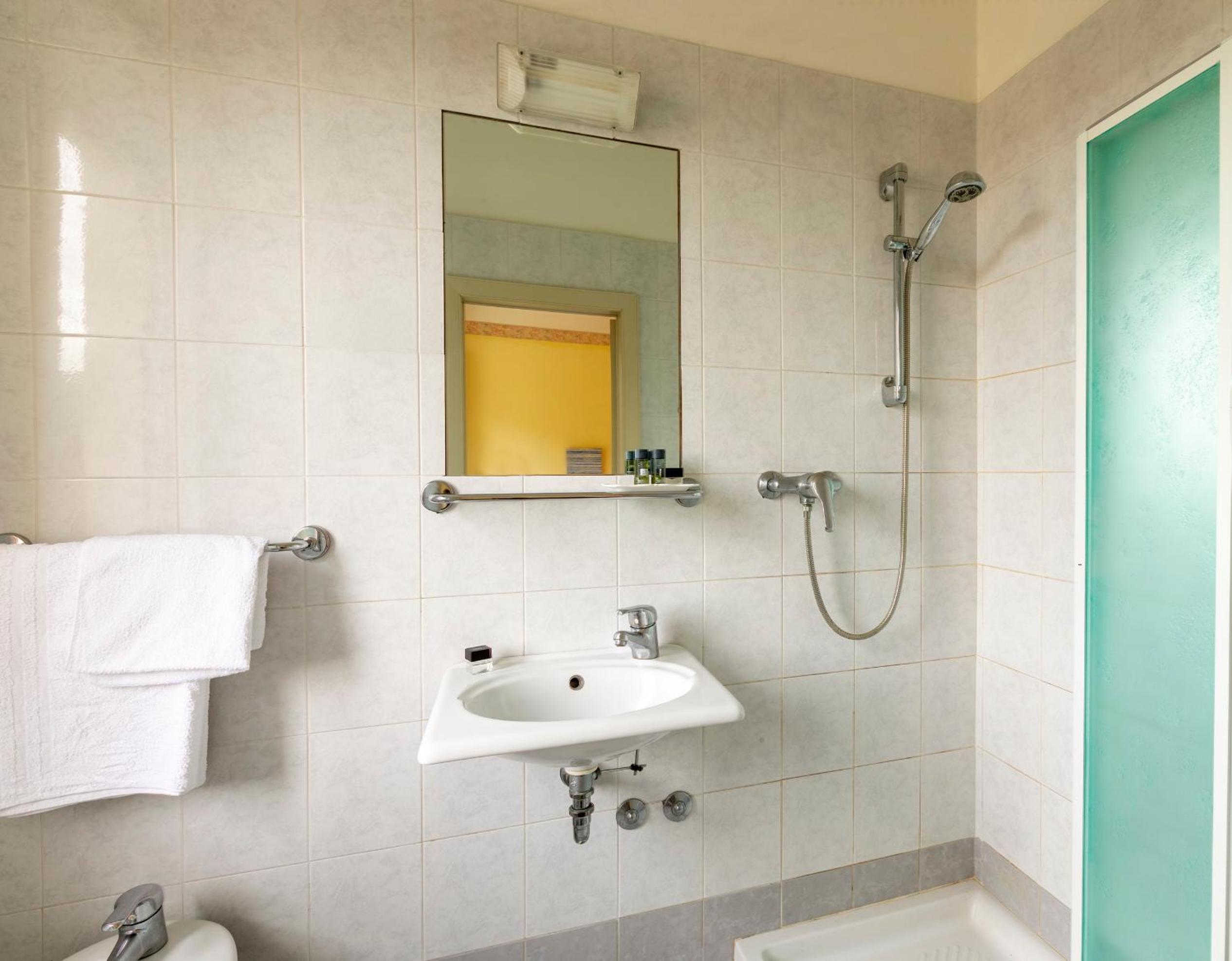 La camera era una tripla ma veramente piccola. Bagno anche piccolo, consiglierei di mettere almeno un filo fuori x stendere qualcosina come asciugamani e costumi