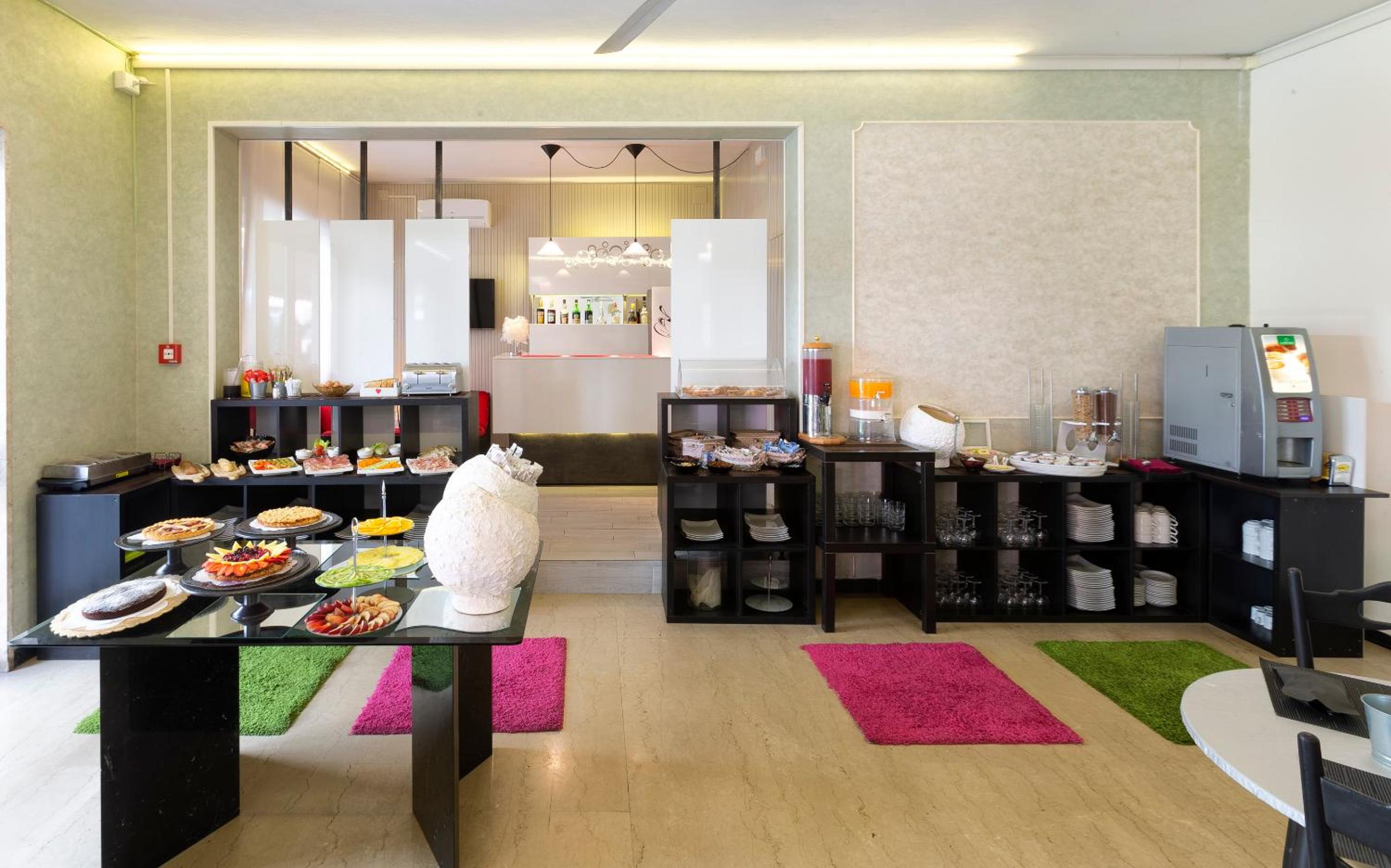 L'hotel si trova nella strada principale vicino a tutti i servizi. Ci sono ristoranti , tabacchi , negozi, bar e mini market. Lo staff è davvero delizioso. Il signor Stefano sempre molto gentile e cordiale ed anche la ragazza della reception sempre molto attenta. Punto forte LA COLAZIONE!! io e mia figlia non abbiamo mai trovato una colazione così buona, varia e completa come qua. A qualsiasi ora vai è sempre pieno di cibo anche particolare. Per non parlare dei ristoranti convenzionati per il cibo, uno Migliore dell'altro . Veramente un hotel delizioso.