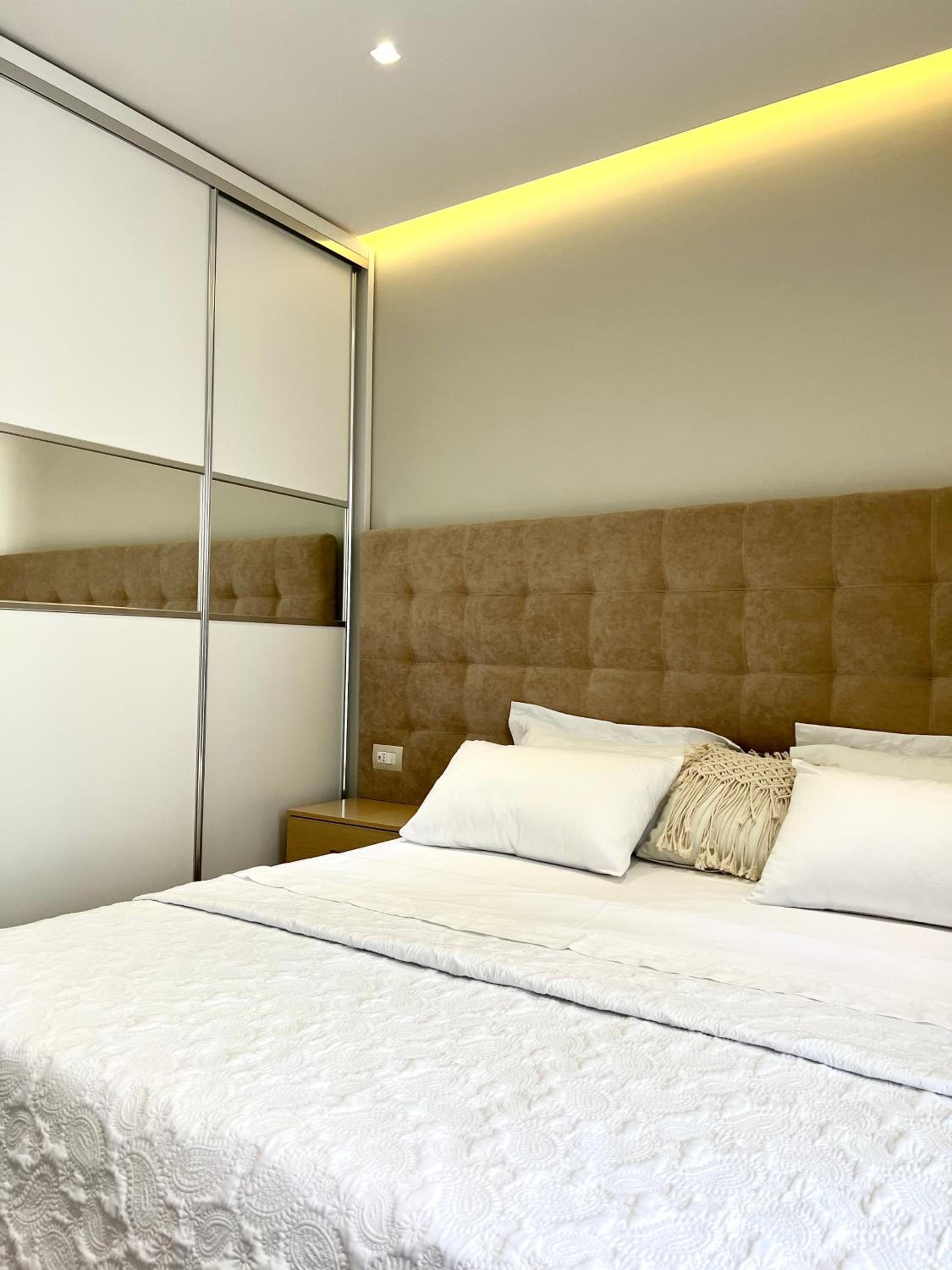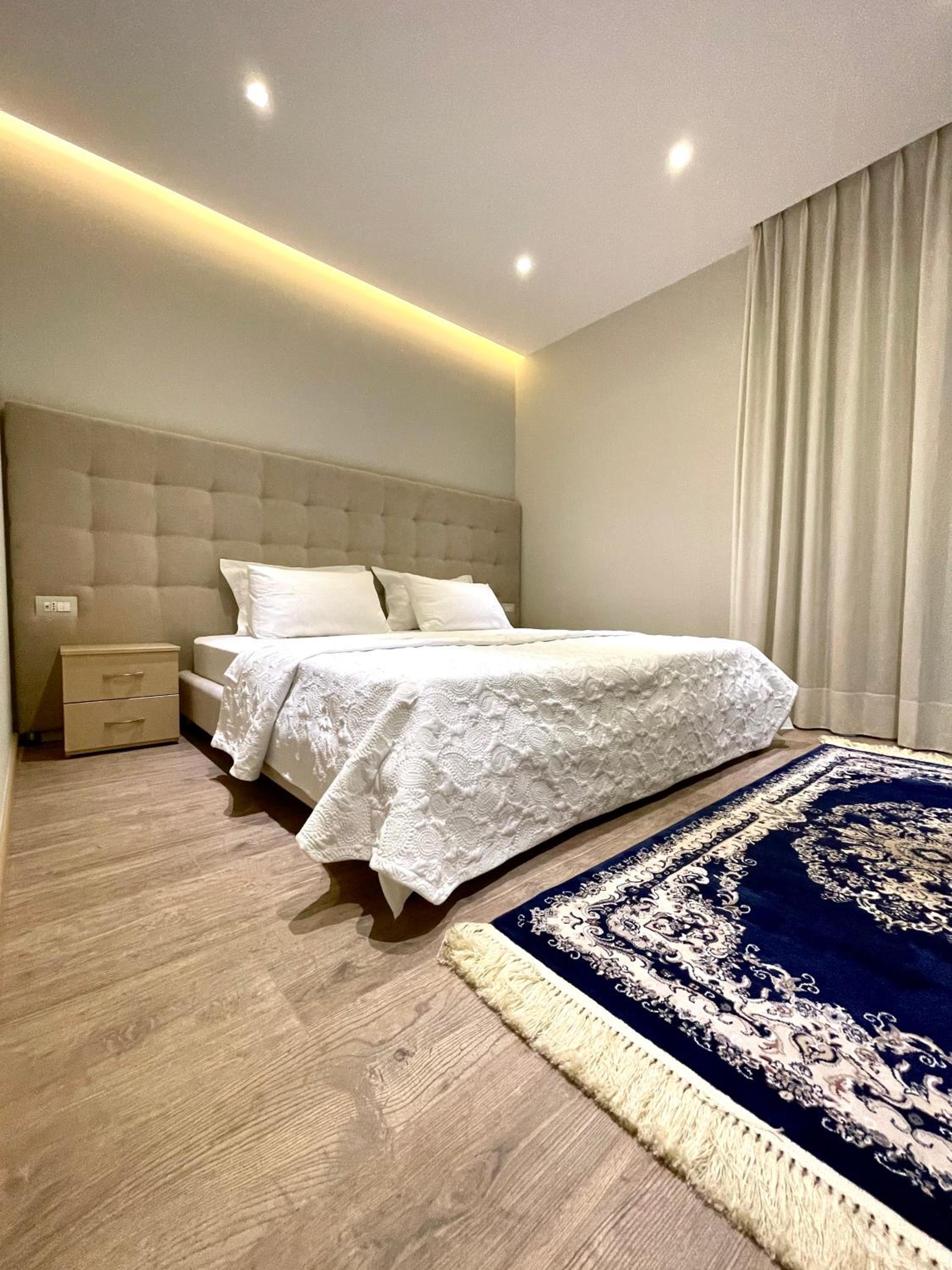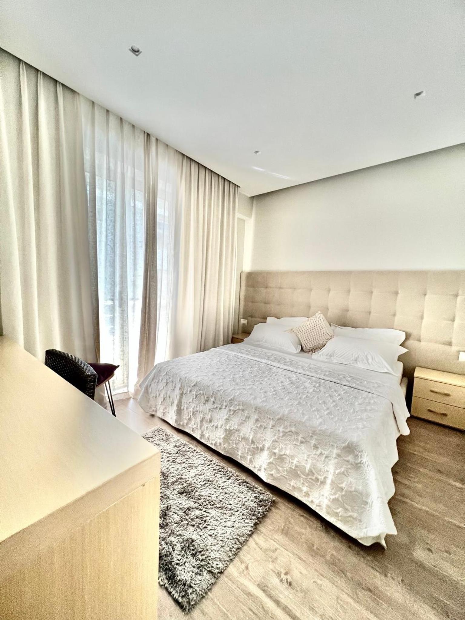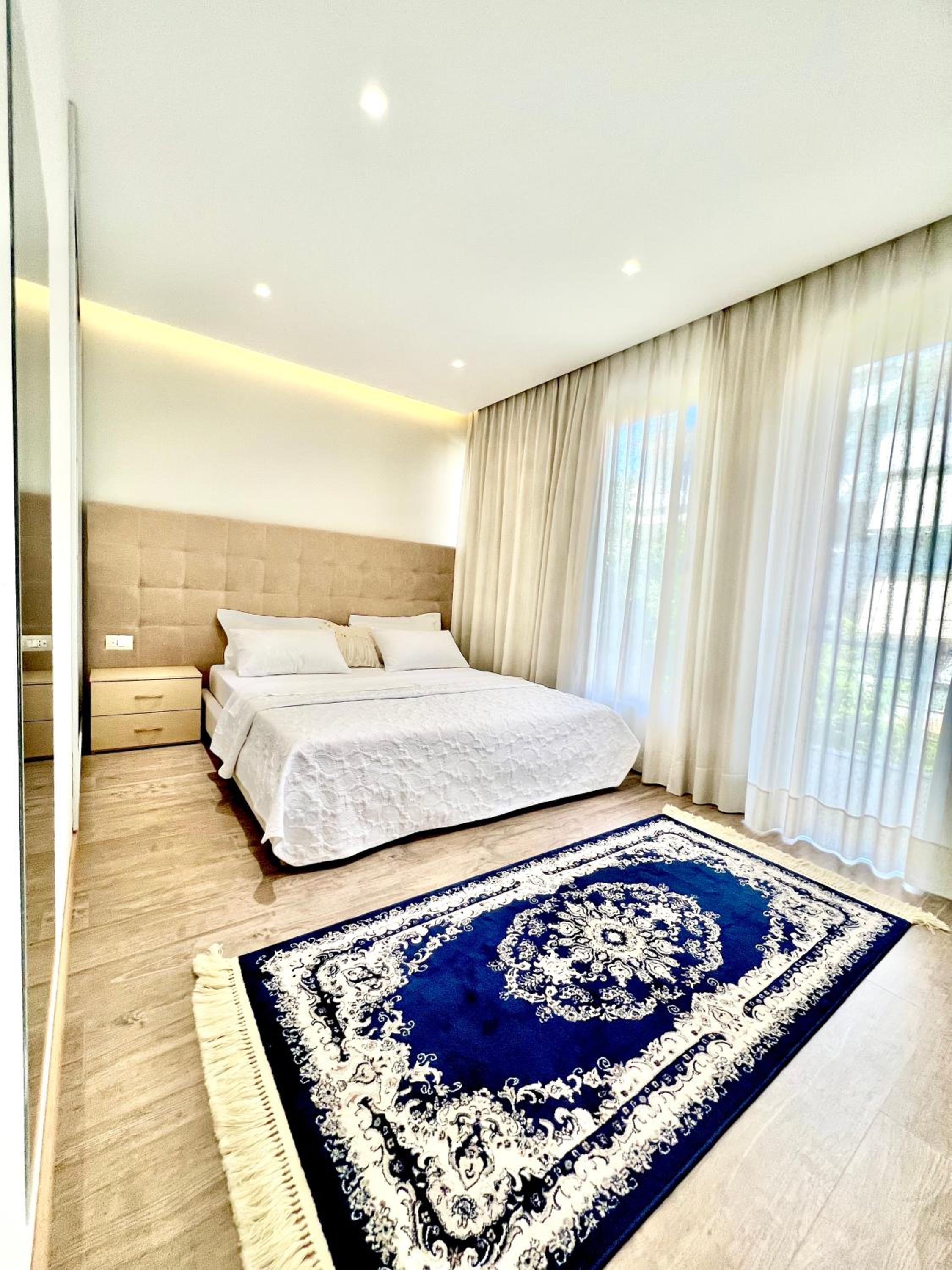 A little pricey for small room in Saranda, you're paying a premium for proximity to promenade and newness of property