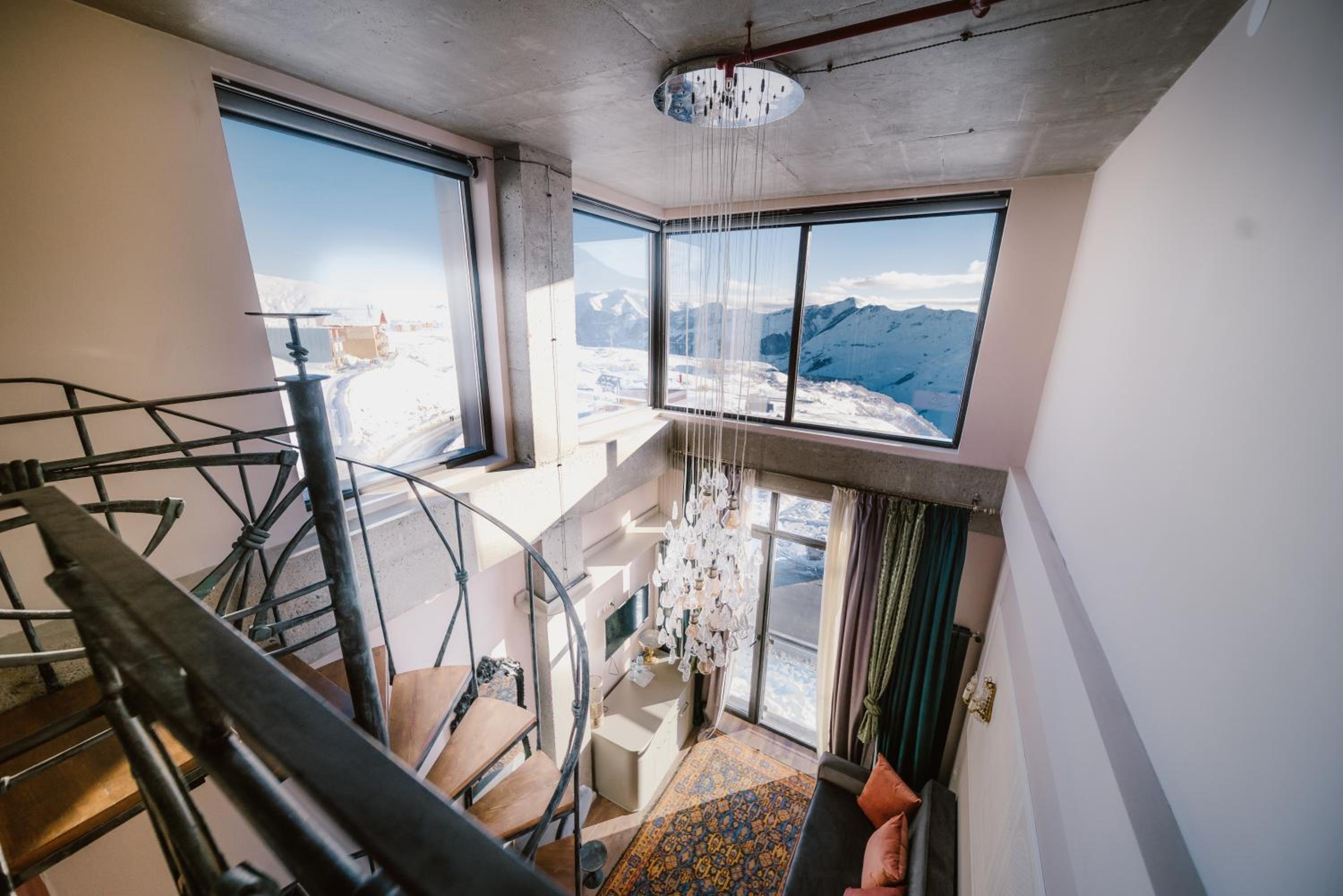 The hotel is located away from the most crowded areas of Gudauri, which we loved. Take the road up into the hills to discover breathtaking views, especially during sunset and sunrise, and enjoy peaceful walks in the snow.