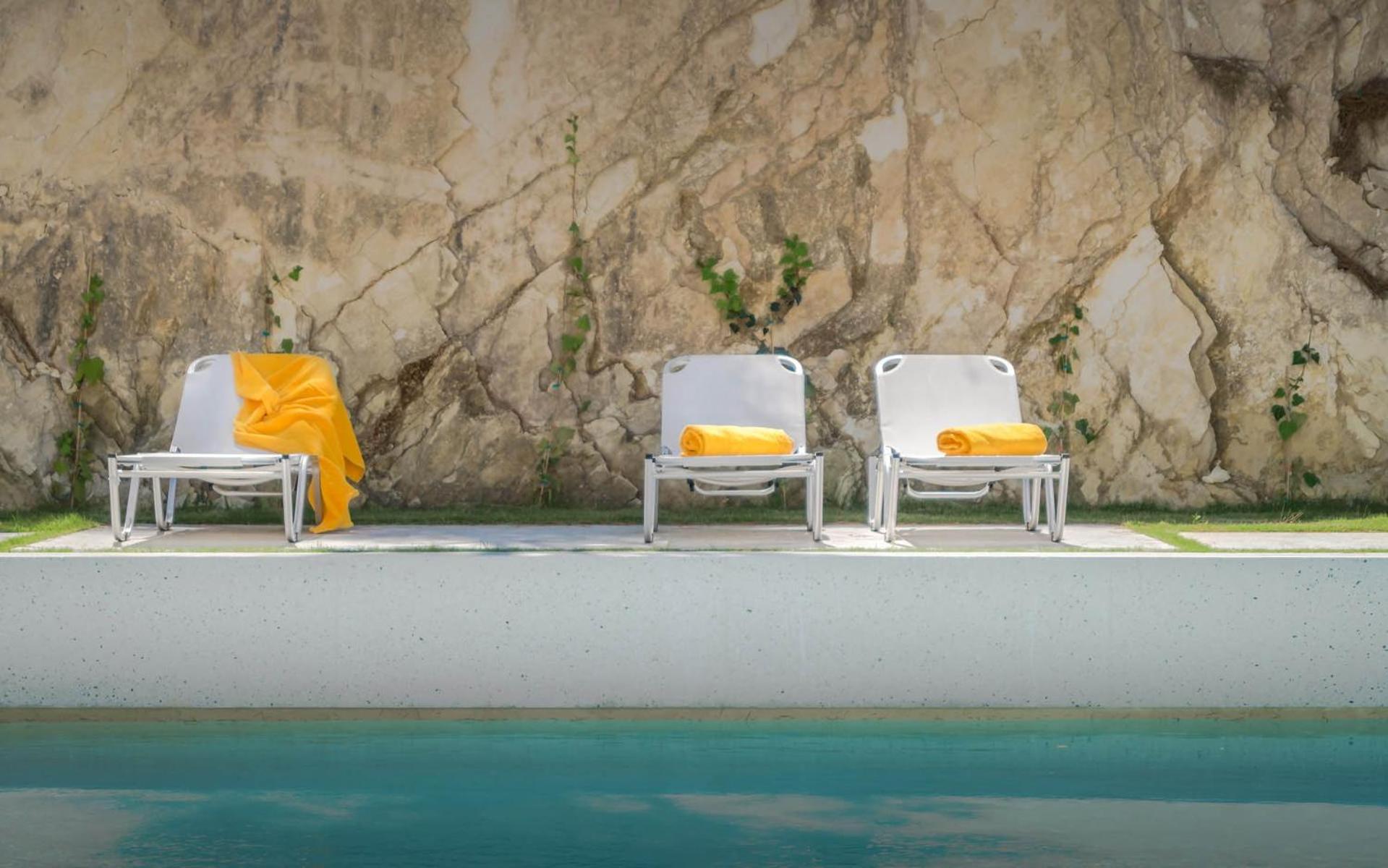 Unwind by the outdoor pool, nestled against a scenic rock backdrop, or sip a refreshing drink at the sun terrace bar. Our stylishly decorated rooms, featuring natural materials, offer a tranquil escape. Pamper yourself in the private bathroom with free toiletries and a hairdryer provided in each room.