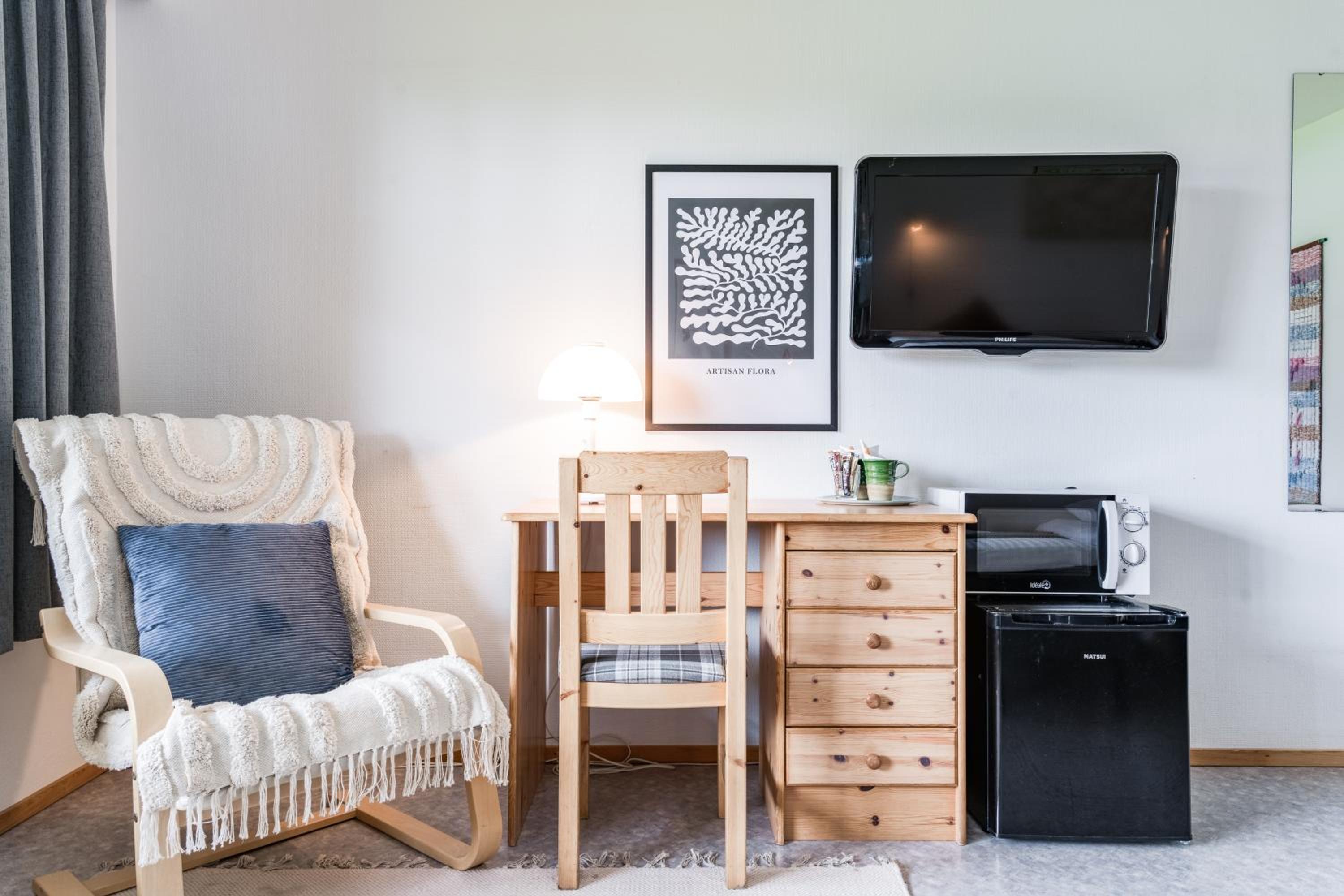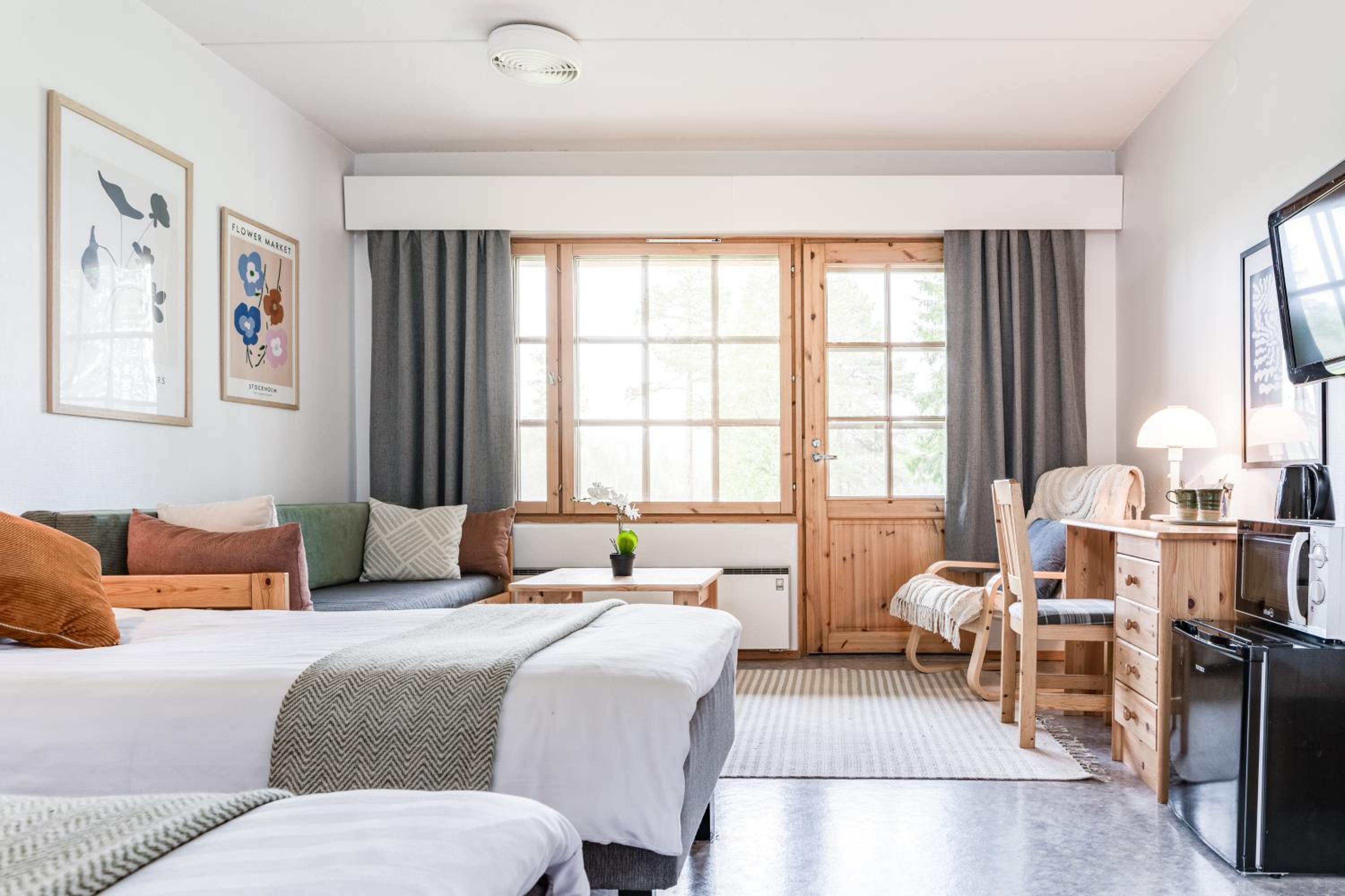 Each room at Hotel Kuusamon Portti is thoughtfully equipped with modern amenities, including a balcony in select rooms, ensuring a comfortable stay. Wake up to a beautiful view and enjoy a freshly brewed coffee from the in-room coffee machine.