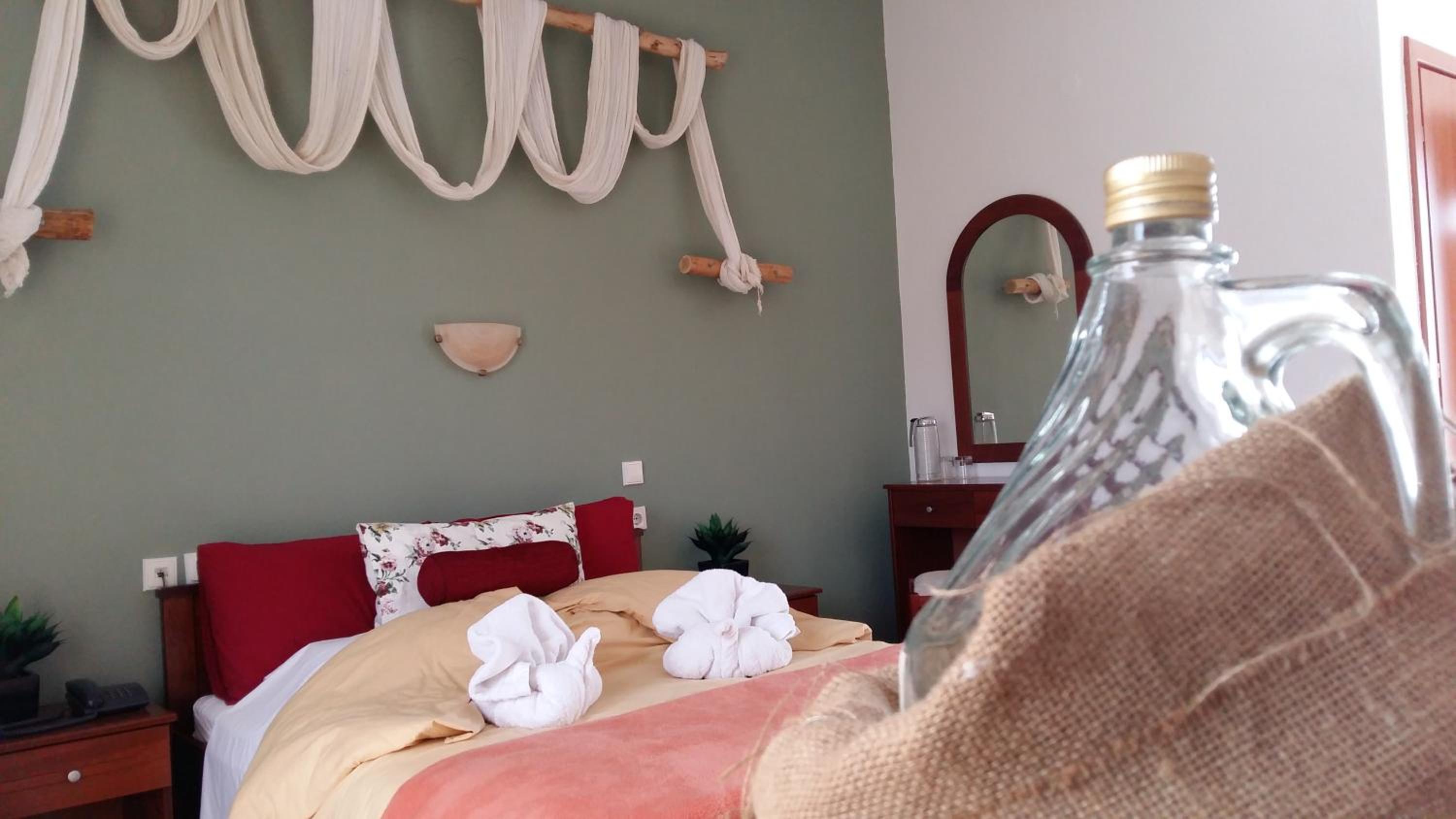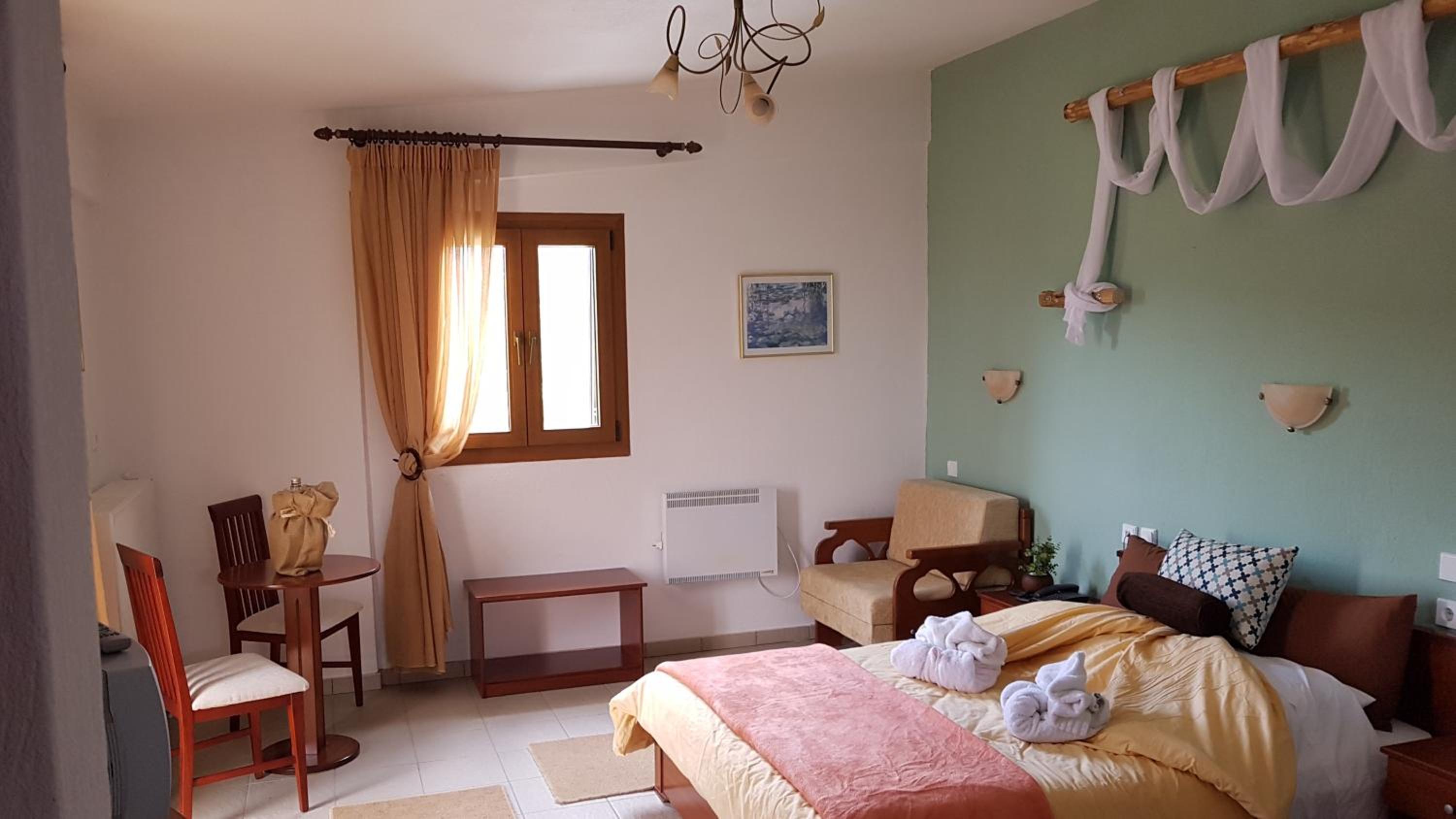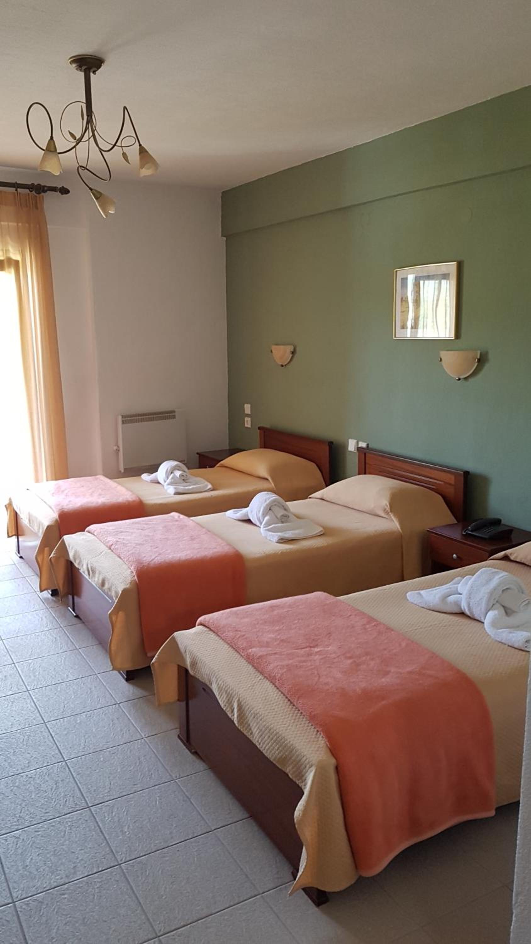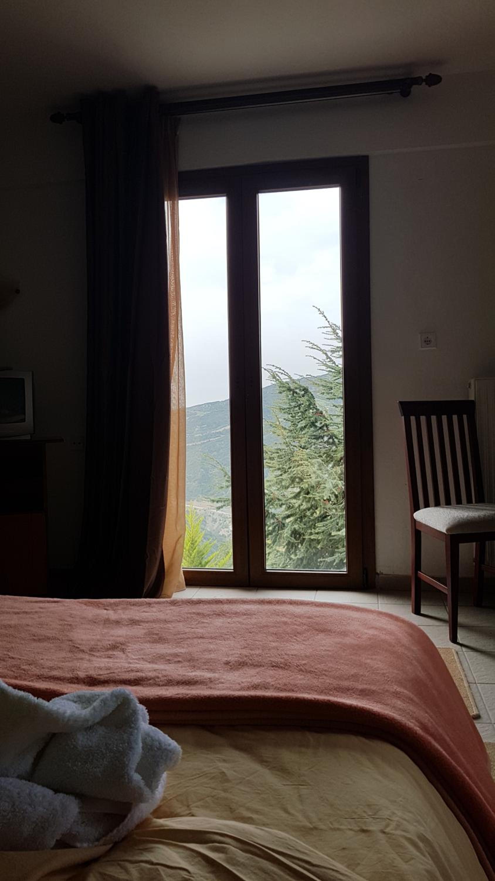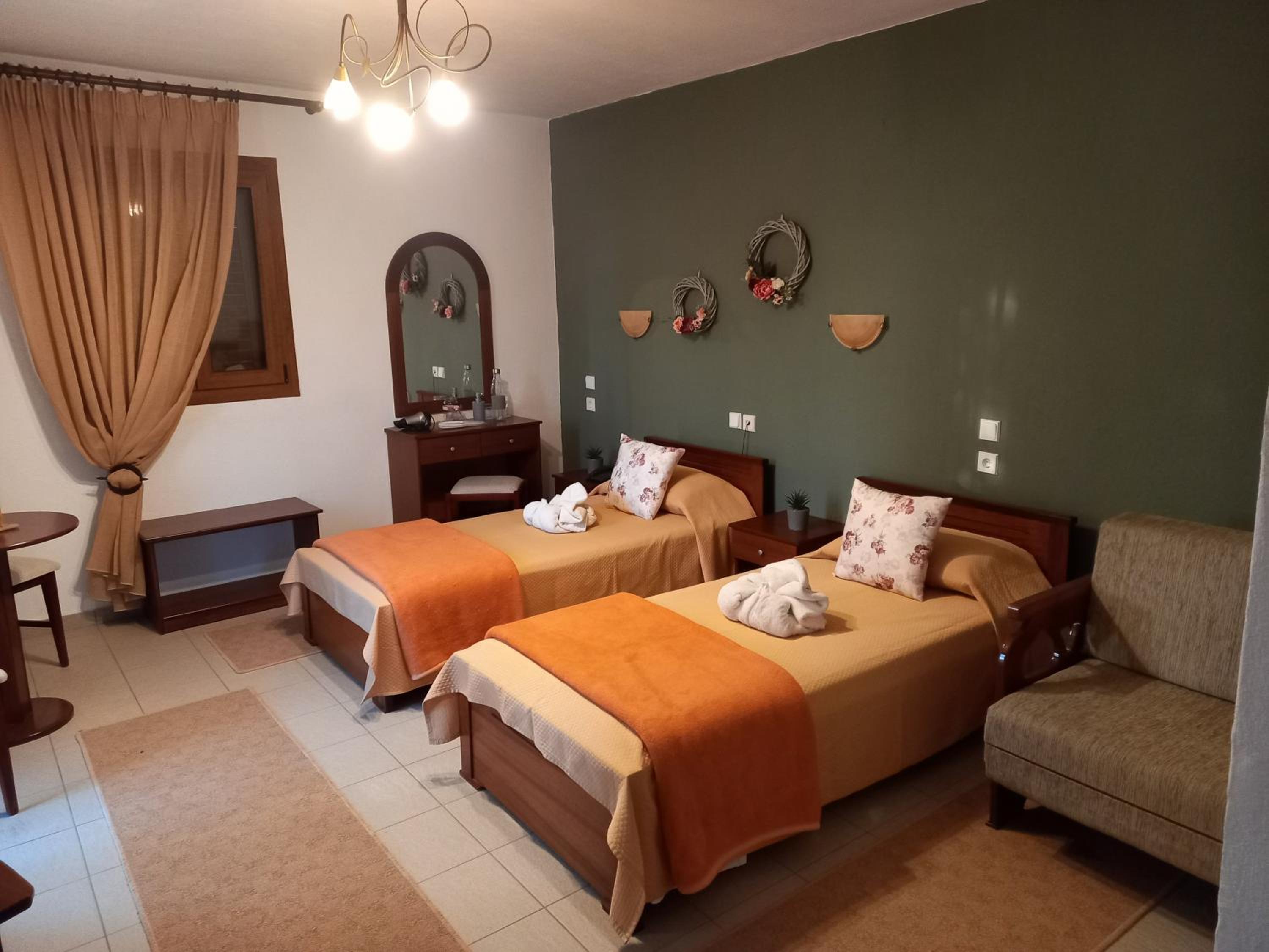 The rooms are clean and with a balcony. Comfy beds. Very friendly family staff and the best breakfast. A lovely little village where rural Greece is real, the villagers going about their lives and the food is good.