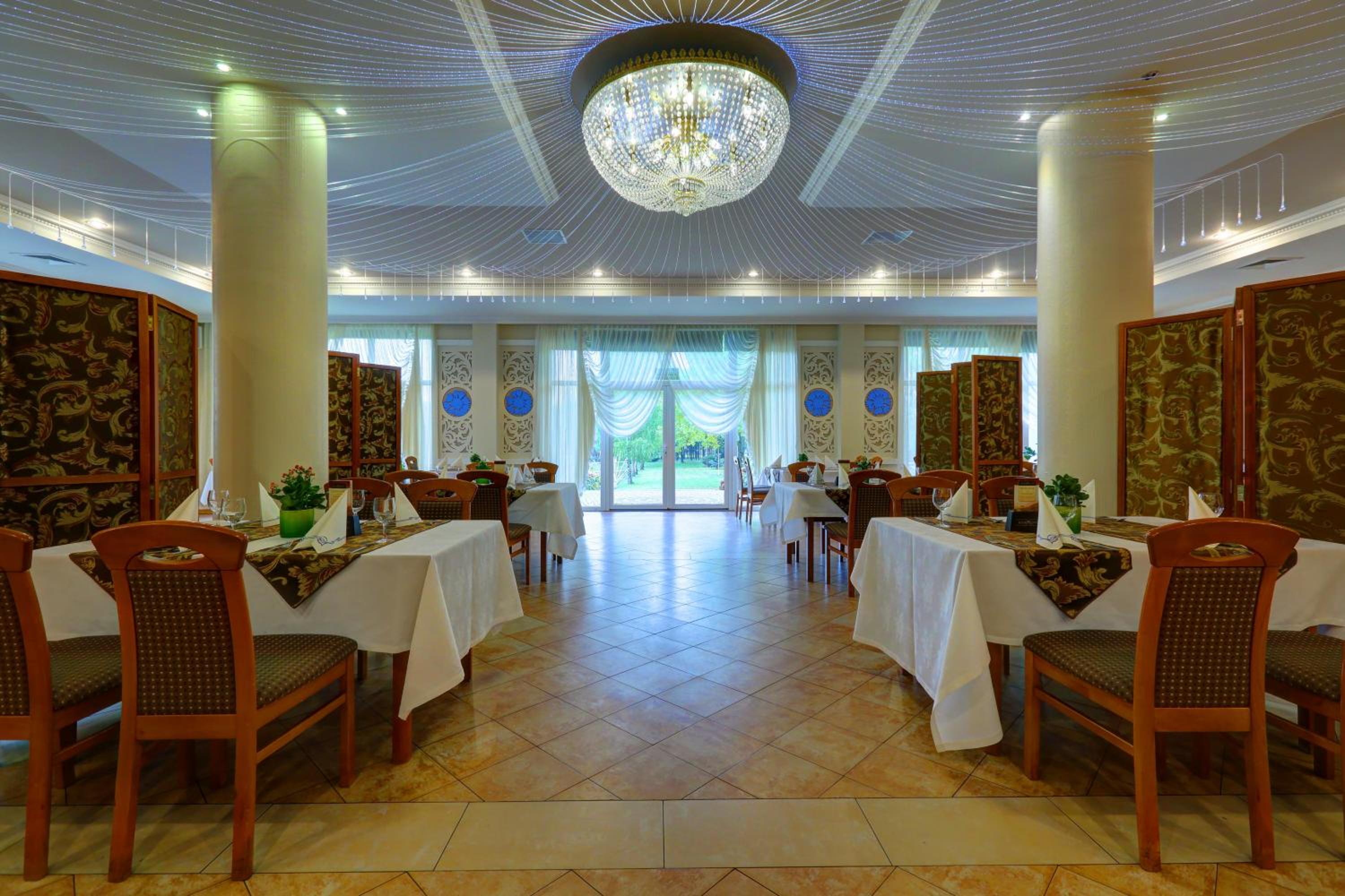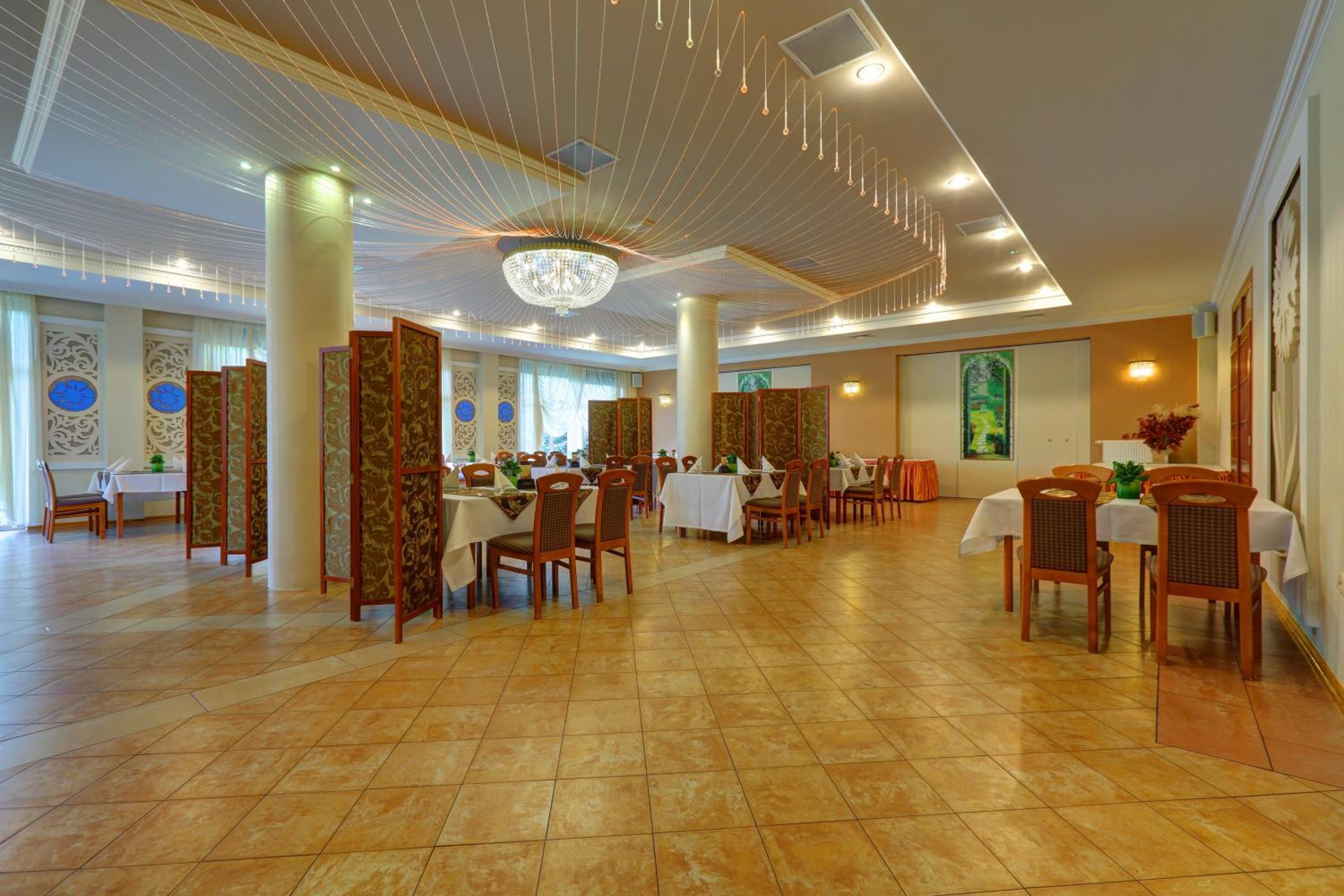Indulge in a culinary journey at Chabrowy Dworek’s Restaurant, where European and traditional Polish dishes are served. Experience feasts following rustic Polish traditions accompanied by live music from a band. For a more casual setting, guests can unwind at the on-site cocktail bar and enjoy a refreshing drink.
