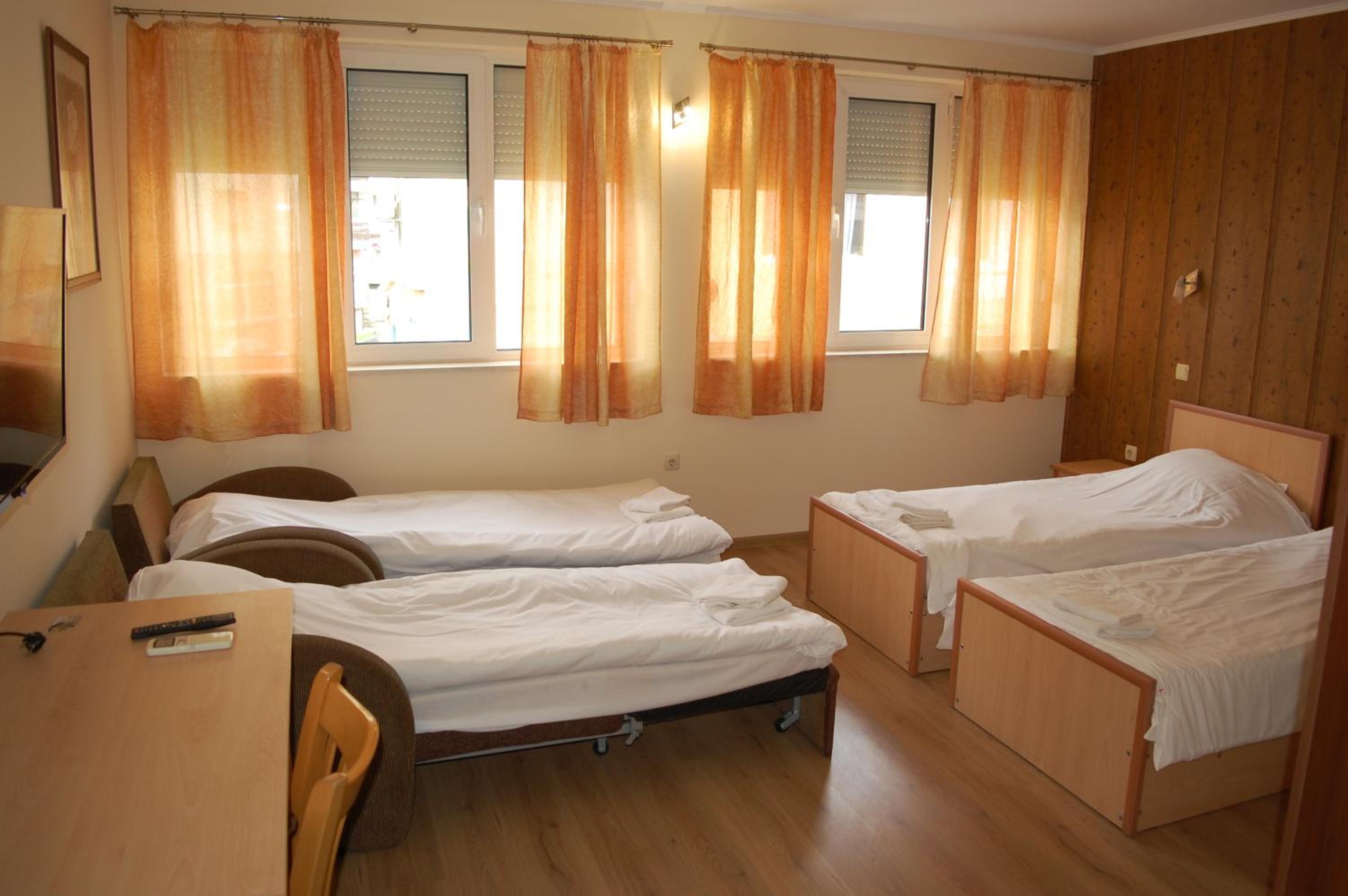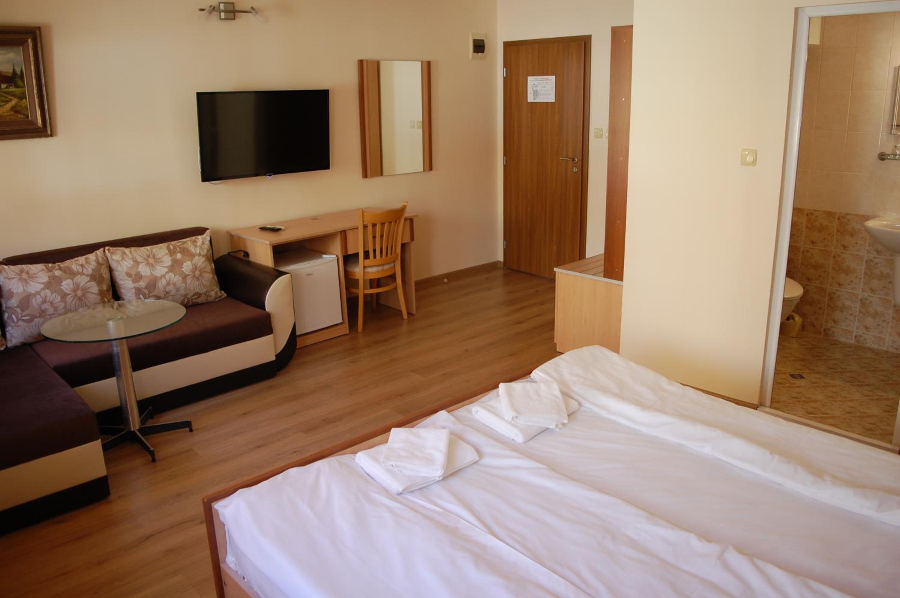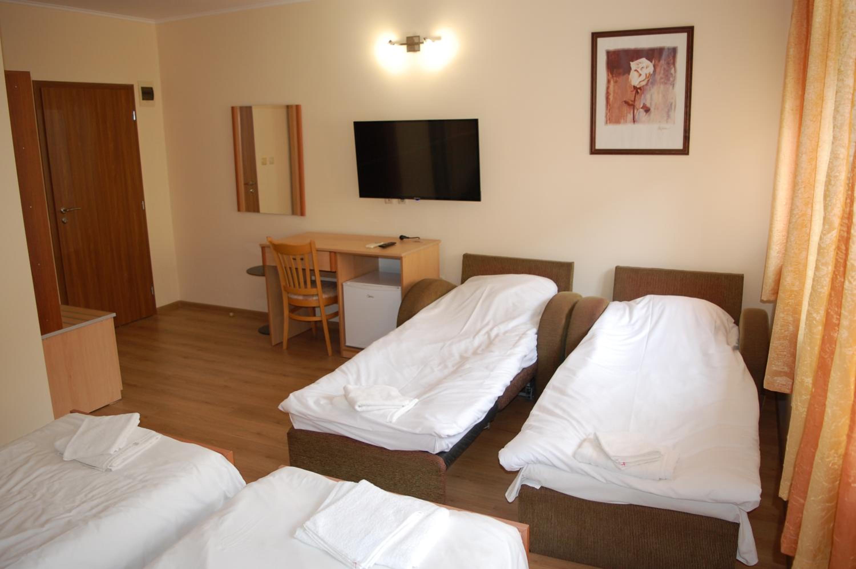Добра локация на хотела, безплатен паркинг, класическо хотелско обзавеждане в в стаята и банята, има оборудвана обща кухня с хладилник, общо помещение за вечеря/закуска. Става за 1-2 нощувки в Трявна.