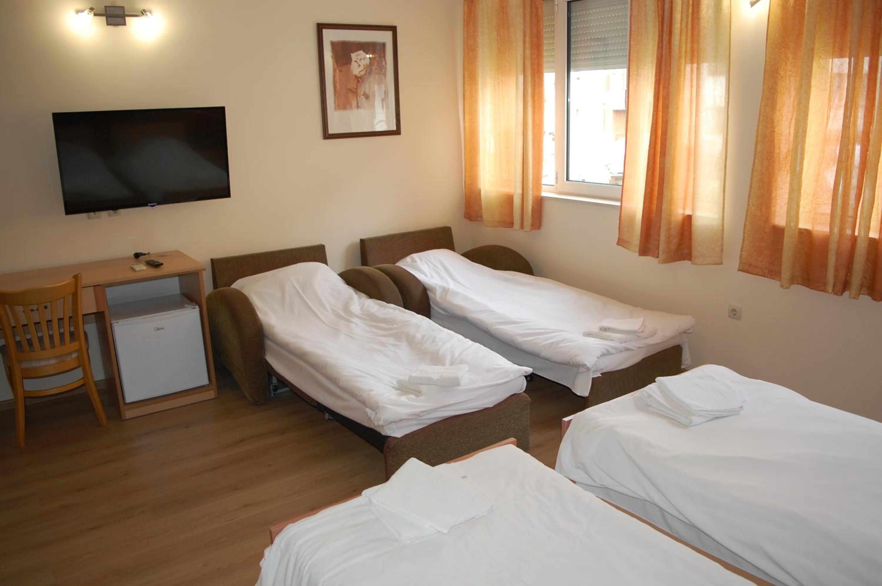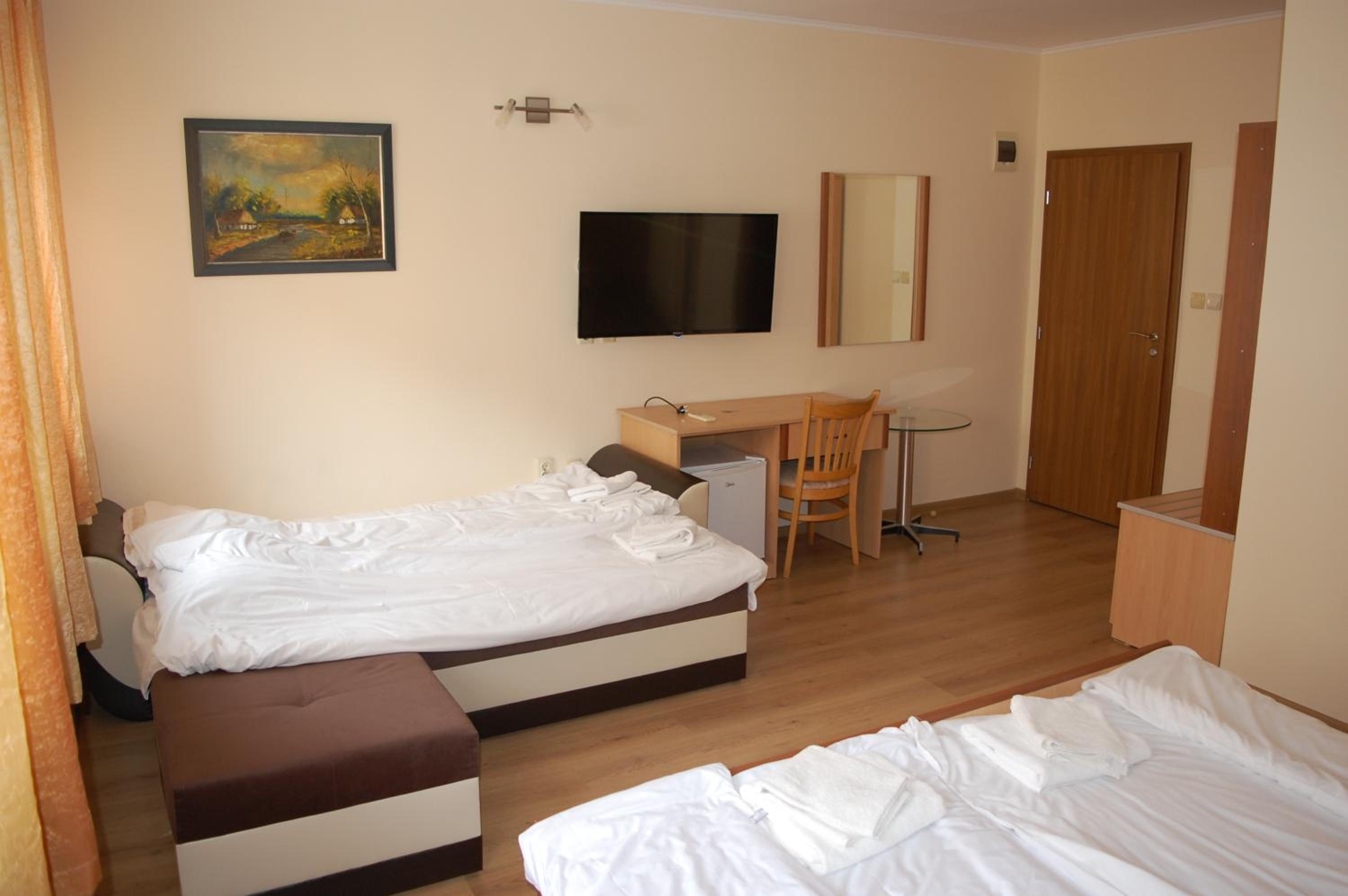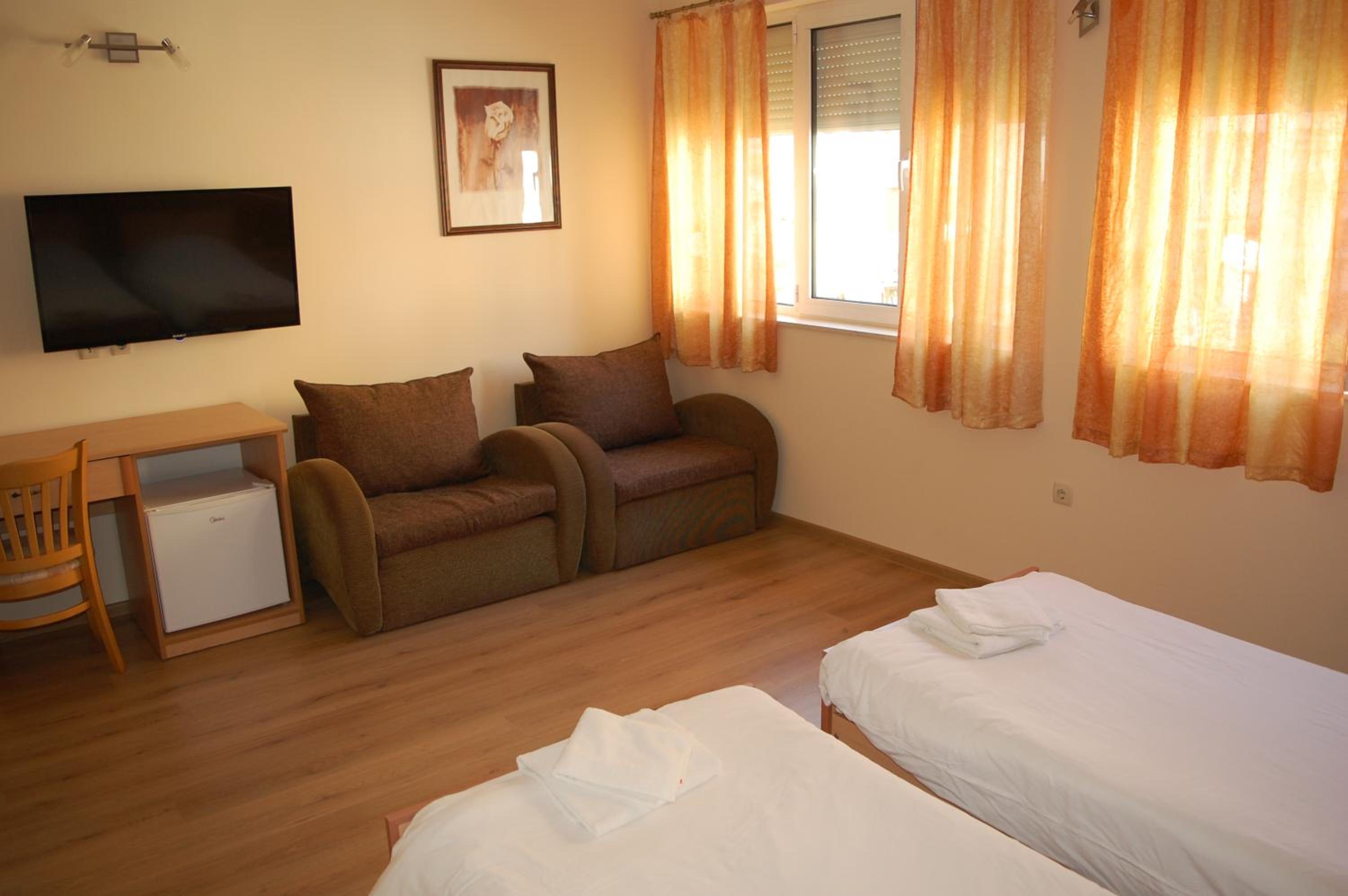 Добра локация на хотела, безплатен паркинг, класическо хотелско обзавеждане в в стаята и банята, има оборудвана обща кухня с хладилник, общо помещение за вечеря/закуска. Става за 1-2 нощувки в Трявна.