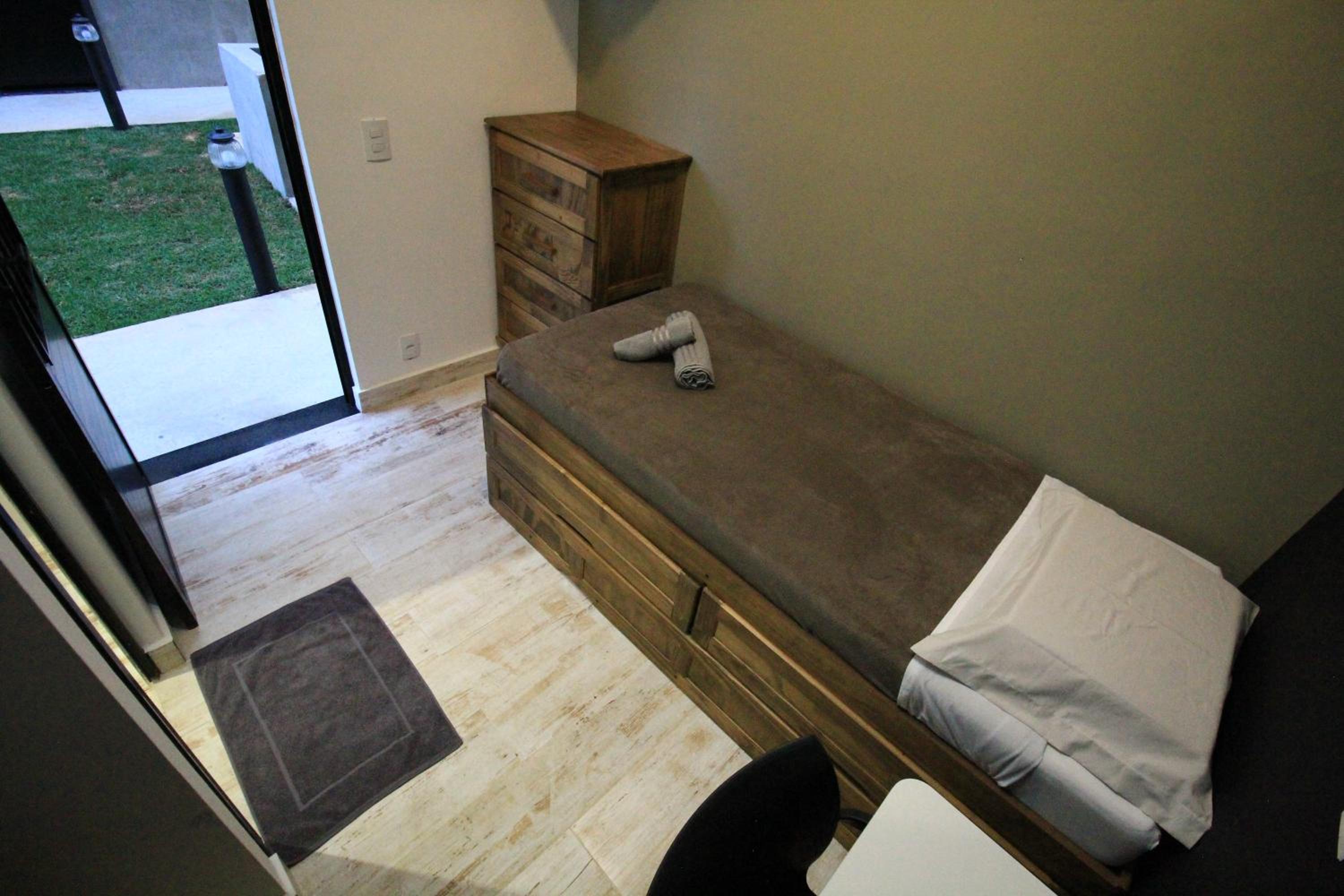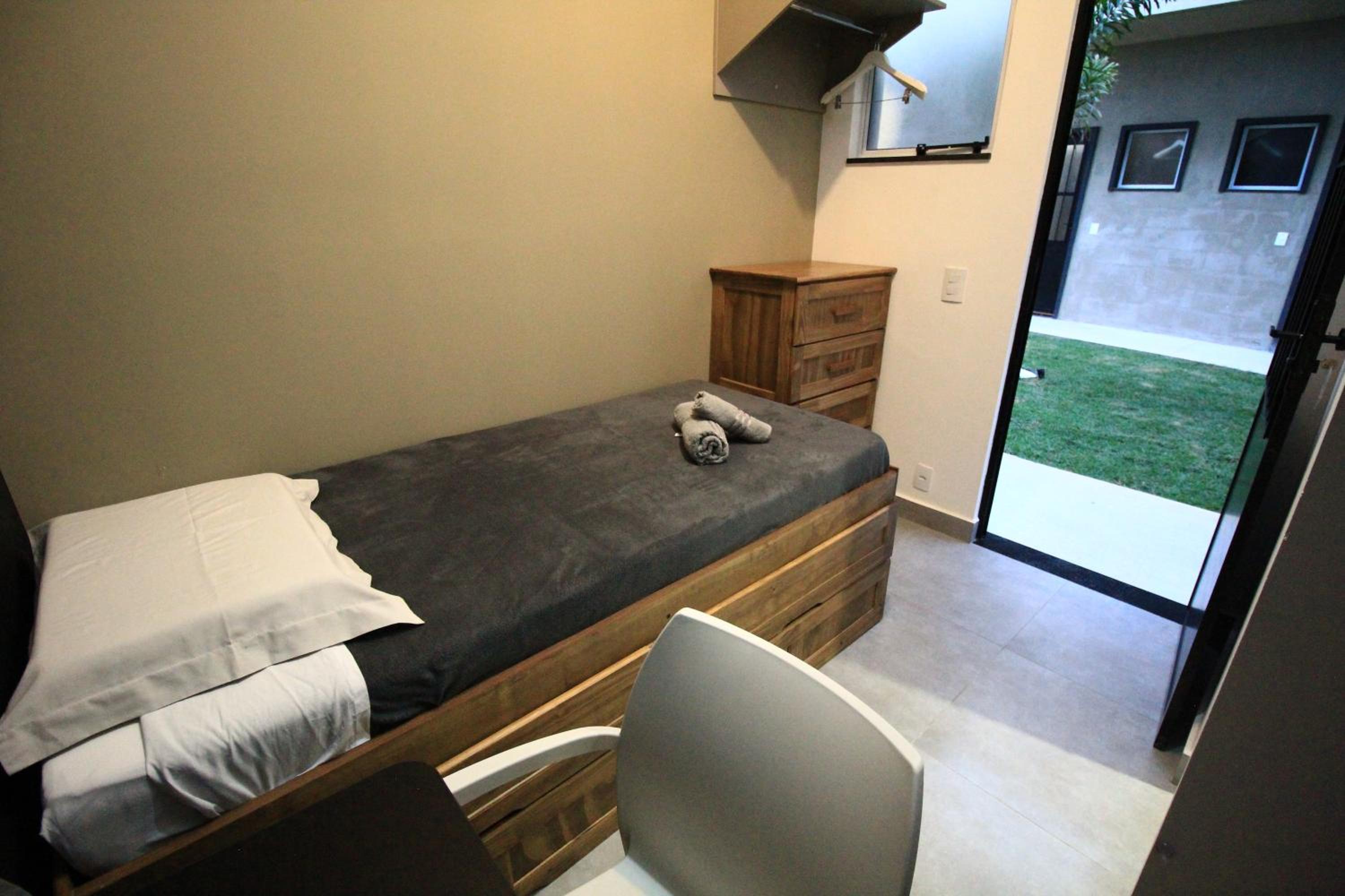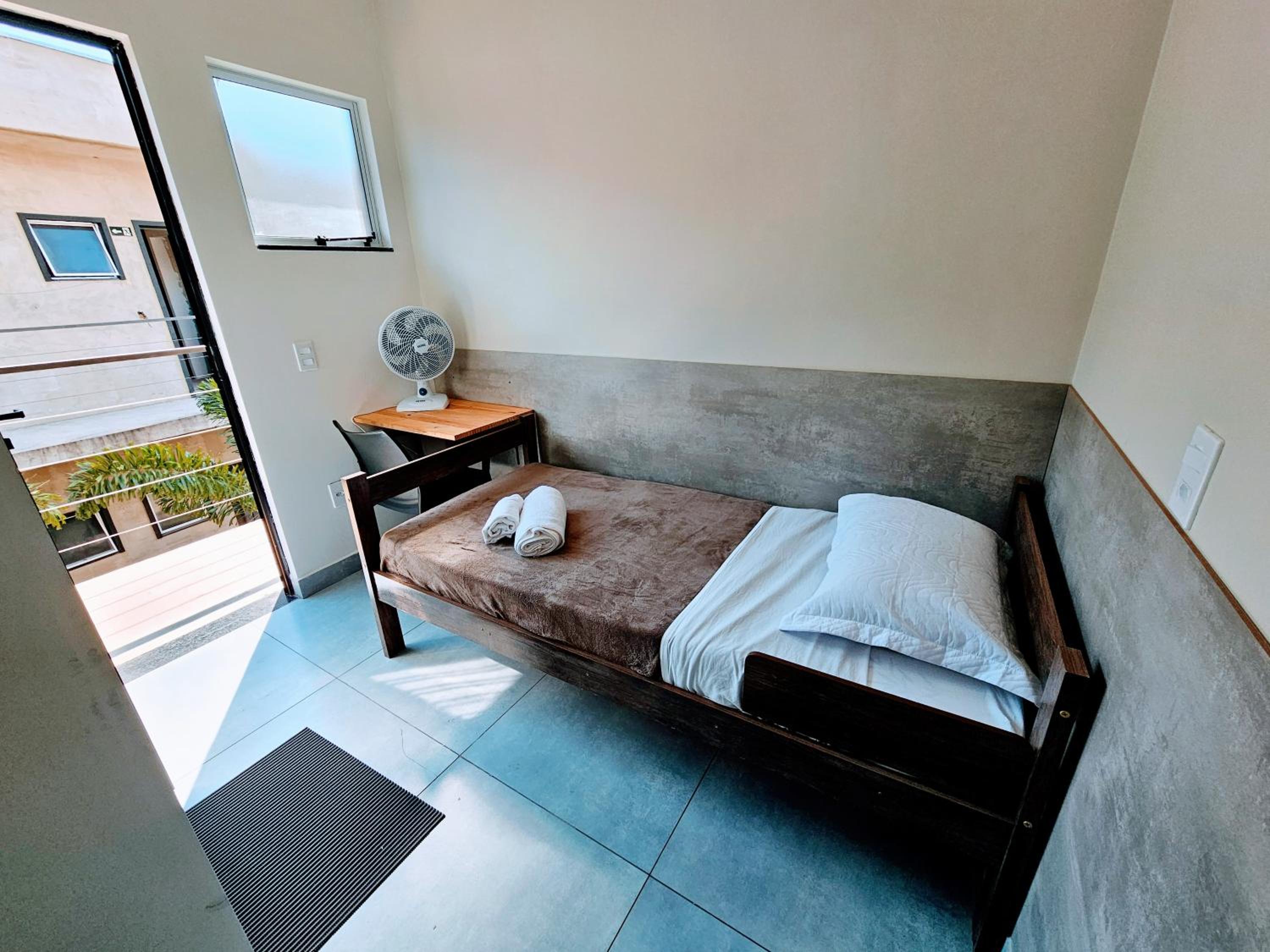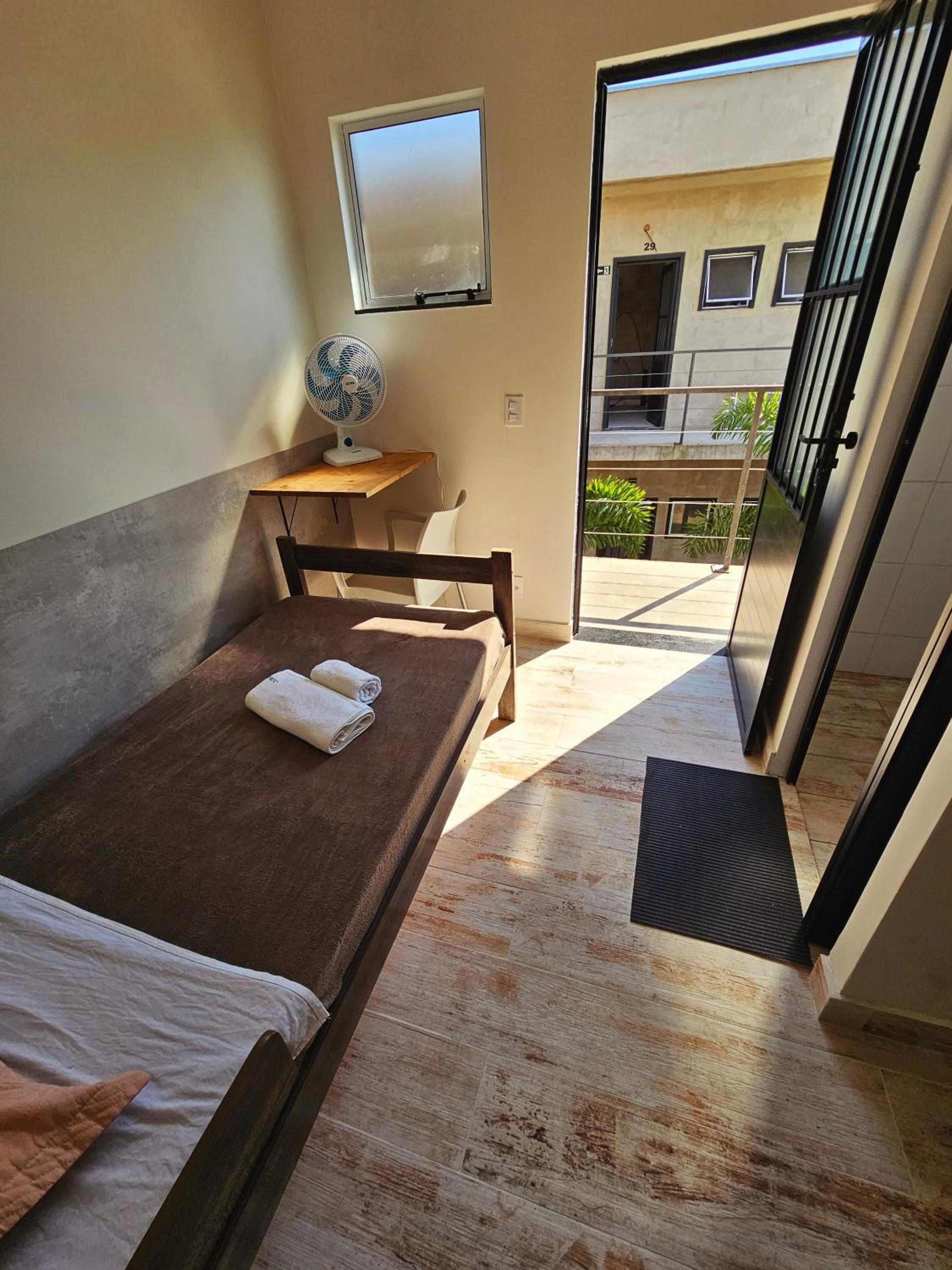 O quarto é muito pequeno, tem apenas um ventilador, se você deixar a mini janela do quarto aberto a pessoa que passa do lado de fora consegue te ver na cama, e além disso ouve-se tudo, por volta de meia noite tinha pessoas do lado de fora conversando alto e não conseguia dormir. O banheiro o lixinho não abria, e molha todo o quarto quando se toma banho.