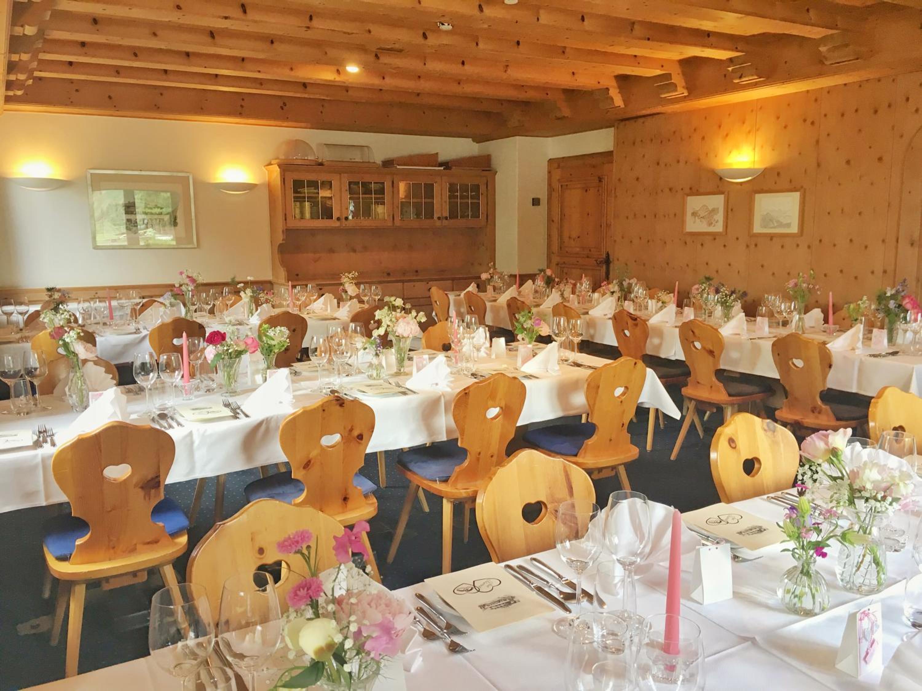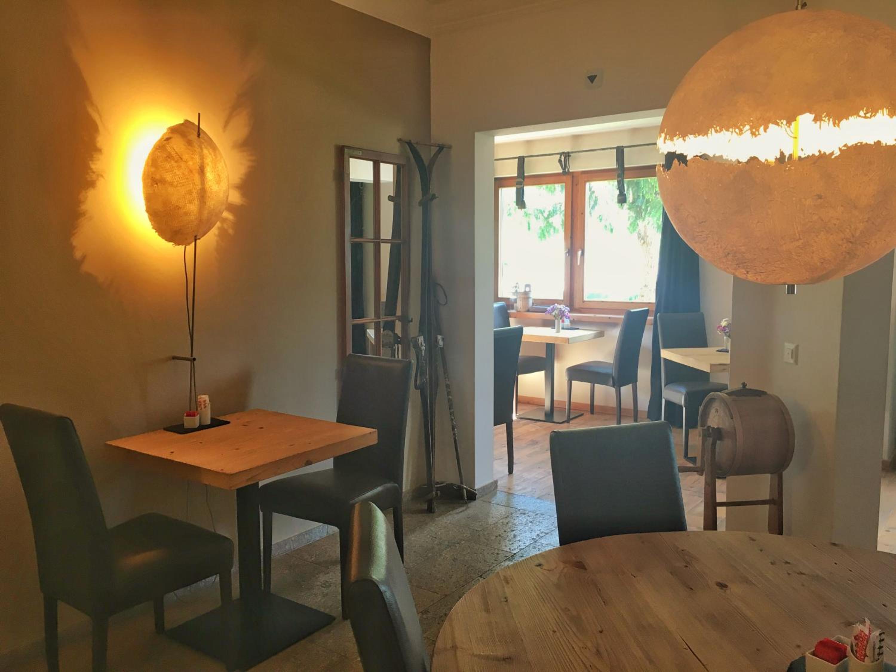 We had dinner in the restaurant. The meal was very good as were the staff. The room was a little small, but we were only there for one night, so it was fine. It was raining when we were there, so we did not get to enjoy the balcony. If it had not been raining, the balcony would have been a pleasant addition. Very close to the train station. We stayed here in order to catch the Glacier Express the next morning; one train stop away. Saved money on the hotel night, St. Moritz vs. Celerina.