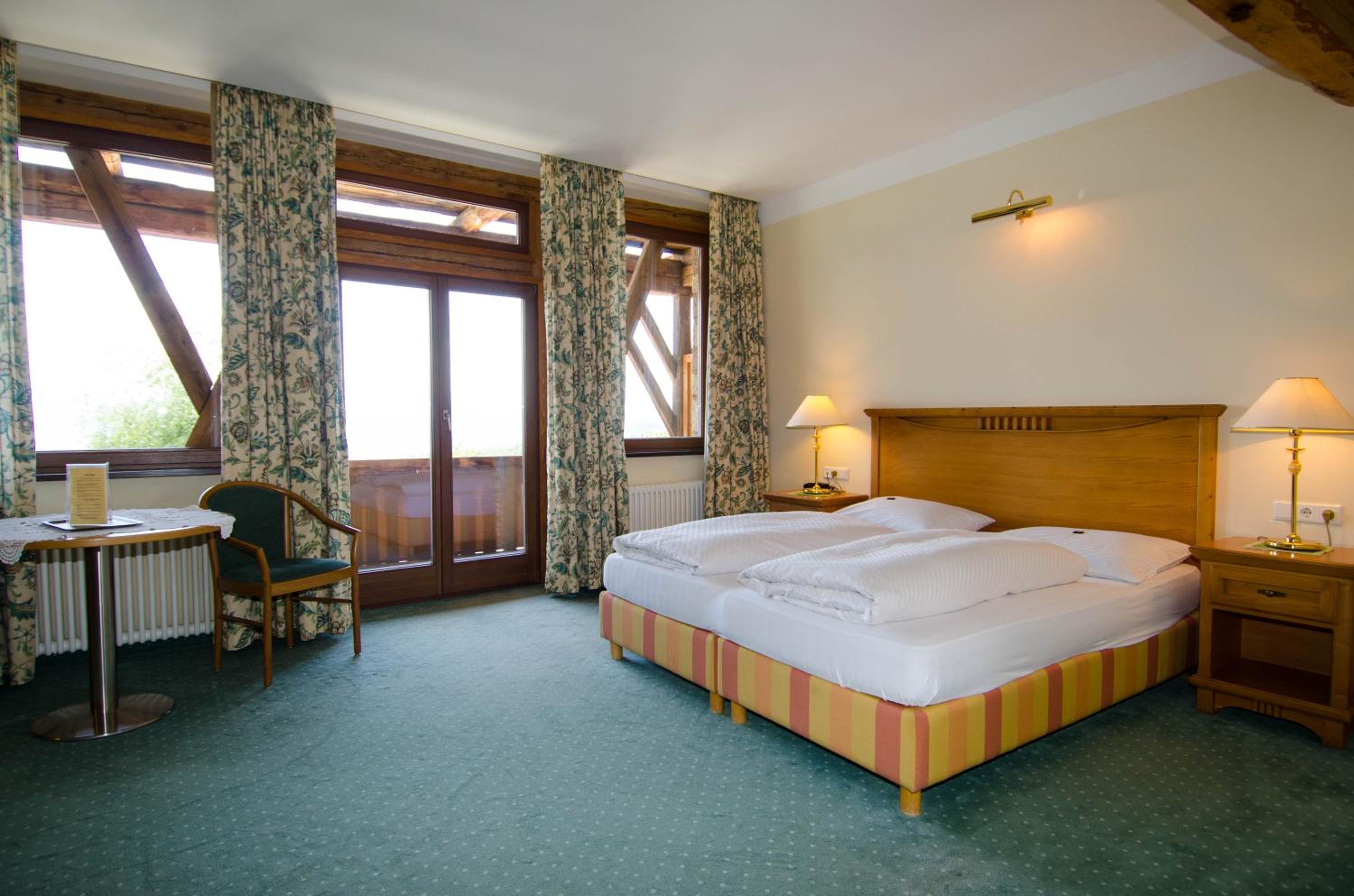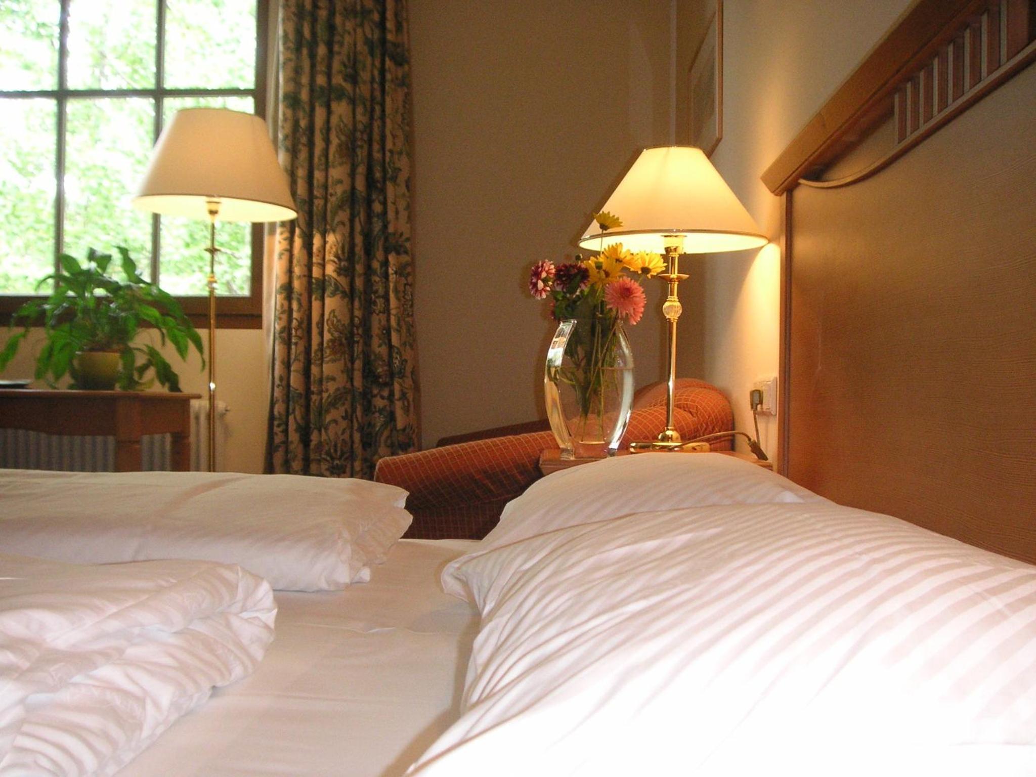 Mein Einzelzimmer im Erdgeschoss war relativ hochpreisig und mit sehr kurzem Bett für große Menschen (ich bin 1,91m)