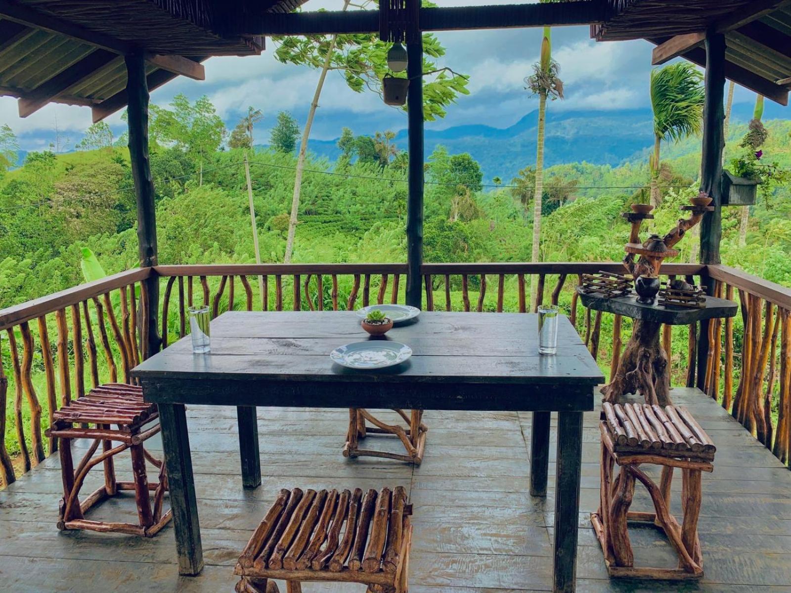 Amazing view from the balcony over the tea plantation and mountains, constant sounds from birds and the waterfall/river, seeing peacocks and fireflies. Great breakfast. If rainy it's a bit tricky driving scooter here cause of the gravel roads close to the place. If you look for a calm, beautiful place with glamping style hut (very clean) this is the place and it's worth the drive here! Important: tap in "Misty Mountain-Deniyaya" NOT "misty Mountain Sinharaja" in maps, or it will show you the wrong road!