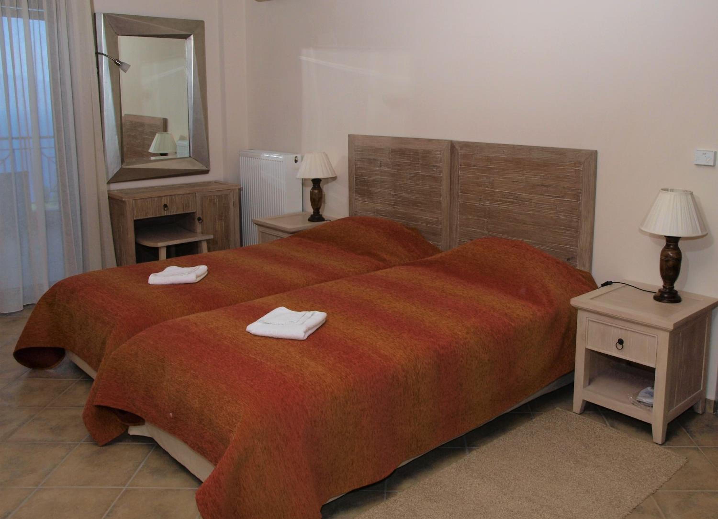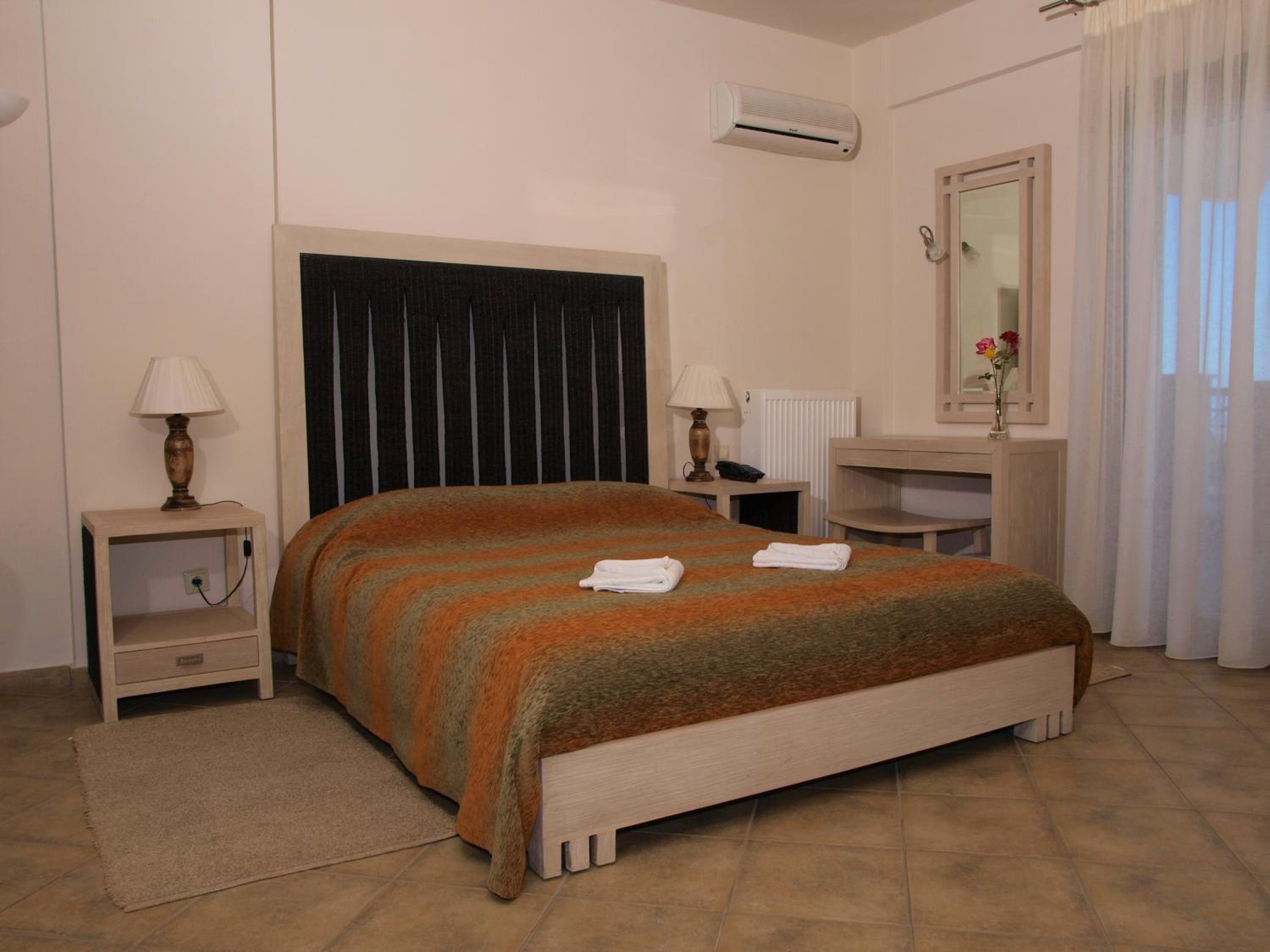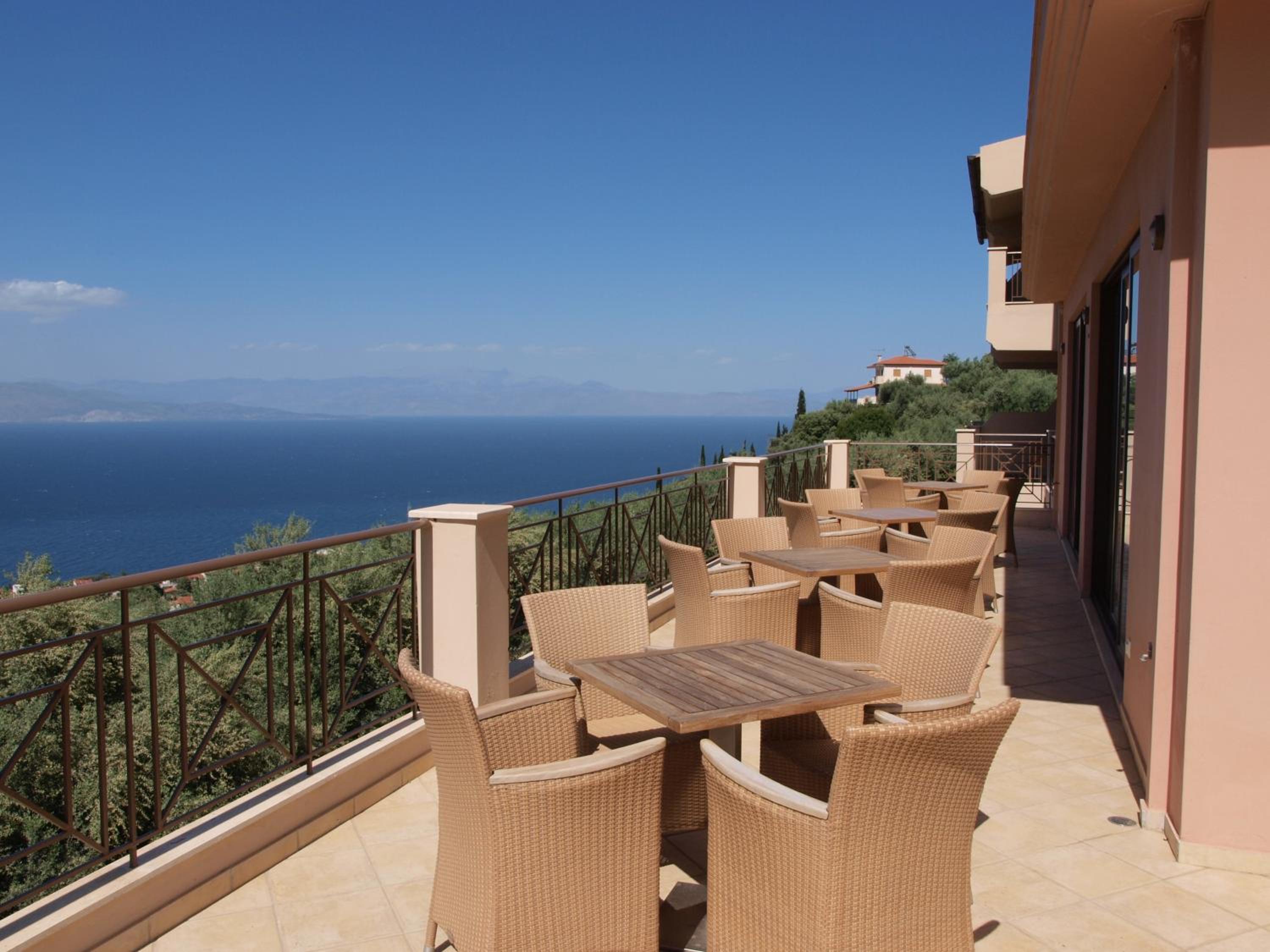 The Theasi hotel is beautifully situated in the hills surrounded by olive groves and with extensive views across the whole of the gulf of Corinth. Every room is generous in size and has a large balcony to sit and soak in the scenery. The bed was large and comfortable, shower hot and AC worked well though was a bit noisy even on low settings (bring ear plugs). When i visited off season i was the only guest yet breakfast was set out fully and the staff/owner could not be more helpful. The free drink on arrival was a nice touch. If you like the idea of a peaceful night with just great views this is for you.