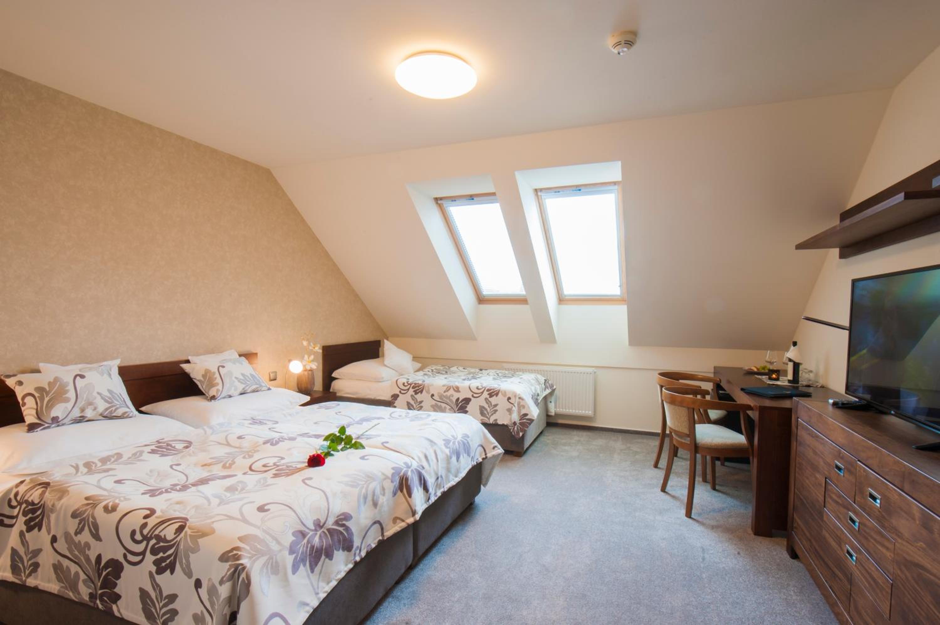 Krásné ubytování kousek od zámku, útulné prostředí celého hotýlku, možnost parkování, velmi ochotný personál a skvělá snídaně. A za toto všechno velmi příjemná cena.