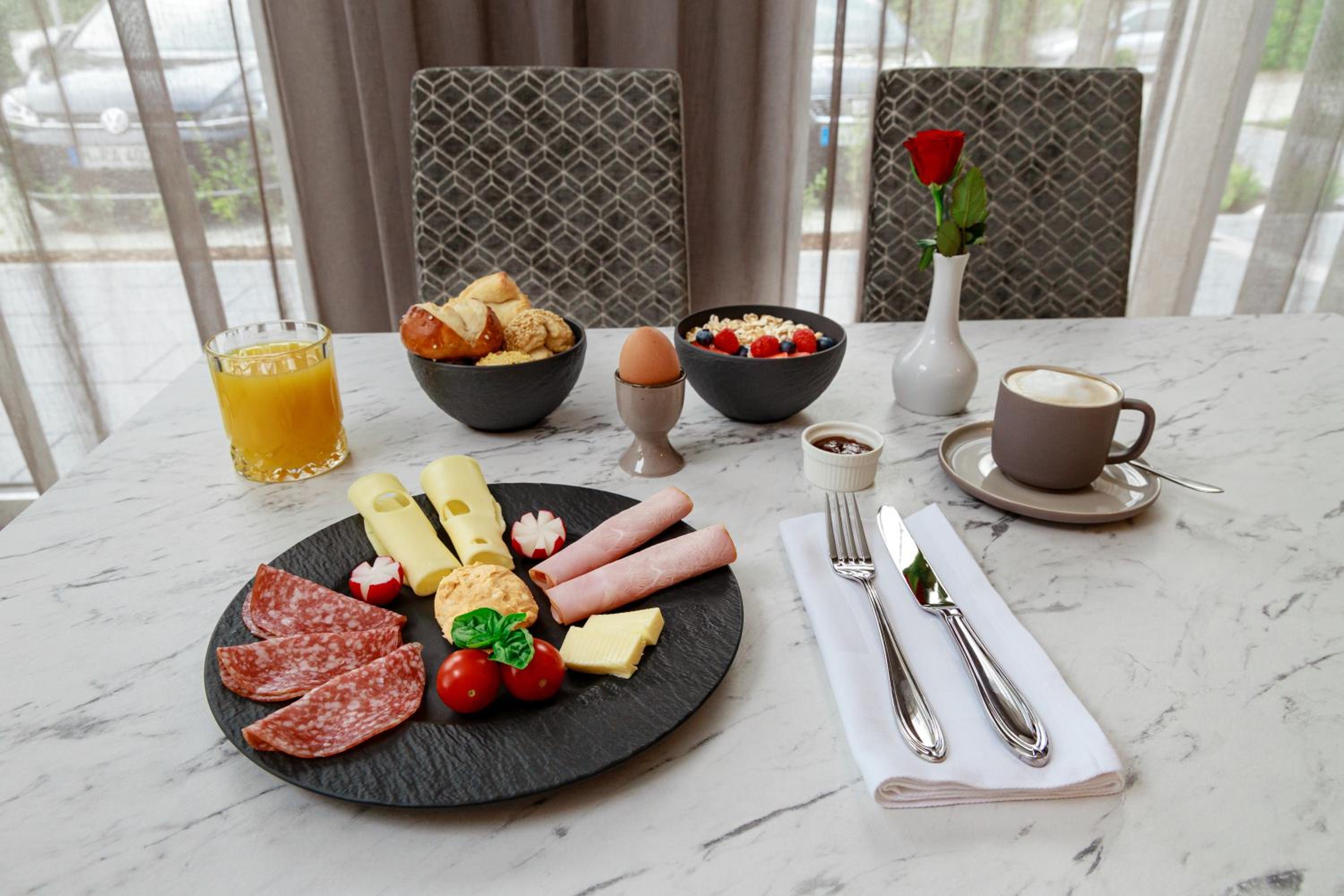 For outdoor enthusiasts, the hotel offers opportunities for hiking and cycling in the picturesque surroundings of Forstern. After a day of exploration, guests can unwind on the terrace or indulge in a delicious breakfast with various options available.