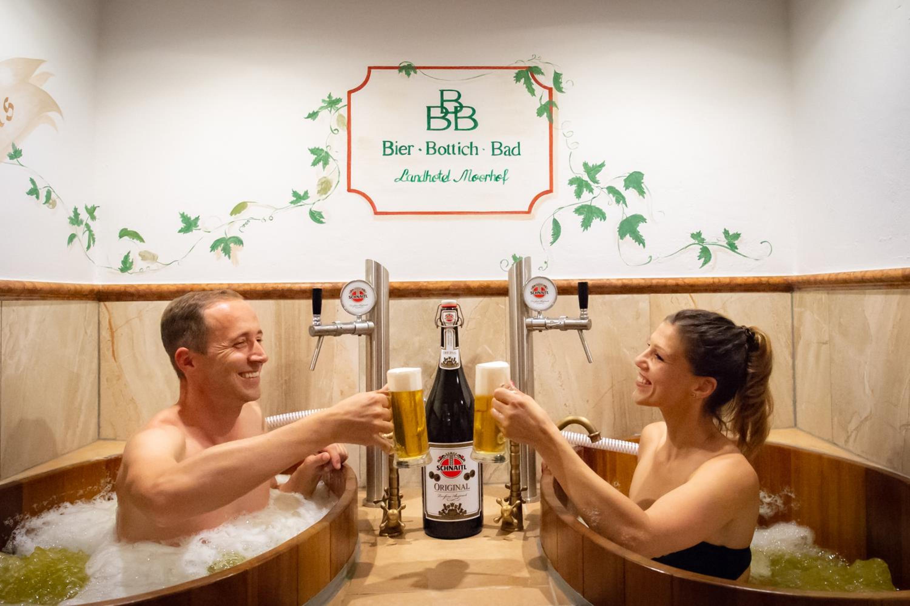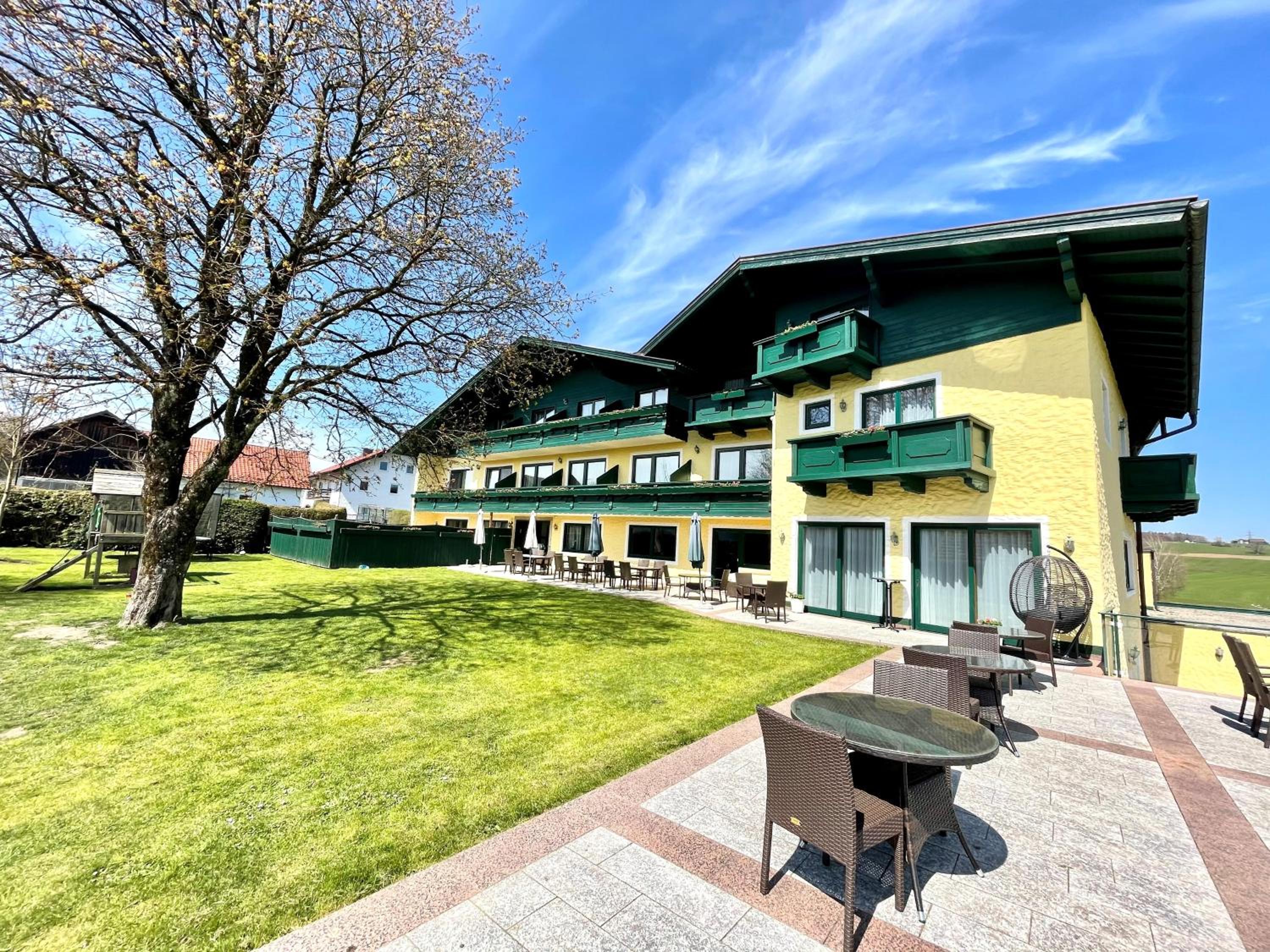 Guests can pamper themselves with massages, beer baths, and even oldtimer tractor rides for a unique experience. For golf enthusiasts, the Innviertel Golfclub is nearby, while the charming city of Salzburg is just a short distance away.