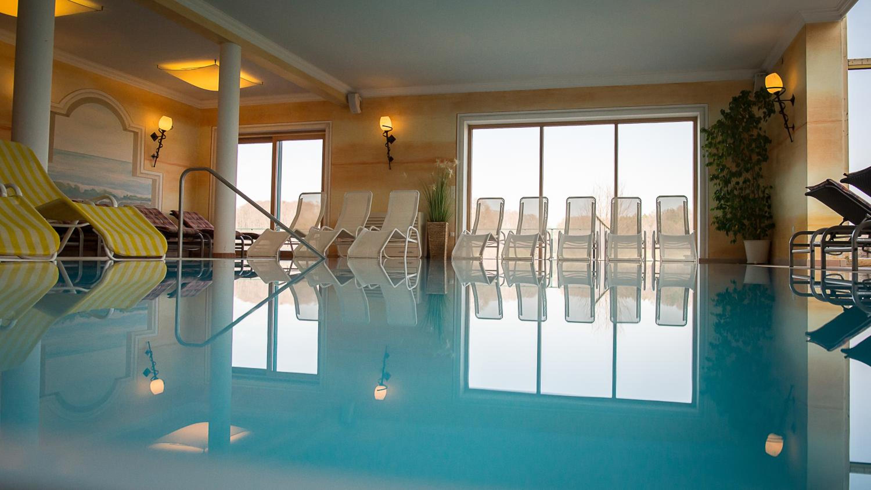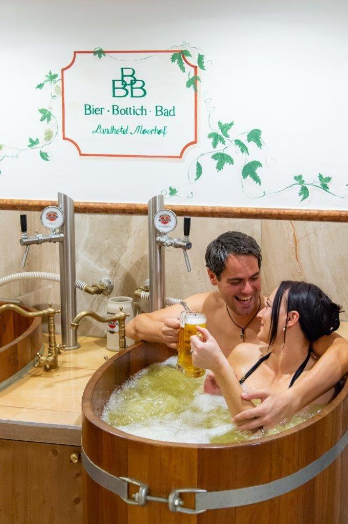 Landhotel Moorhof offers a range of luxurious amenities including a sauna, steam bath, tanning booth, infrared cabin, and an indoor swimming pool for guests to unwind and relax during their stay.