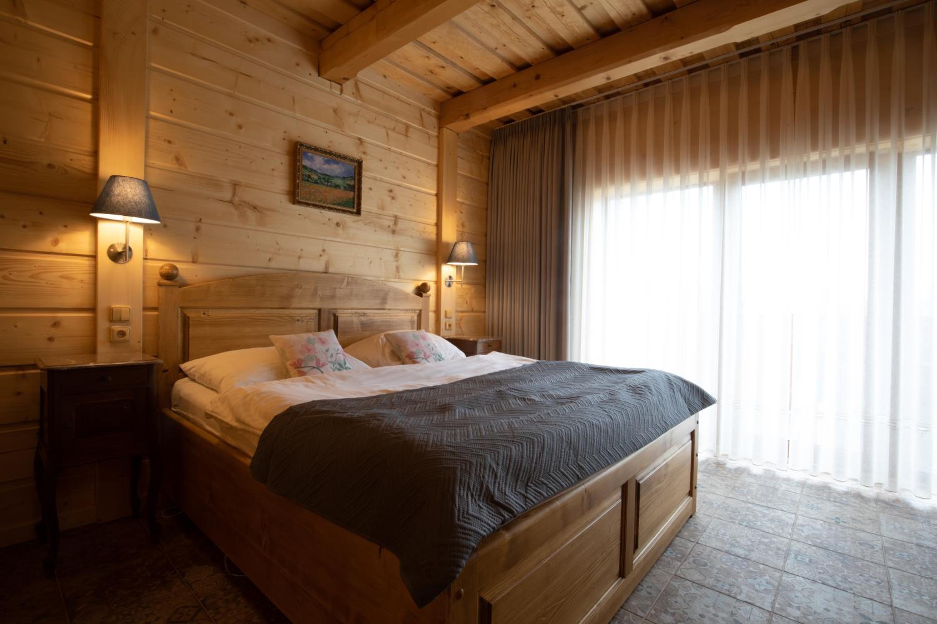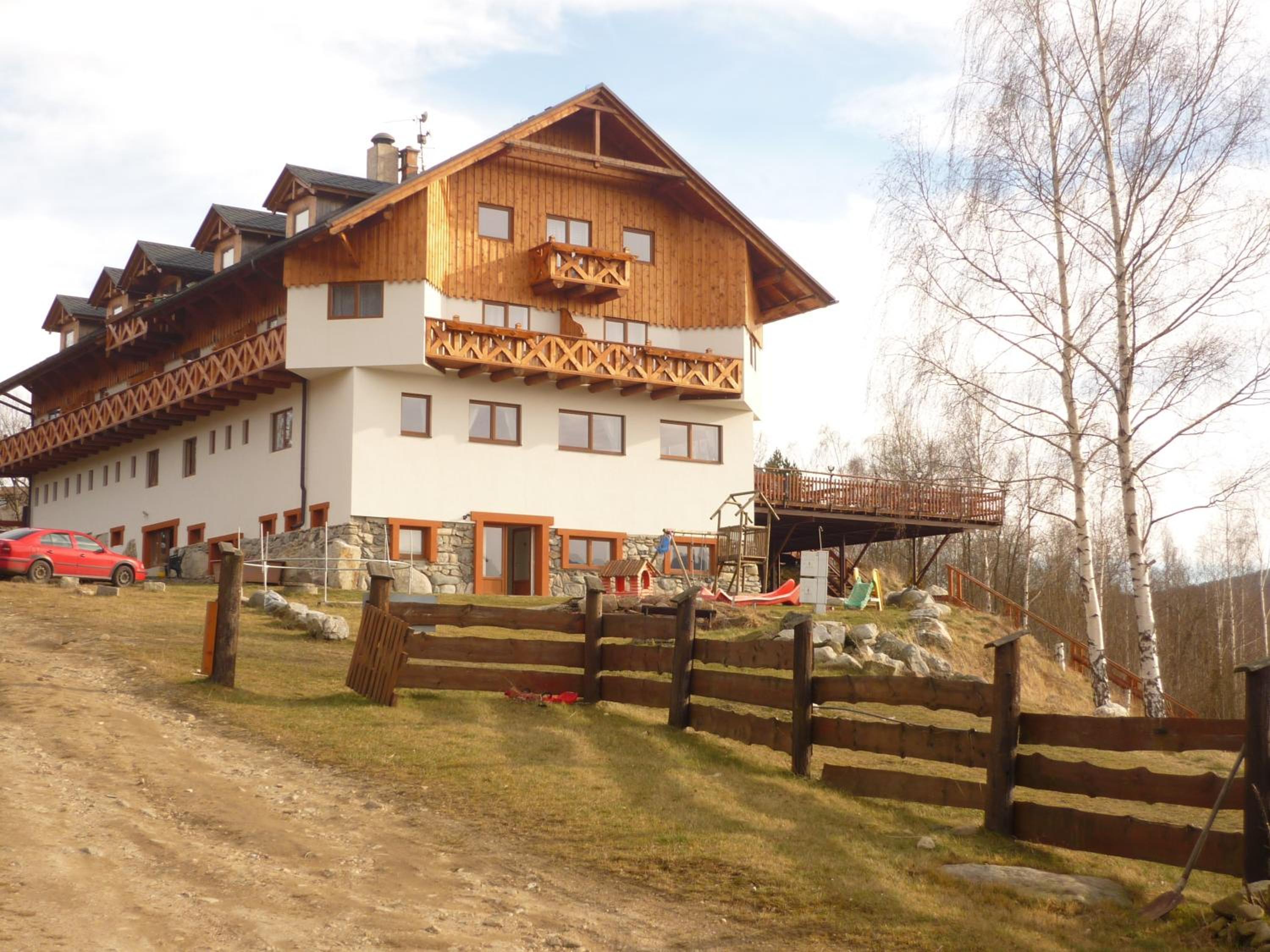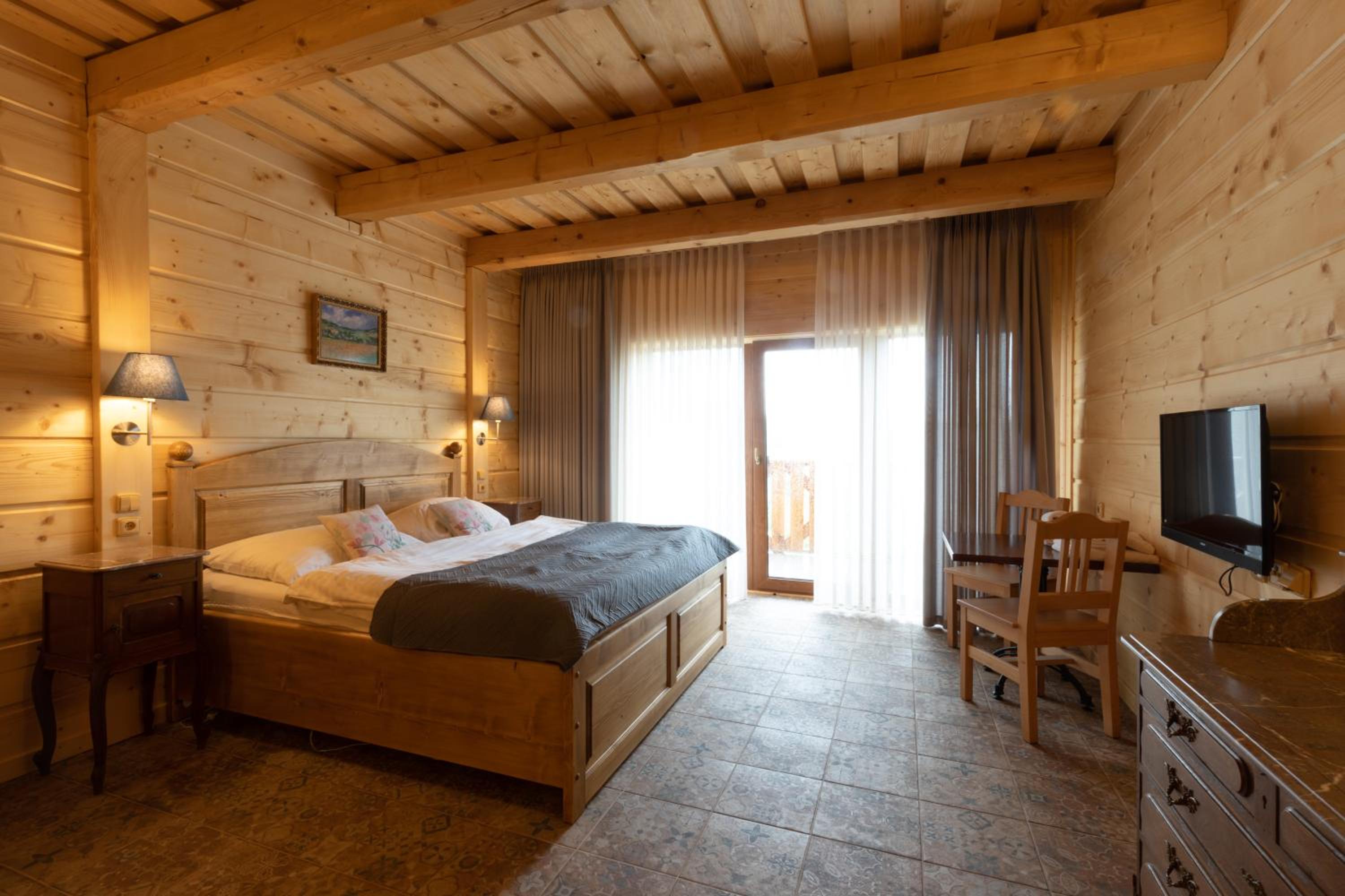 Scenic Views and Rustic Charm: Rezidence u Jezera offers rooms with balconies showcasing picturesque landscapes, rustic décor, and modern amenities including satellite TV and spa baths in some units.