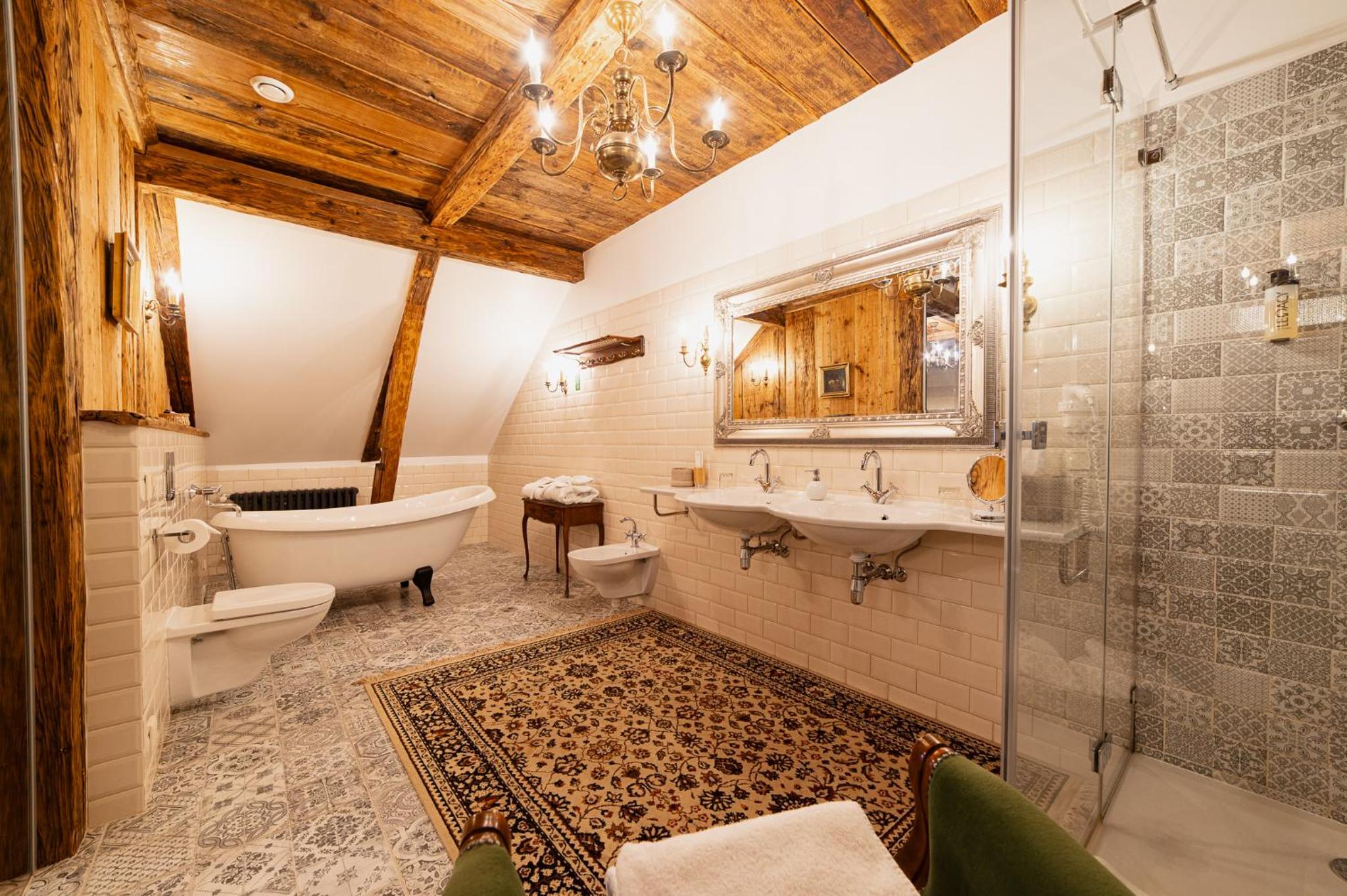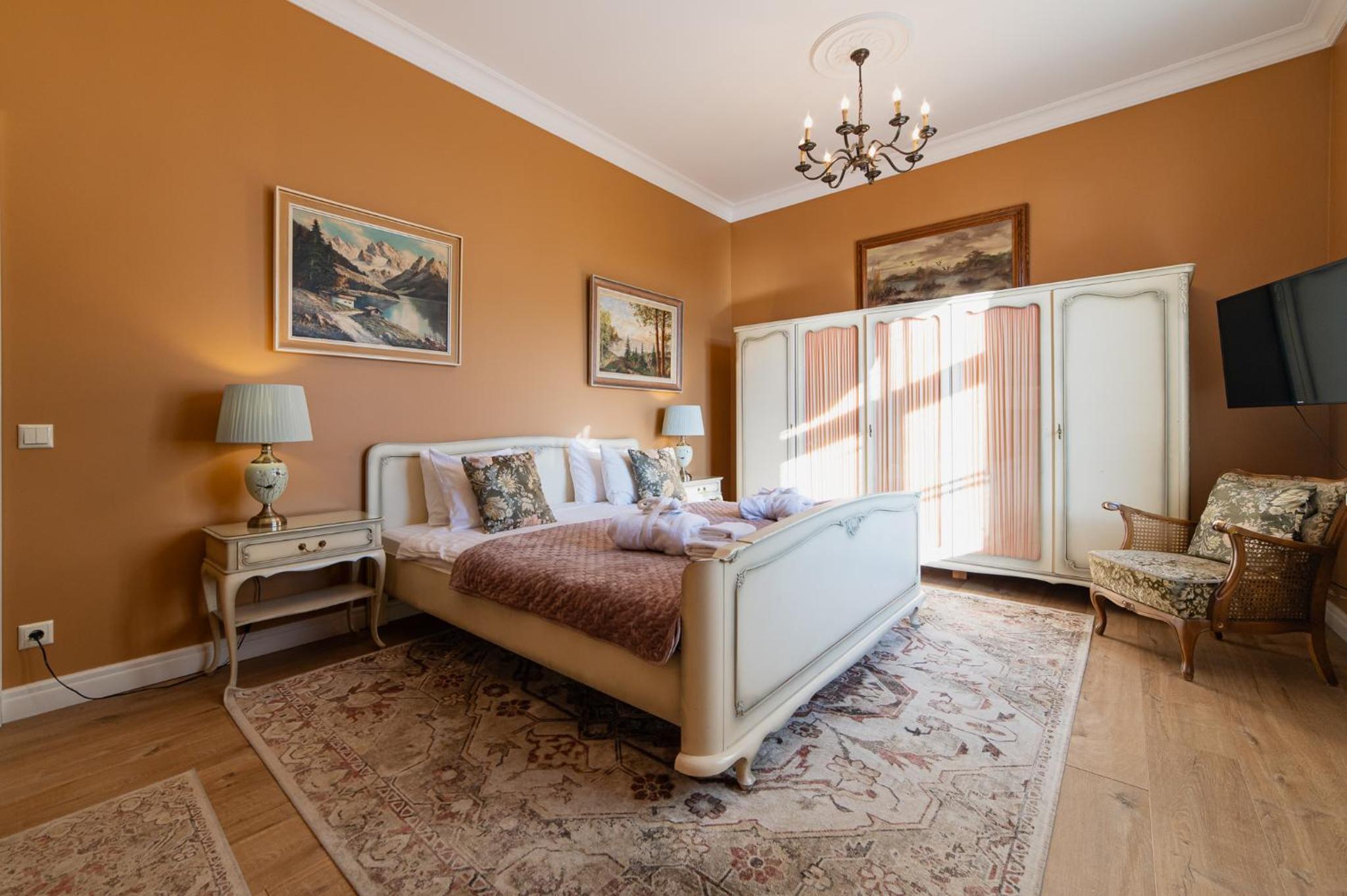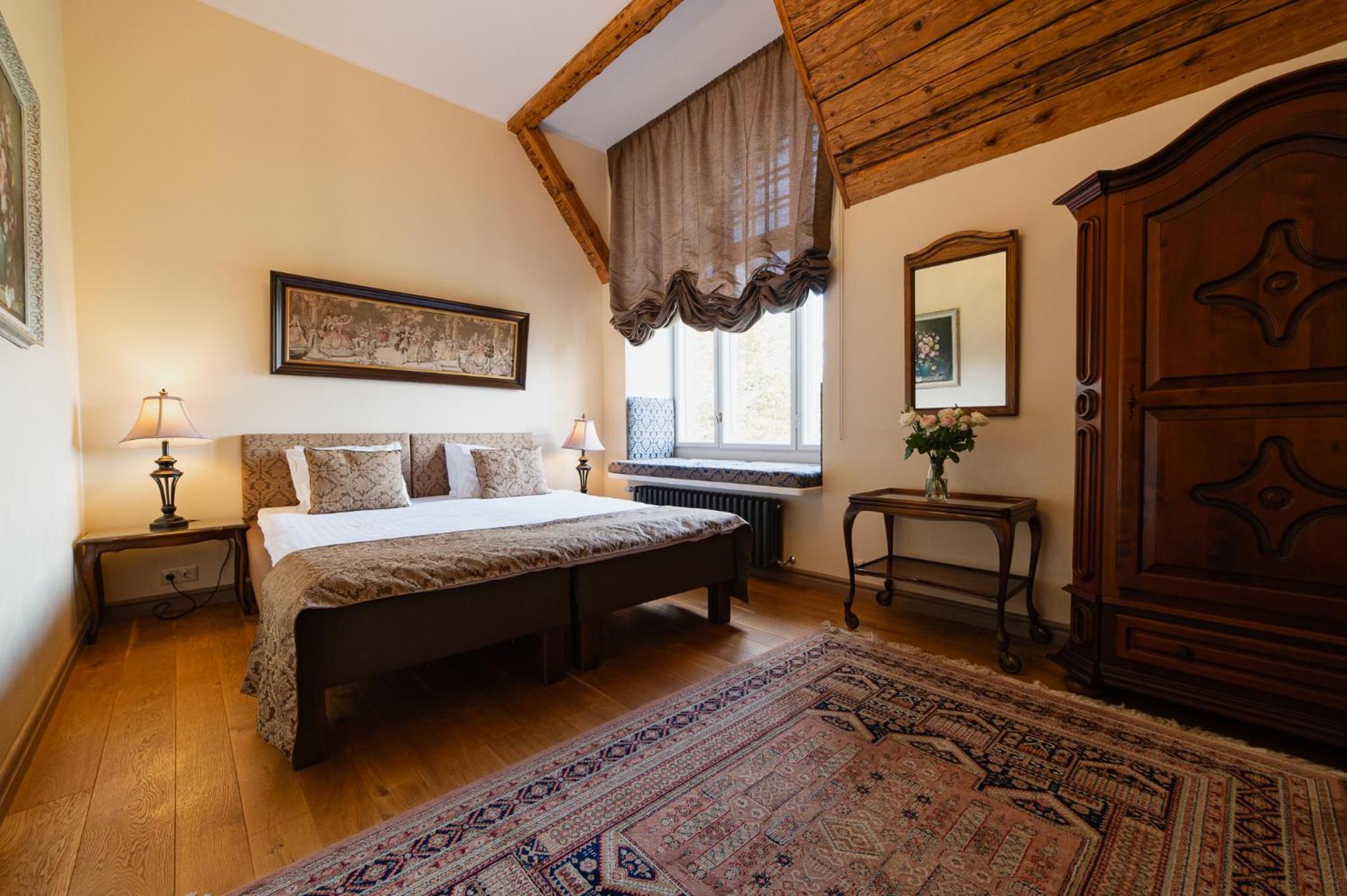 Nicely restored and decorated historical manor in a small park out of the center, with free parking, possibility to charge electric car (one 22 kW AC spot) and rich breakfast. Overall very good option to stay in this beautiful town.