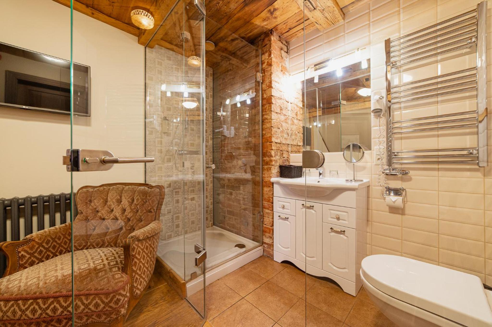 A couple of things to keep in mind: the hotel is a bit farther from the historic center, though still within comfortable walking distance. Our room was also rather dimly lit, with just one small window. The bathroom has a glass door - I understand this likely helps make the space feel larger and brings in light from the bathroom window, but it doesn’t provide much sound or smell insulation, which may feel a bit awkward even for couples.