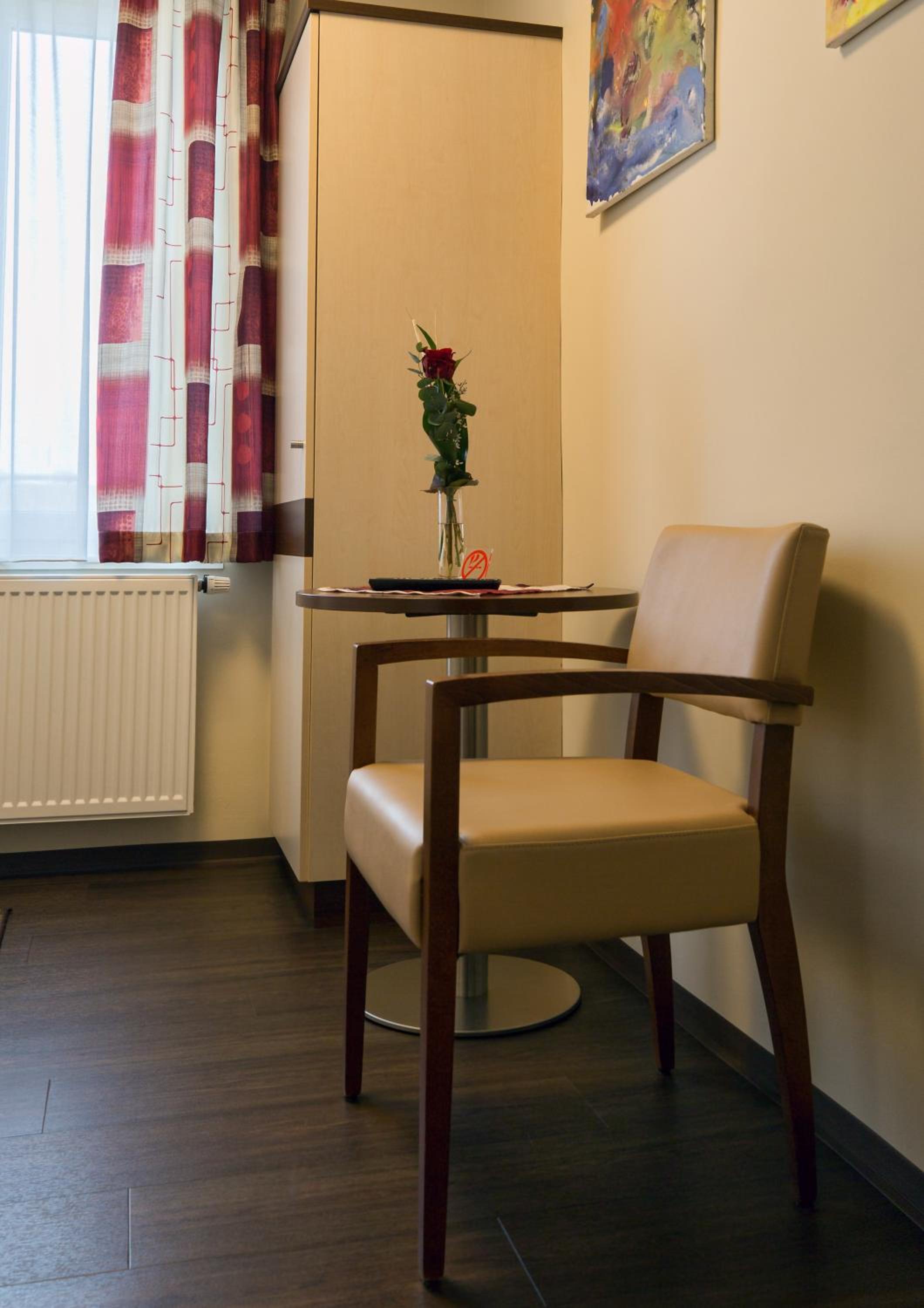 Leider fehlt im Zimmer ein kleiner Kühlschrank für mitgebrachte und zu kühlende Medikamente, ggf. sollte hier eine Nachrüstung ("Minibar") geprüft werden um auch zu kühlende Medikamente erreichbar zu lagern
