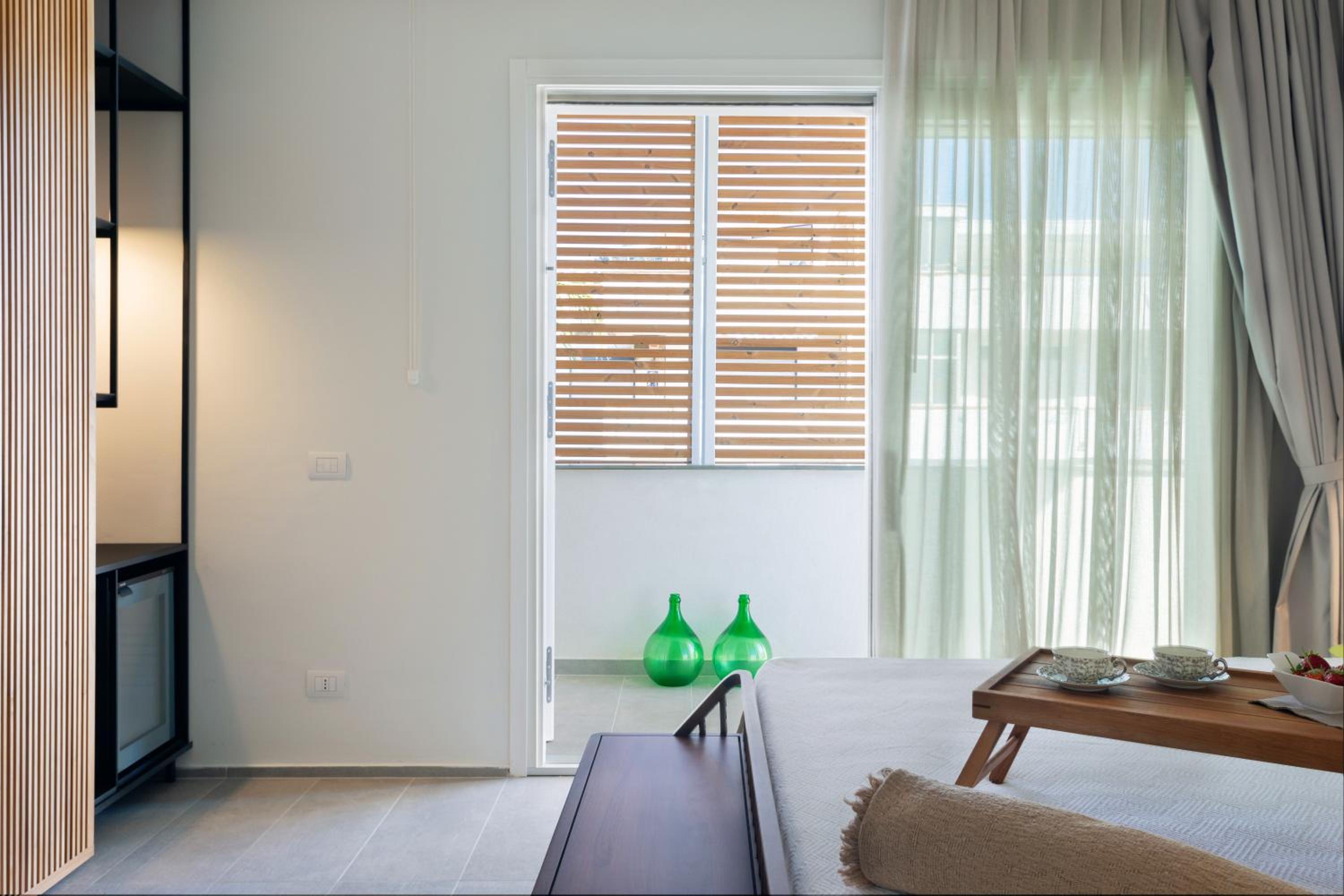 Domìa Boutique Hotel e Cucina offers air-conditioned rooms with modern amenities including a flat-screen TV, minibar, and private bathroom. Guests can enjoy garden views and relax in comfort during their stay.