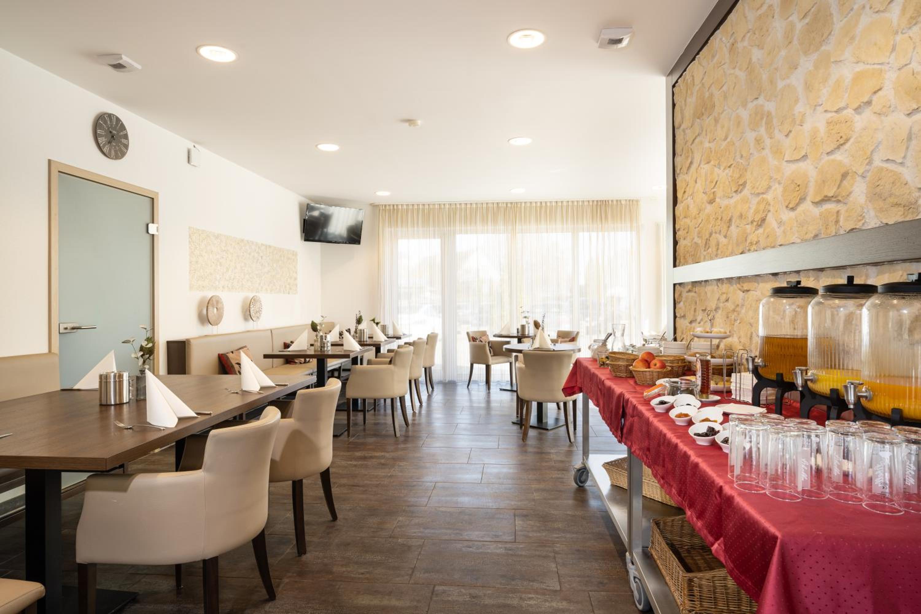 Start your day right with a buffet breakfast at Hotel Drei Rosen, where you can choose from continental or vegetarian options. The on-site restaurant ensures you have satisfying meals throughout your stay.