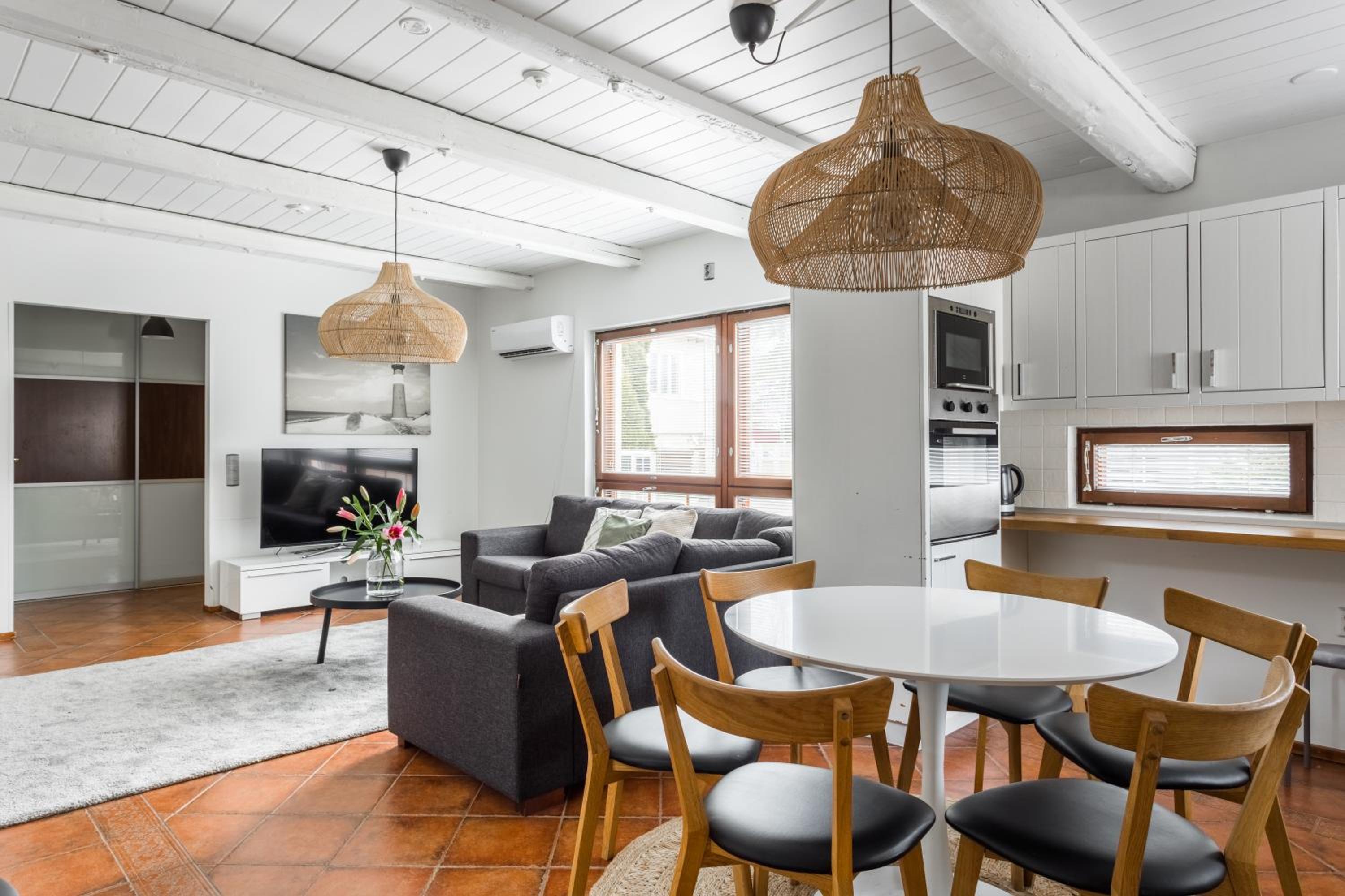 Tunnelmallinen ja kodikas, rauhallinen vaikka sijaitsee keskustassa.