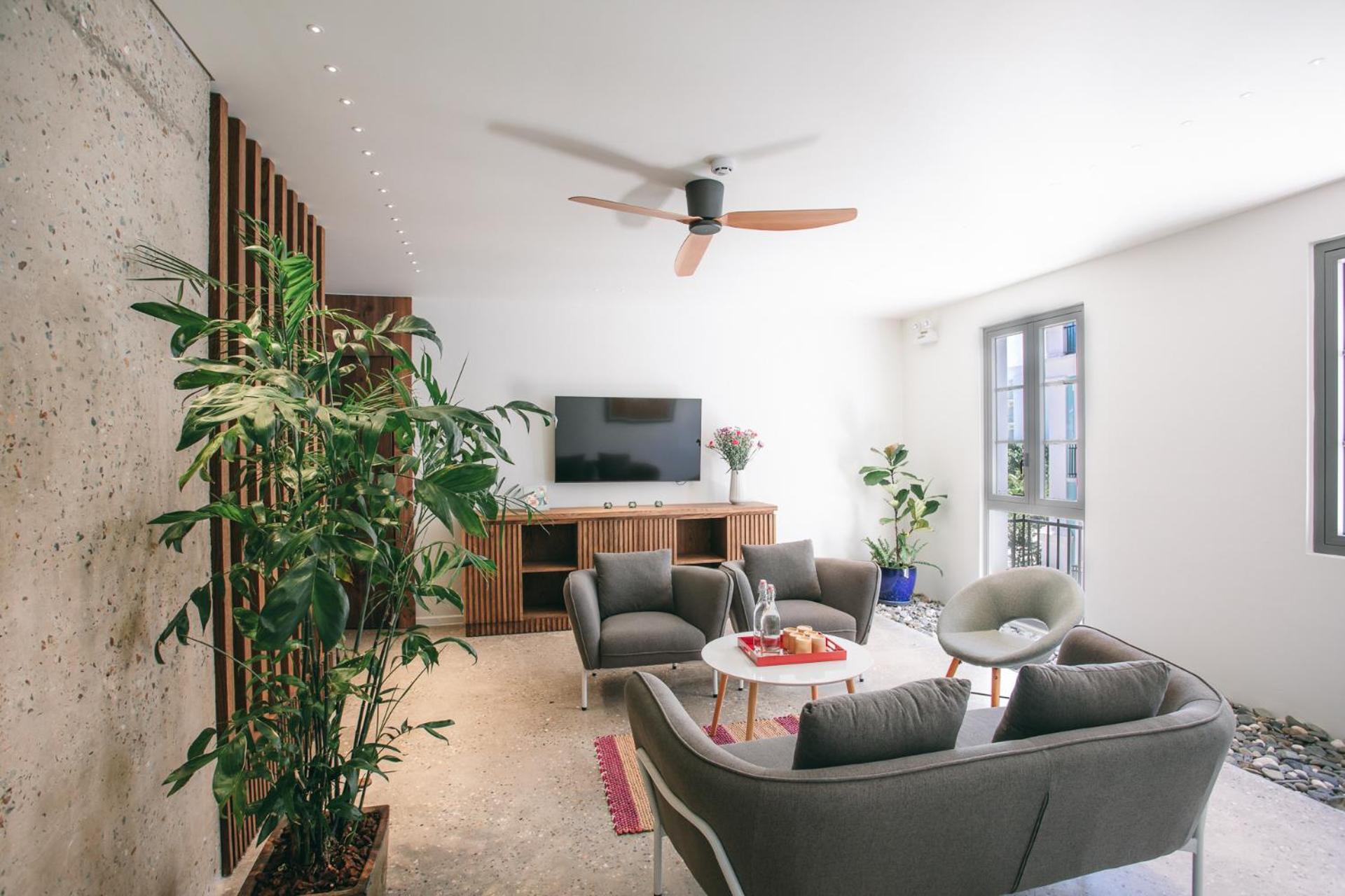 Очень уютные номера, красивый дизайн, чисто. Пляж очень близко, на крыше прекрасный вид, есть маленький спортзал, свой ресторан. Завтрак очень вкусный и достаточно разнообразный. В гостинице живут два прекрасных милых лабрадора, что делает место очень душевным.