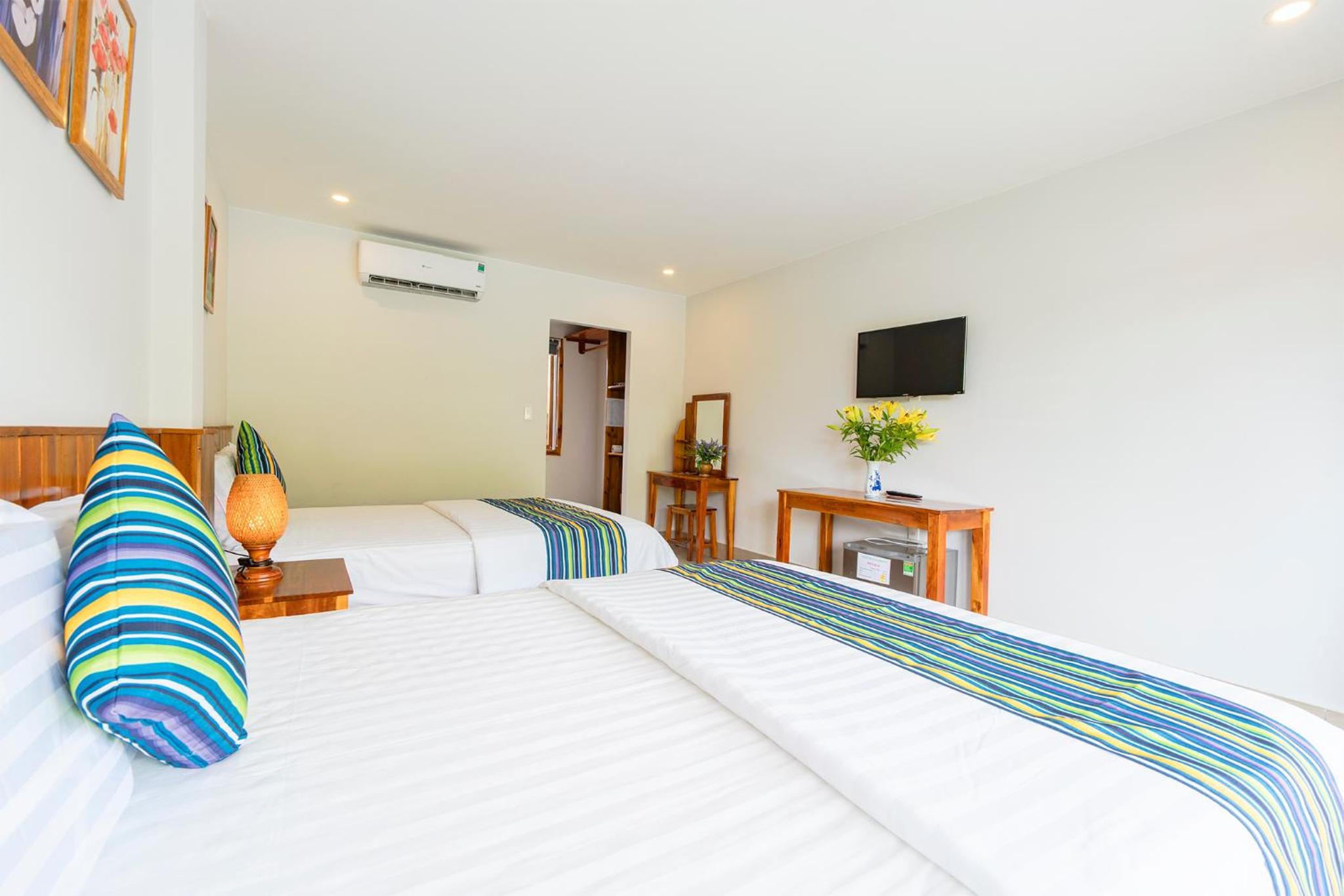 Relaxation and Convenience: Start your day with a delightful breakfast featuring various options. Unwind on the sun terrace or explore nearby attractions like Sung Hung Pagoda and Vinpearl Land Phu Quoc. With a 24-hour front desk, airport transfers, shared kitchen, and free WiFi, your stay is bound to be stress-free.