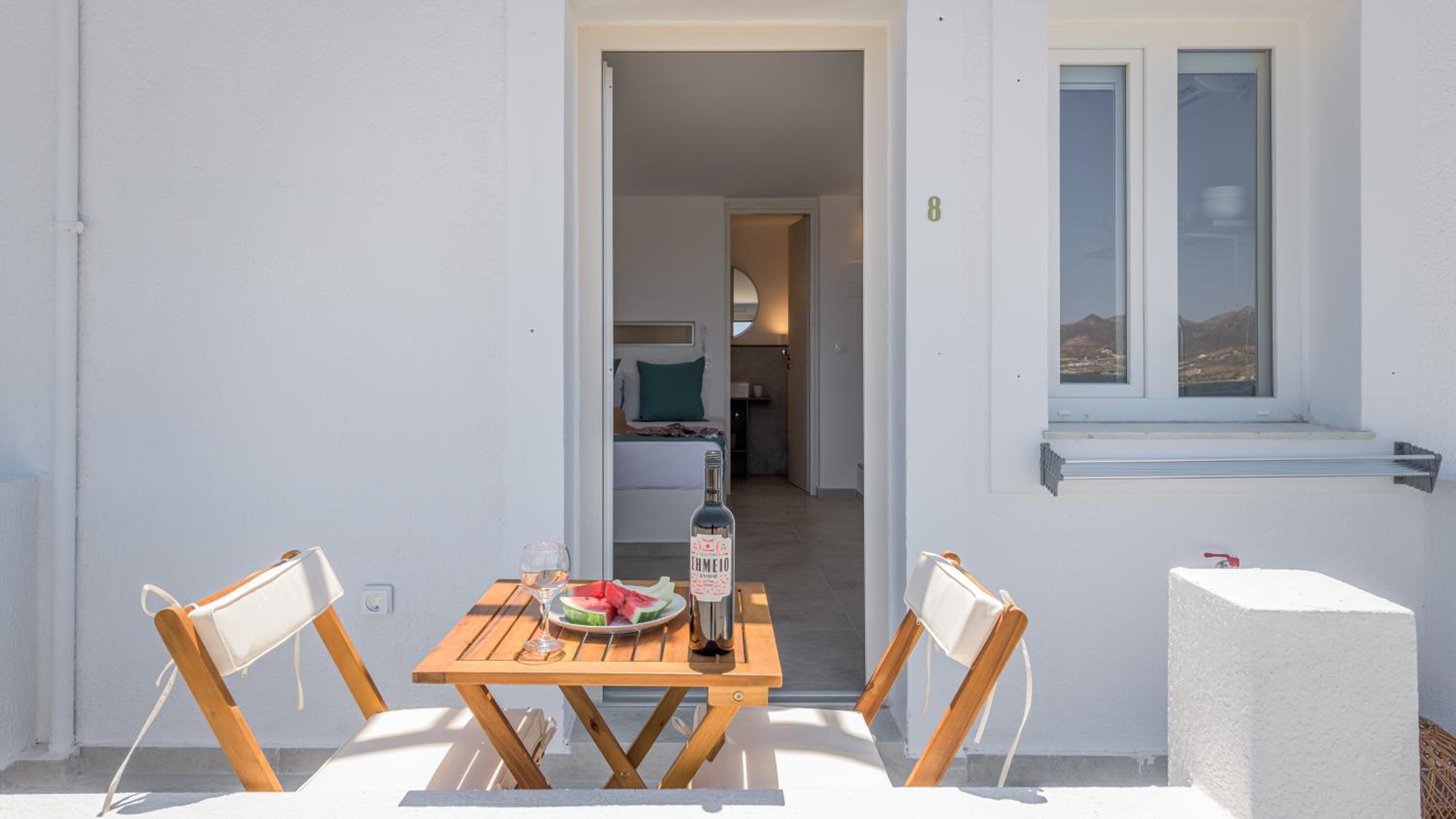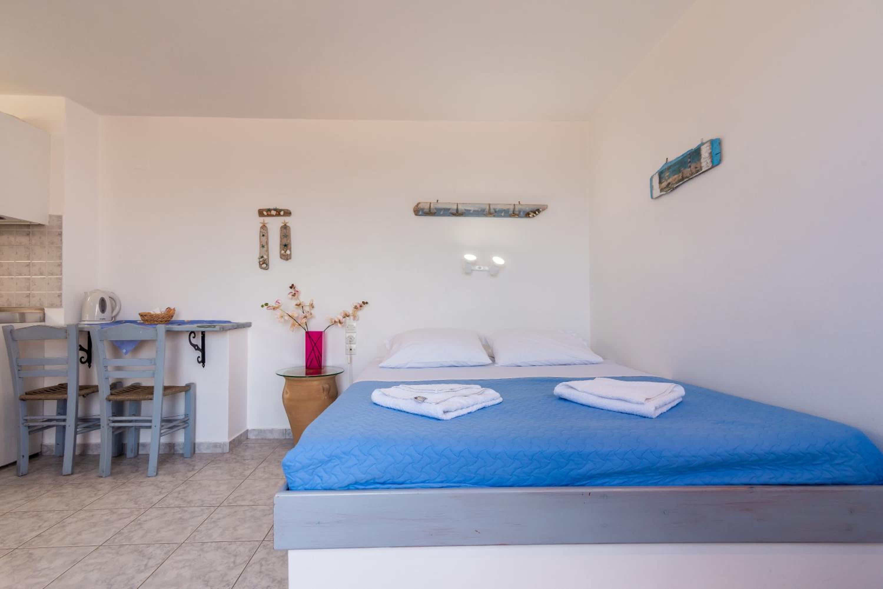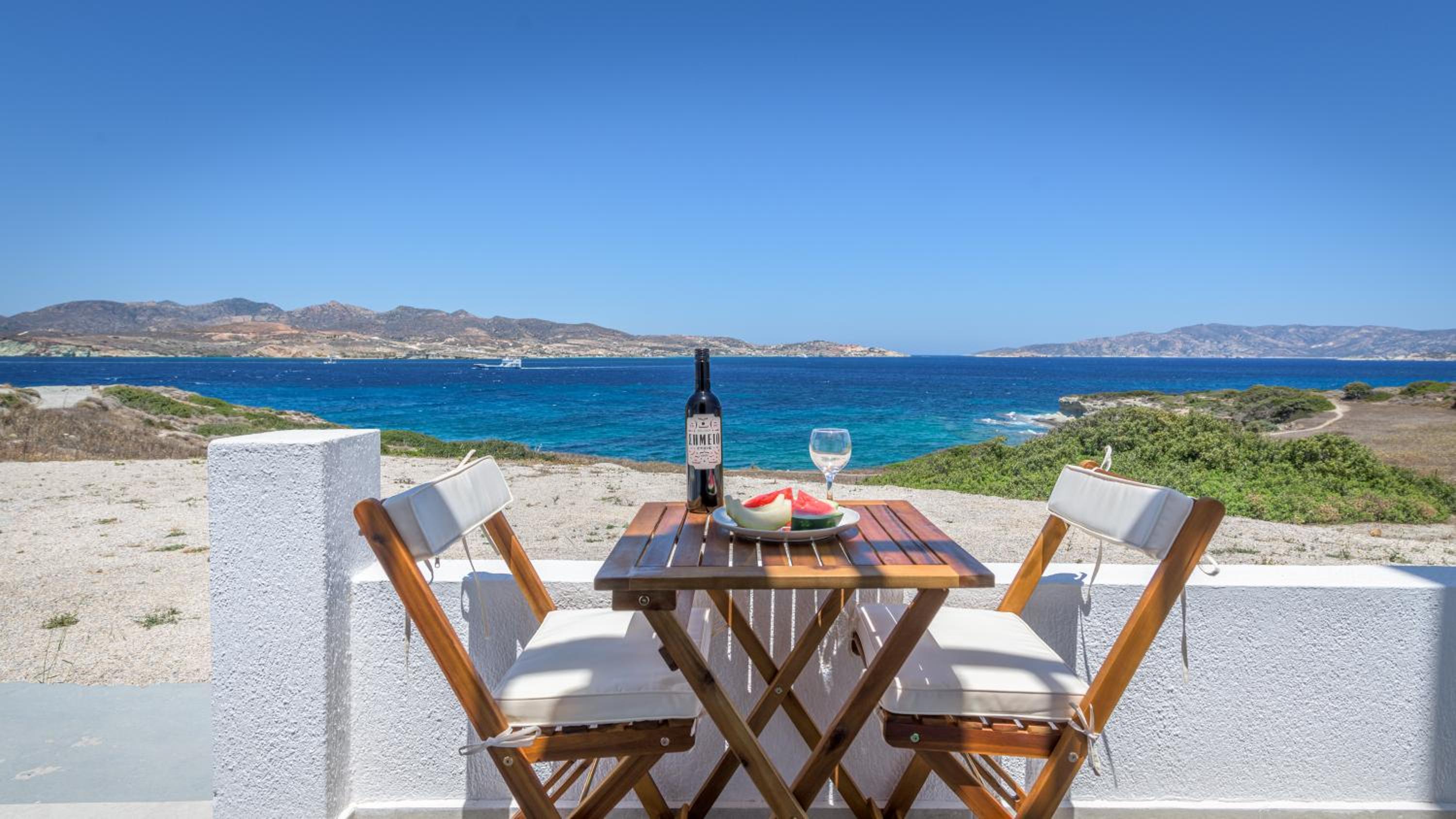 The isolated location made this a great stay. Peaceful and quiet. There's a nearby beach that's perfect for a quick dip. The room was very tidy. There are nice trails right outside the door for taking short hikes. It's even possible to walk along the beach into Pollonia quite easily. The staff in the office in Pollonia were very helpful with any kind of information. Use their help. The best...BEST thing though was the sunrise. If you stay here, you have to make sure you wake up to see at least one sunrise from the balcony. It came up almost exactly between Kimolos and Polyegos Islands and faced directly at our balcony. Spectacular.