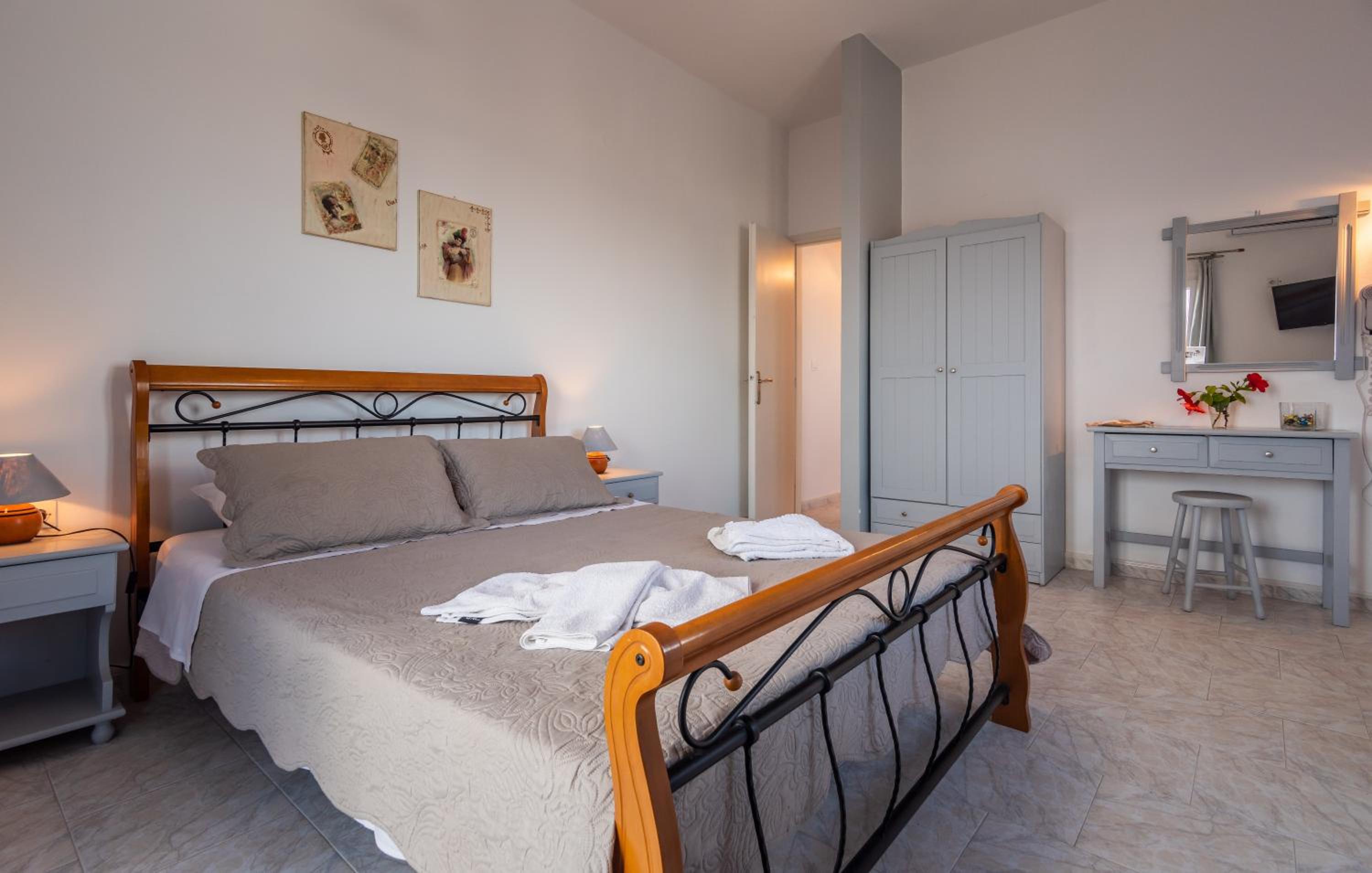 Place is a little bit far away even from Pollonia center (˜20m walk) so would highly recommend getting a car or scooter at least. Specially considering every transfer (to anywhere) is around 20EUR and buses are rare to find.