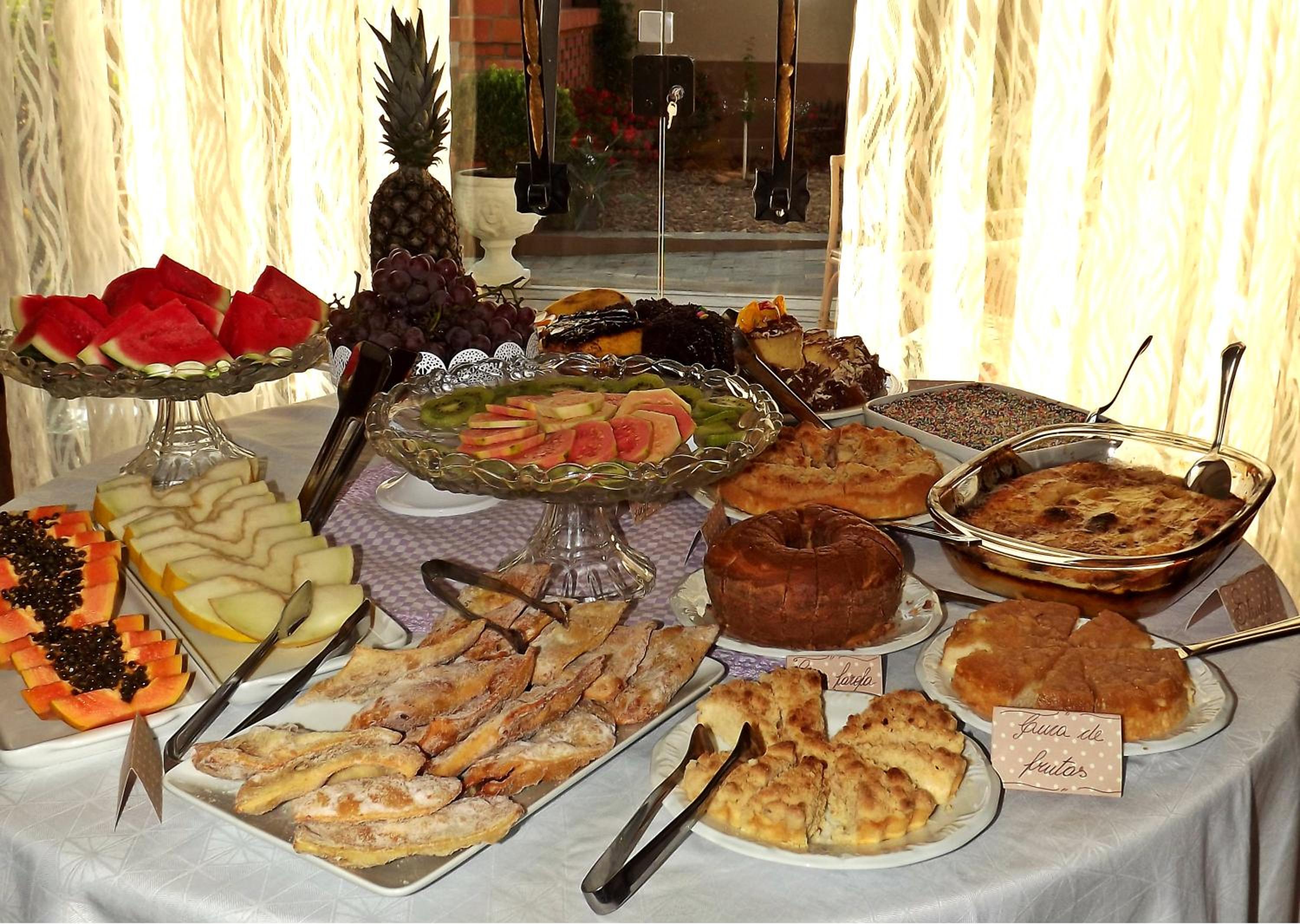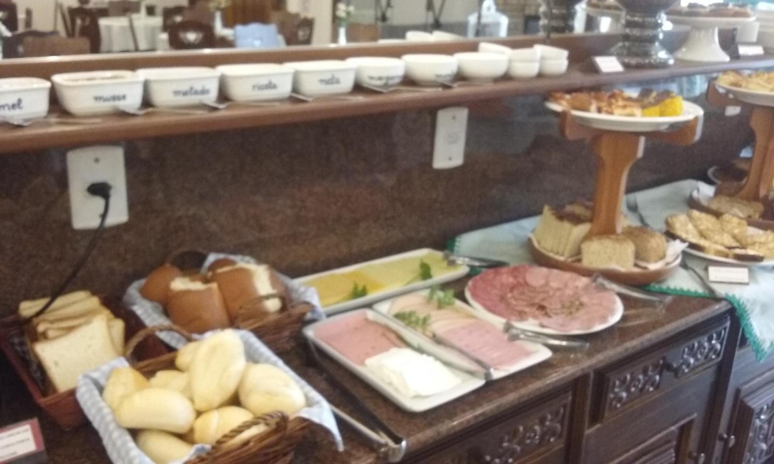 Café da manhã super variado e com comidas típicas da região.