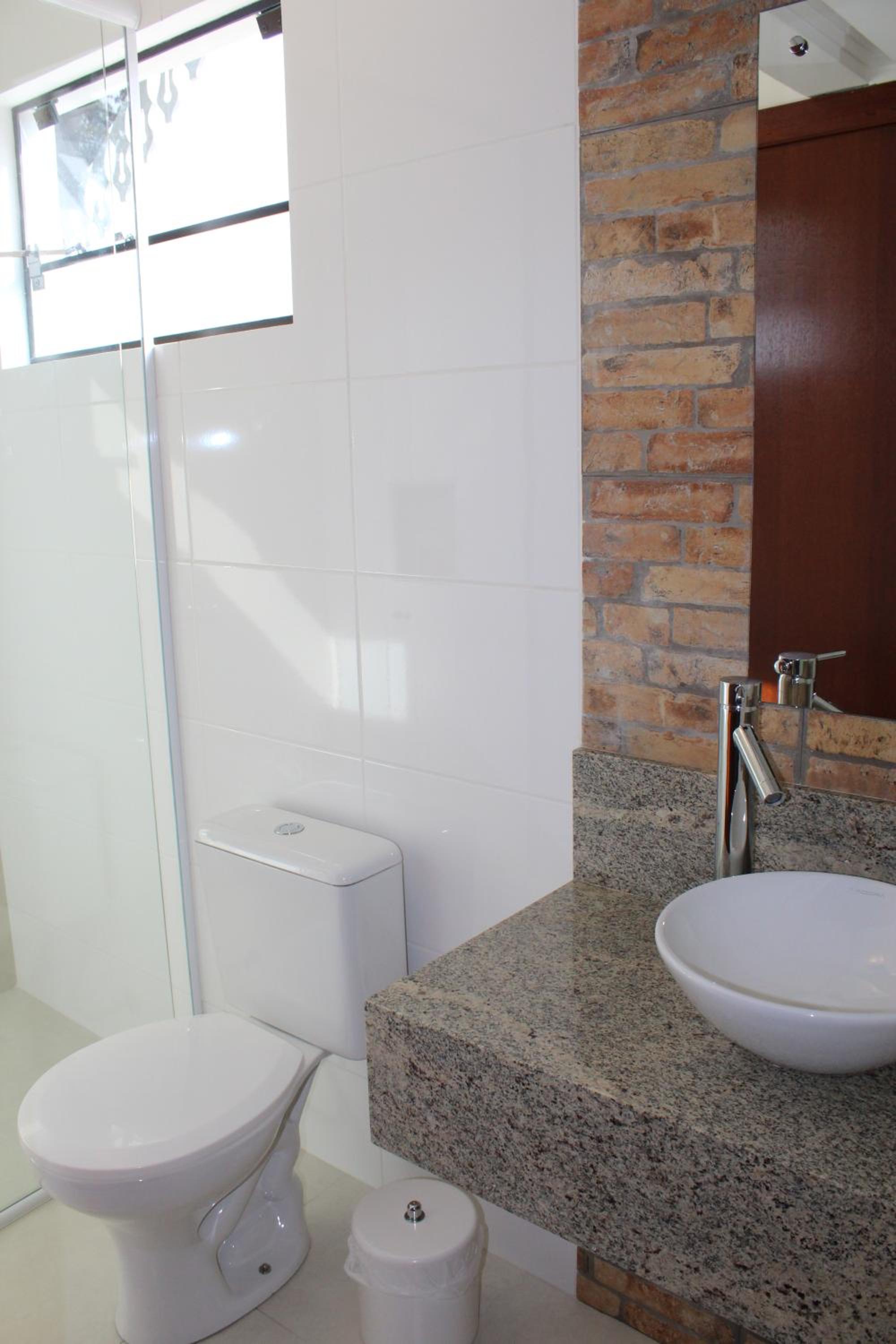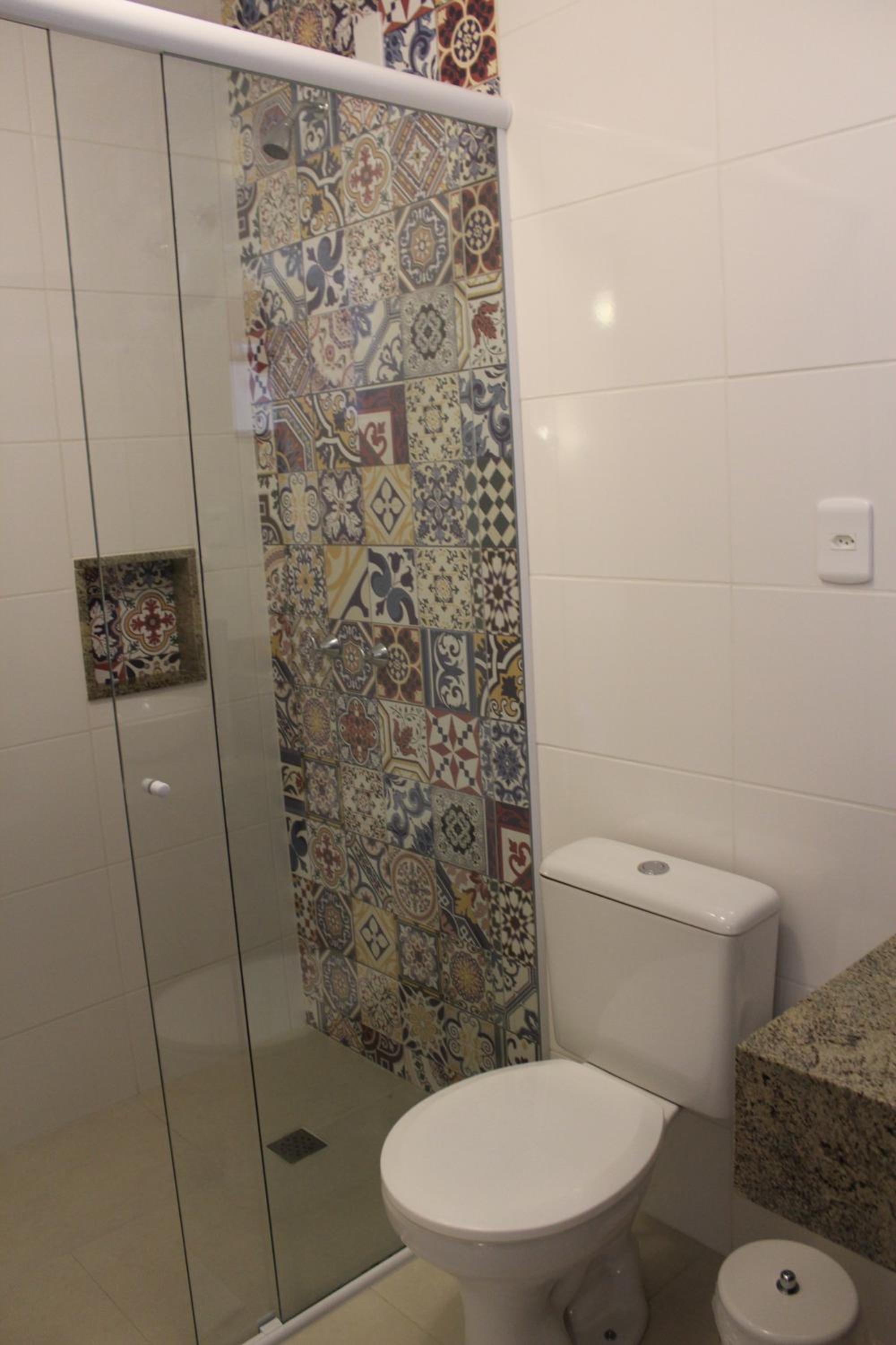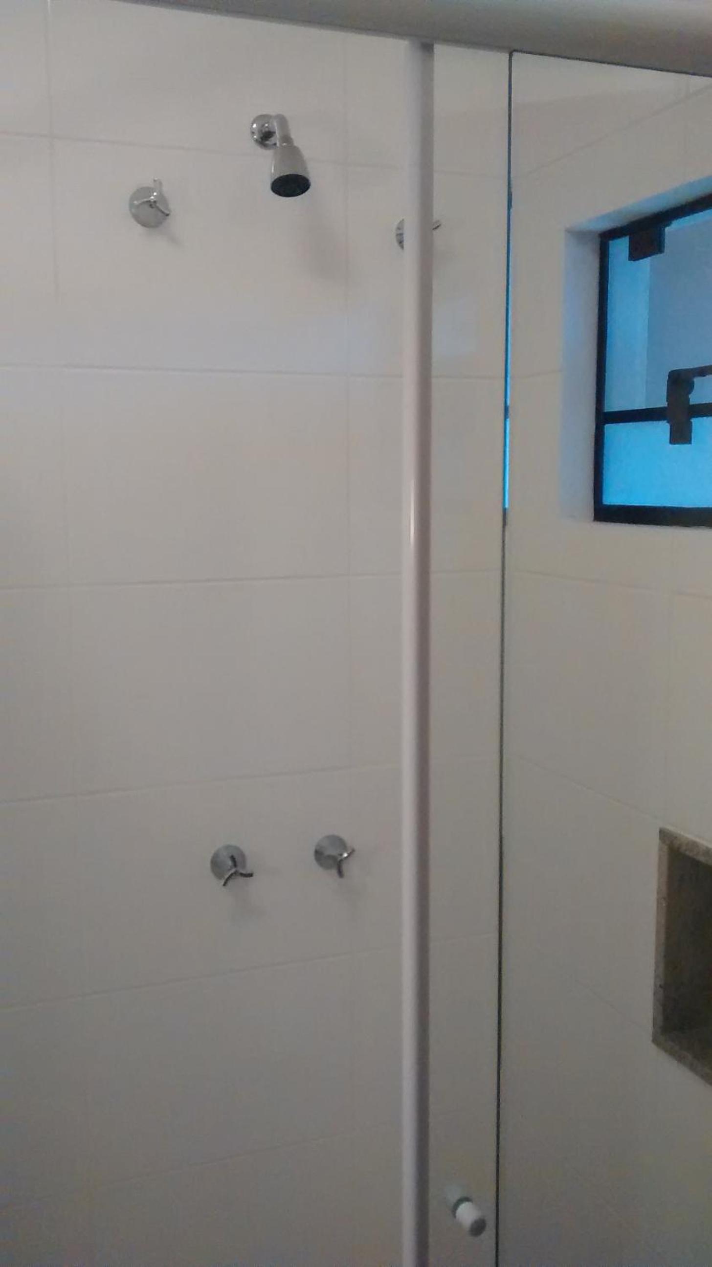 O banheiro tinha dois problemas , o vaso sanitário solto e no box a vazão de água não ocorria no ralo.