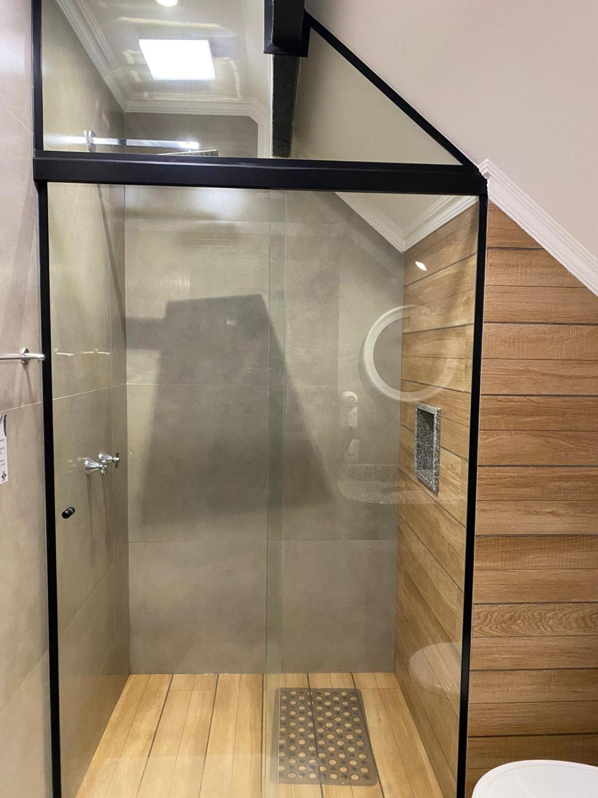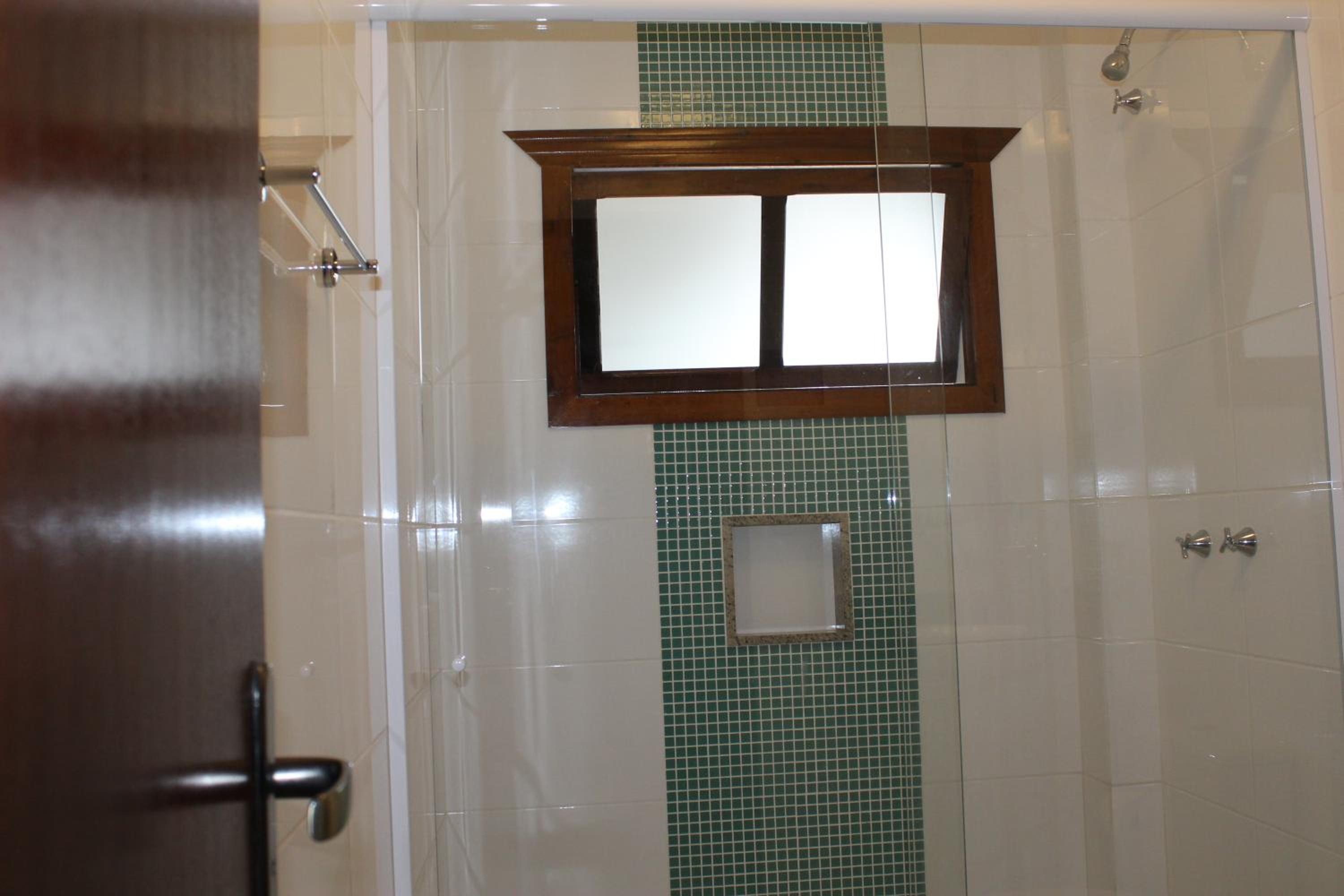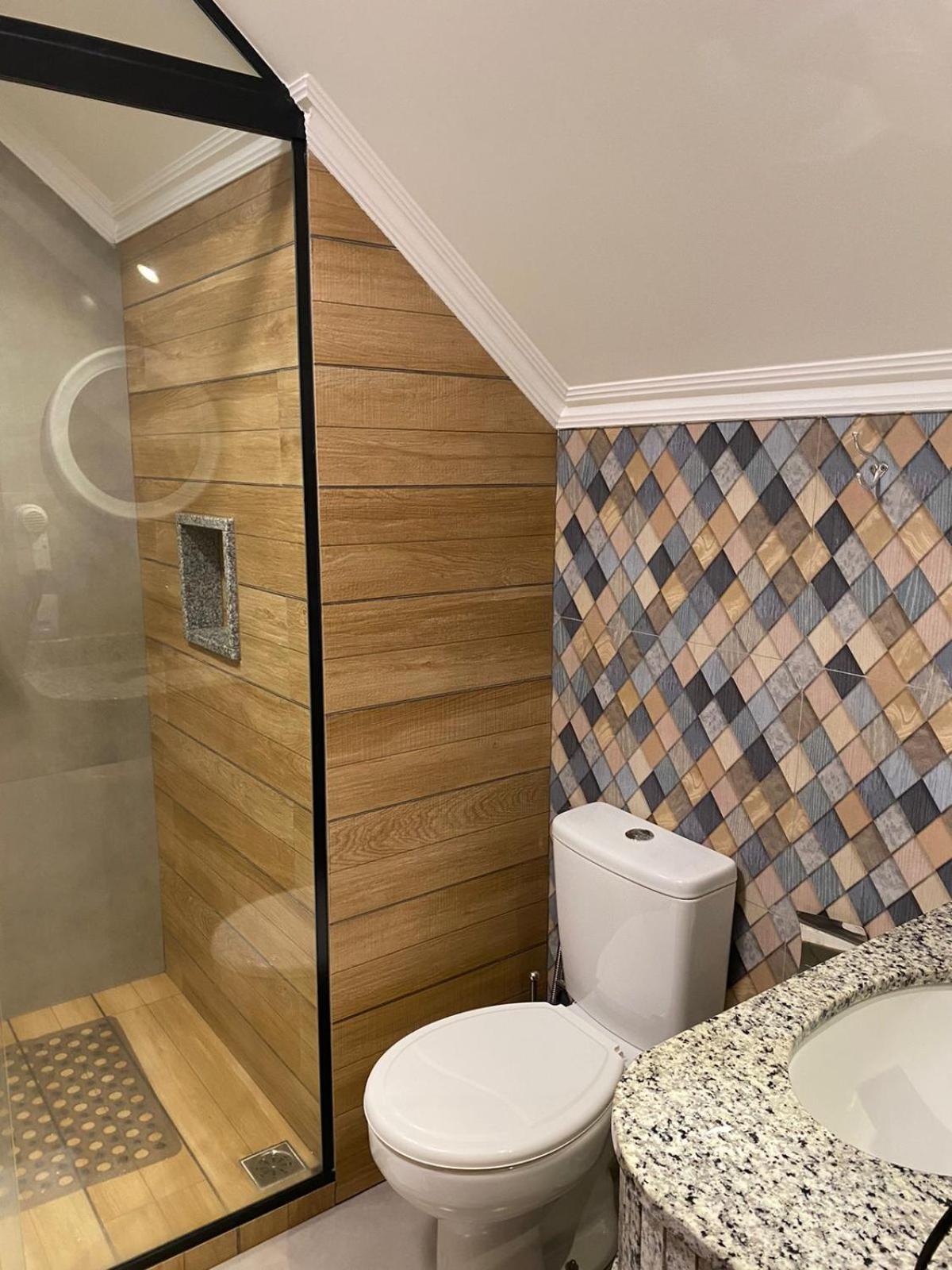 O banheiro tinha dois problemas , o vaso sanitário solto e no box a vazão de água não ocorria no ralo.