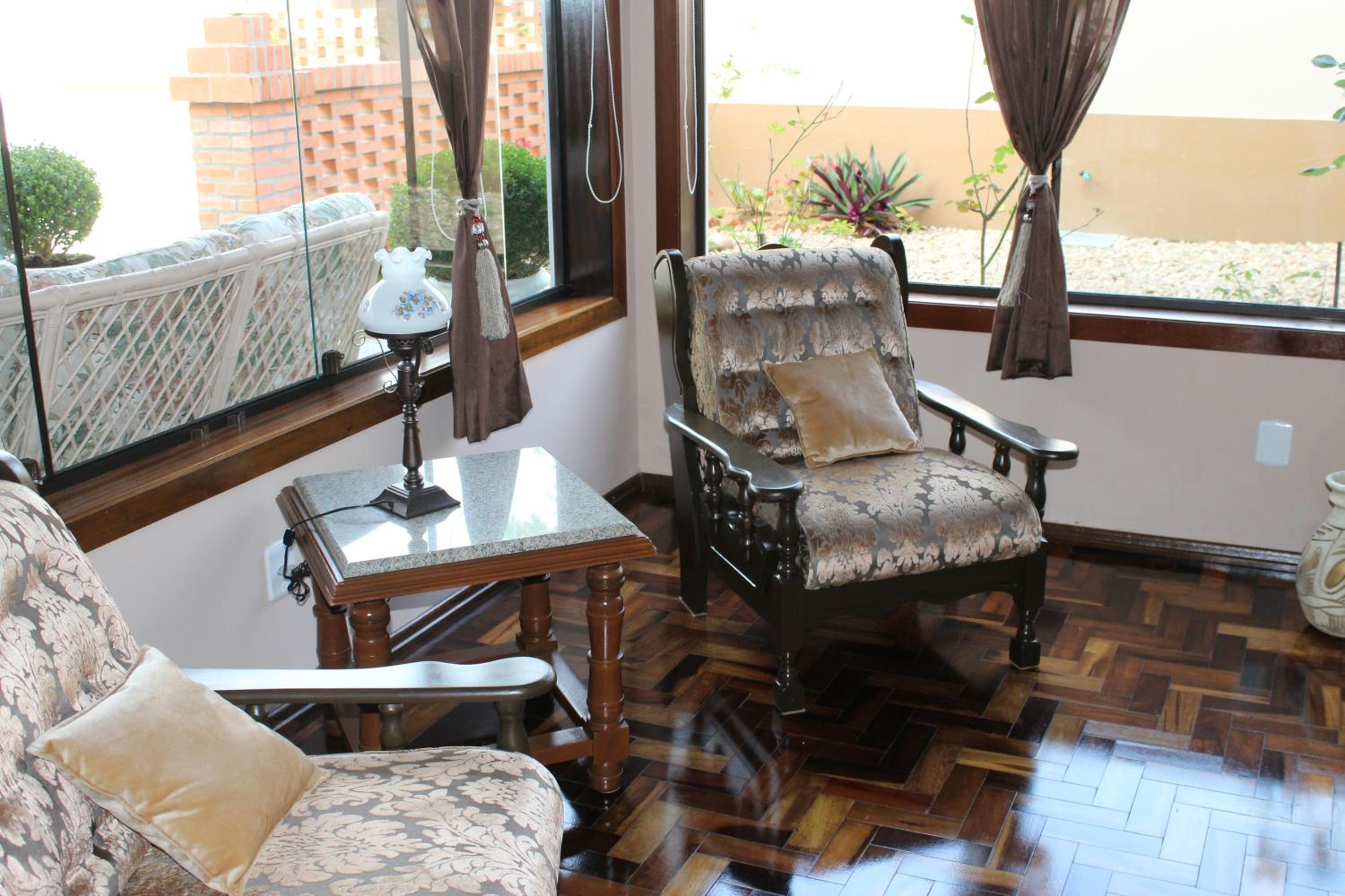 Há limitação de vagas (umas 6 na frente e duas ou três nos fundos) de estacionamento; se der sorte, você consegue uma vaga. Os quartos de cima não têm acessibilidade, só escadas mesmo.
