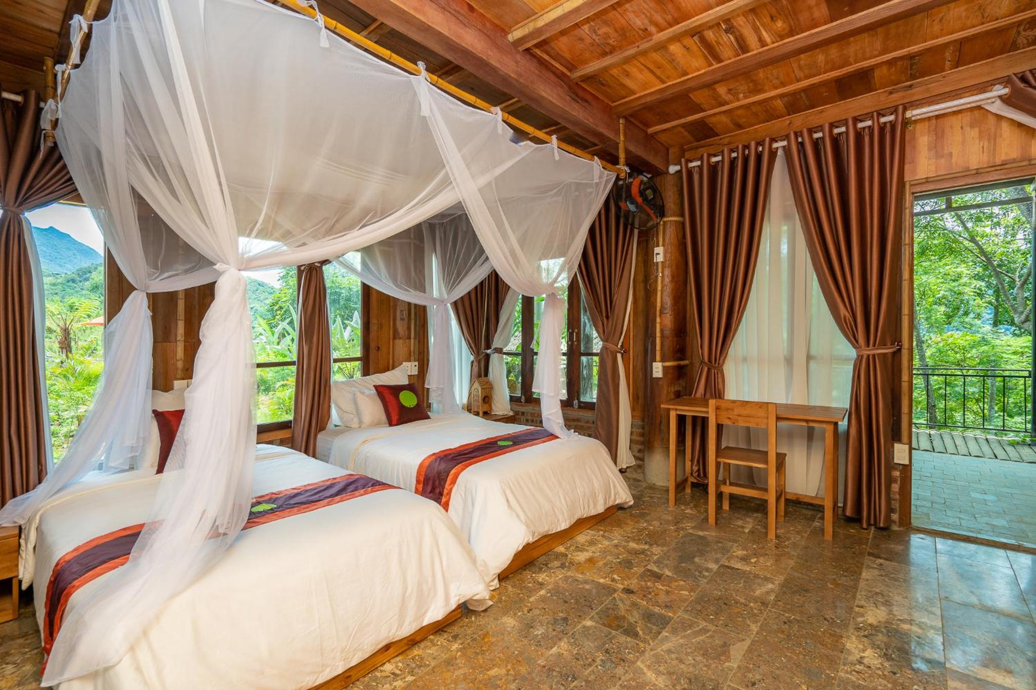 Nestled in the serene Pu Luong, Inh La Home Pu Luong offers a tranquil escape with a seasonal outdoor swimming pool and lush gardens.