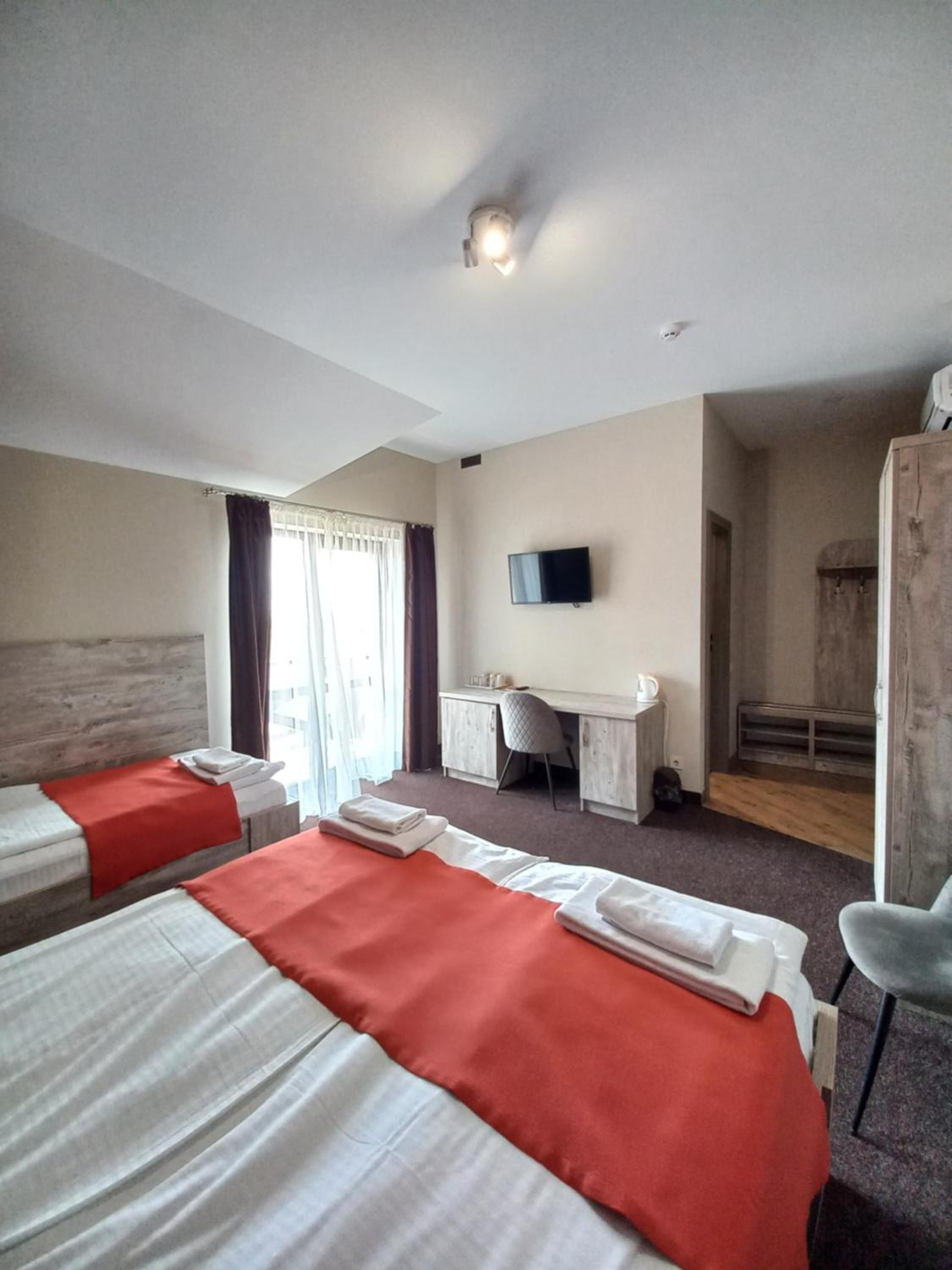 Готель розташований на трасі, дуже зручно ночувати тим, хто перетинає кордон через Рава-Руську, або Грушів. Дуже чисто. Сучасна та зручна сантехніка, зручні та комфортні ліжка. В номері є чайник.