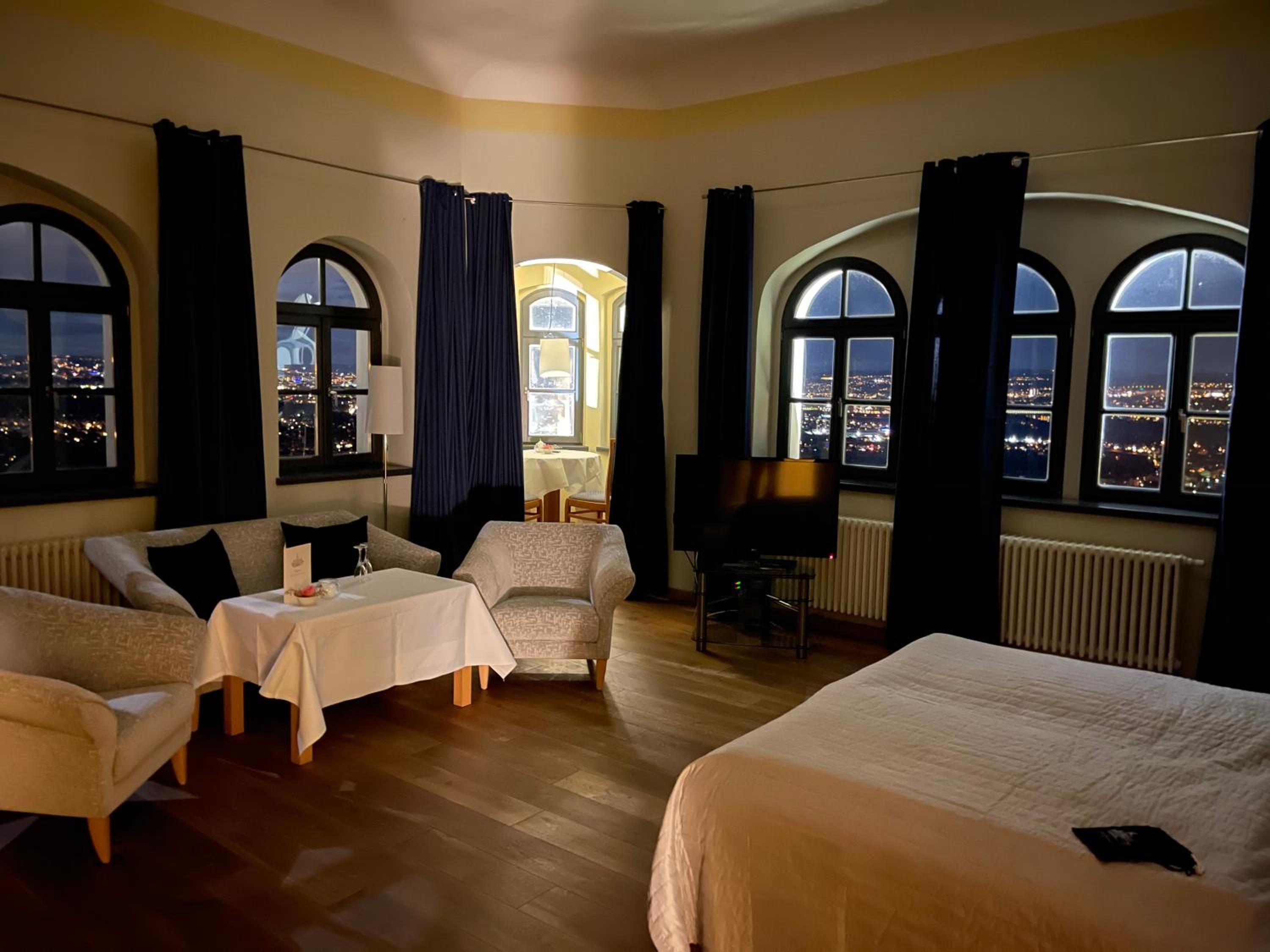Restaurant waren. Der Koch versteht sein Handwerk, Die Speisekarte ist überschaubar, aber für jeden etwas dabei. Das Restaurant war zur Mittagszeit und am Abend ausgebucht was auch für die Qualität spricht. Das Personal ist freundlich und hilft wo es kann. Die Lage vom Spitzhaus ist Top. Man hat eine hervorragende Aussicht auf Radebeul, da es auf dem Weinberg liegt. Wir wissen das wir 2026 wieder eine Suite dort buchen werden.