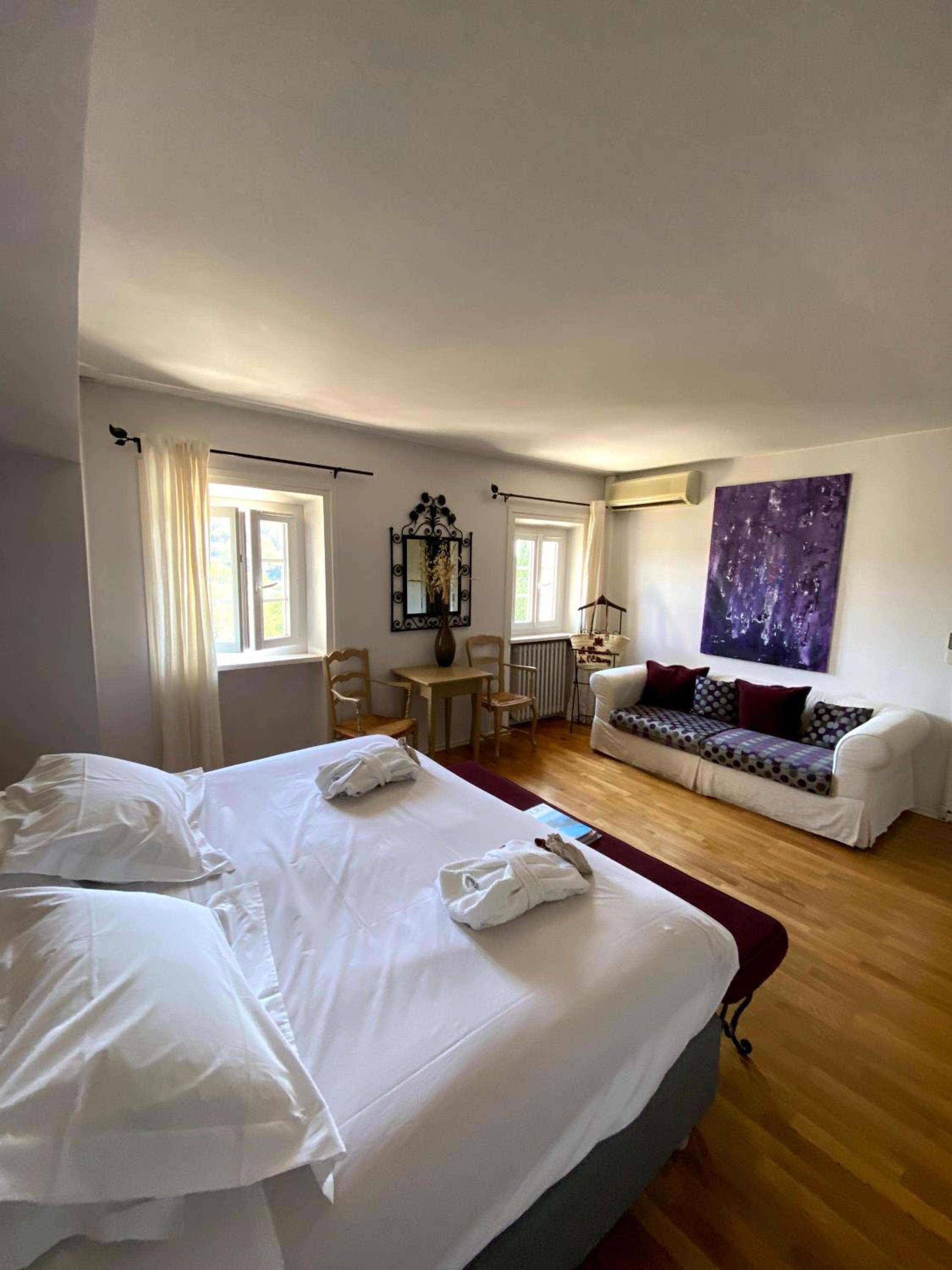 Le Manoir de L'Etang, once home to Picasso, offers spacious air-conditioned rooms with stunning views of the lake and hills. Enjoy the comfort of Egyptian cotton sheets and top-quality bathroom linen.