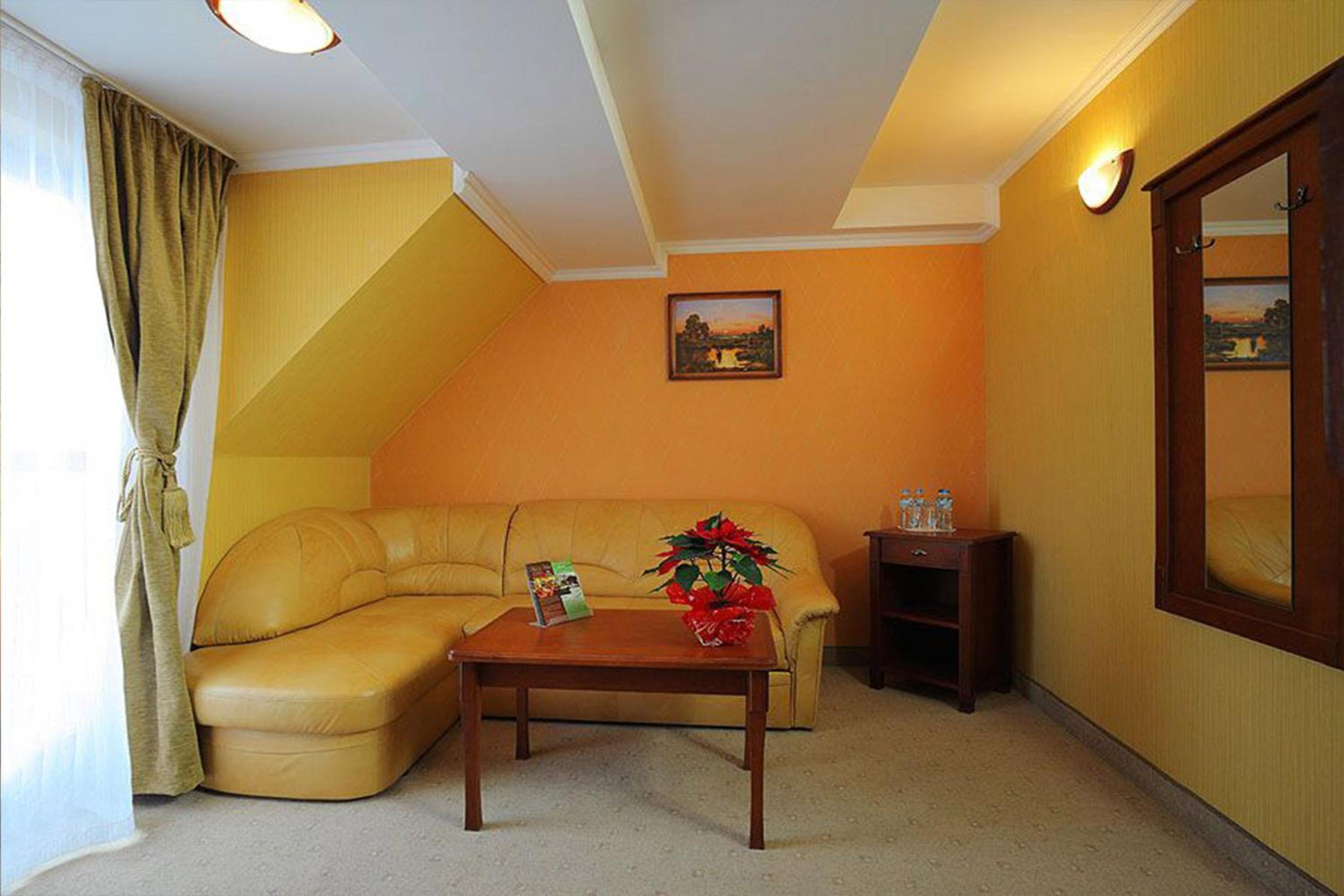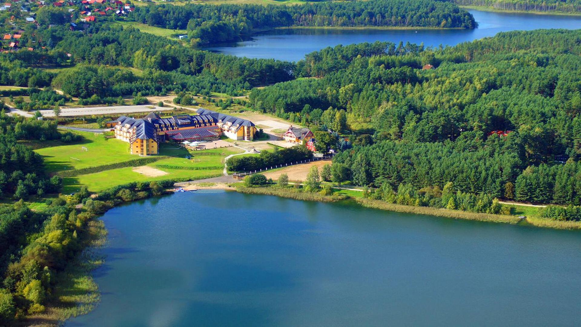 Indulge in rooms with forest and Żbik Lake views, some equipped with air-conditioning for added comfort. The elegant decor and modern amenities ensure a relaxing stay.