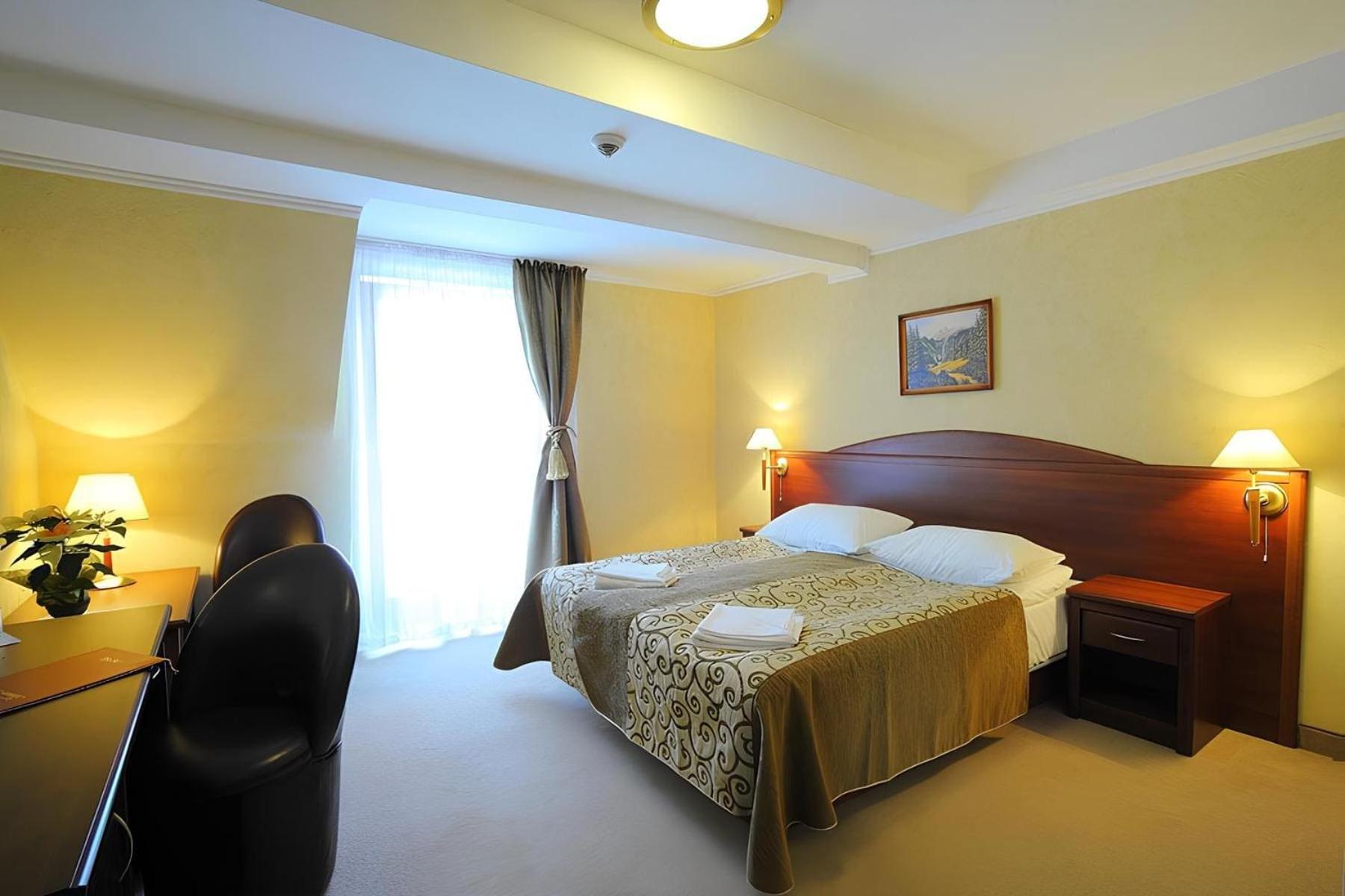 Hotel zatrzymał się w 1985 roku. W korytarzu pomiędzy recepcją a windą smród jakby cos zdechło. Pokój fatalnym stanie, włączniki świateł porozwalane aż strach, że porazi prądem, brudne firanki, uwalona wykładzina jakby miesiącami nie widziała odkurzacza, jakies robale na suficie. Zanim zauważyłem robale wytłukłem 5 wielkich much- dramat. Wanna nie obudowana, lustro pękniete- ogólnie masakra. Wymeldowałem się w 10 minut. Jedyny plus to reklamacja i zwrot kasy- bez zbędnych pytań 10 min kasa zwrócona -chyba nie byłem pierwszy:)