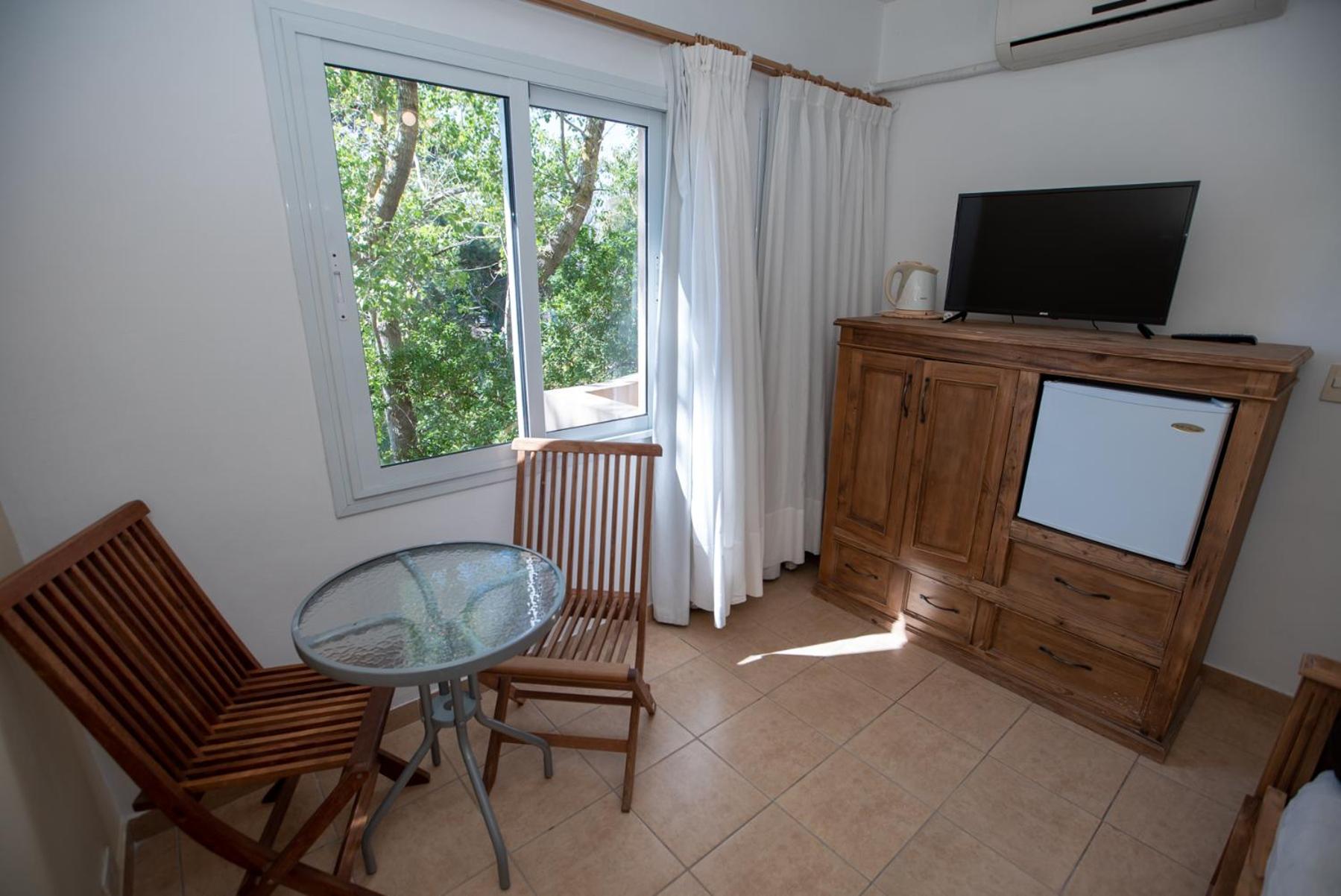 The hotel is charming. A lot of space in the room and in the bathroom (with the window). Green stilfull garden with a small swimming pool. Quiet surroundings, 5 min walk to the beach, 15-20 min walk to the center. A supermarket just around the corner. Kind and helpful staff. .
